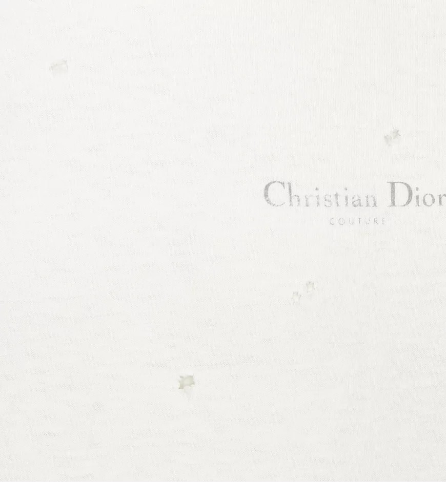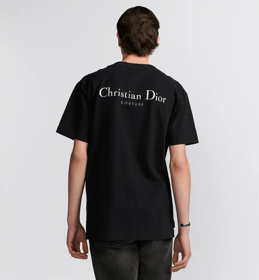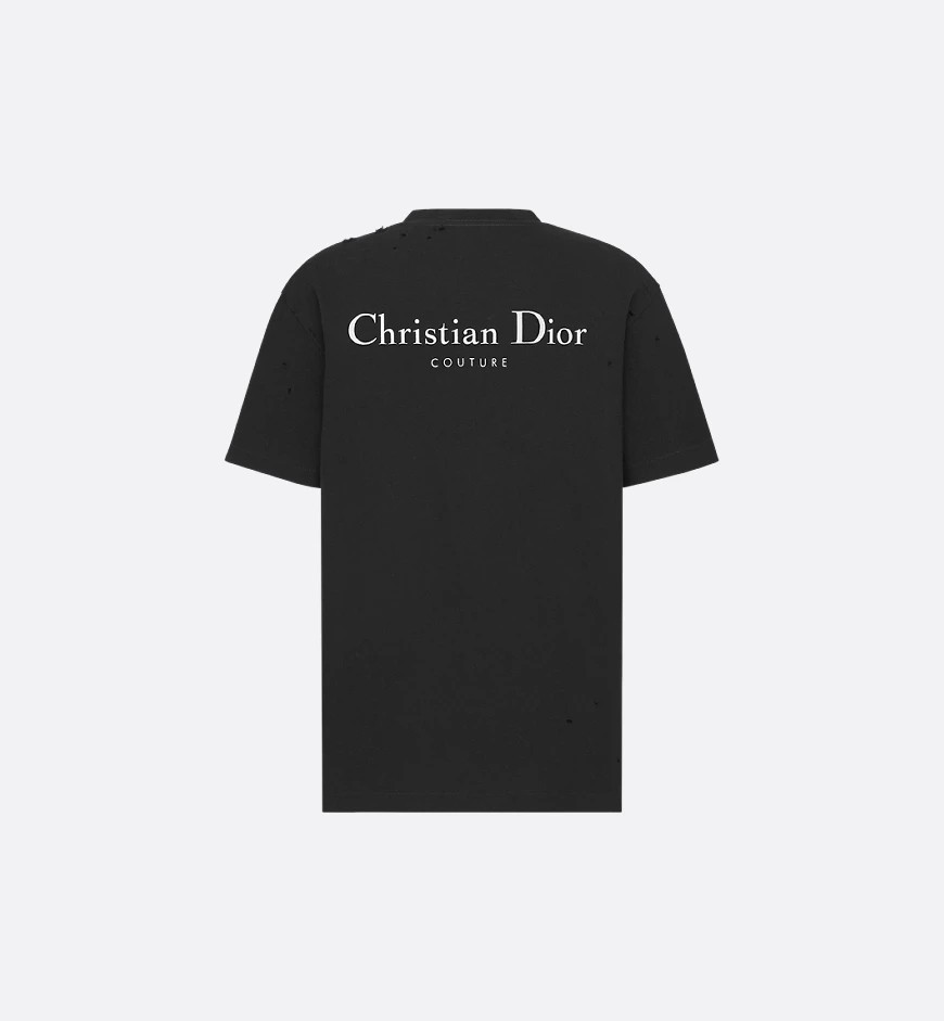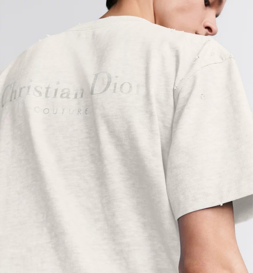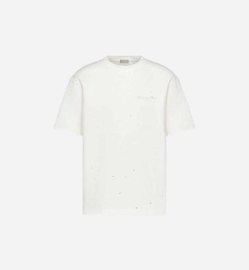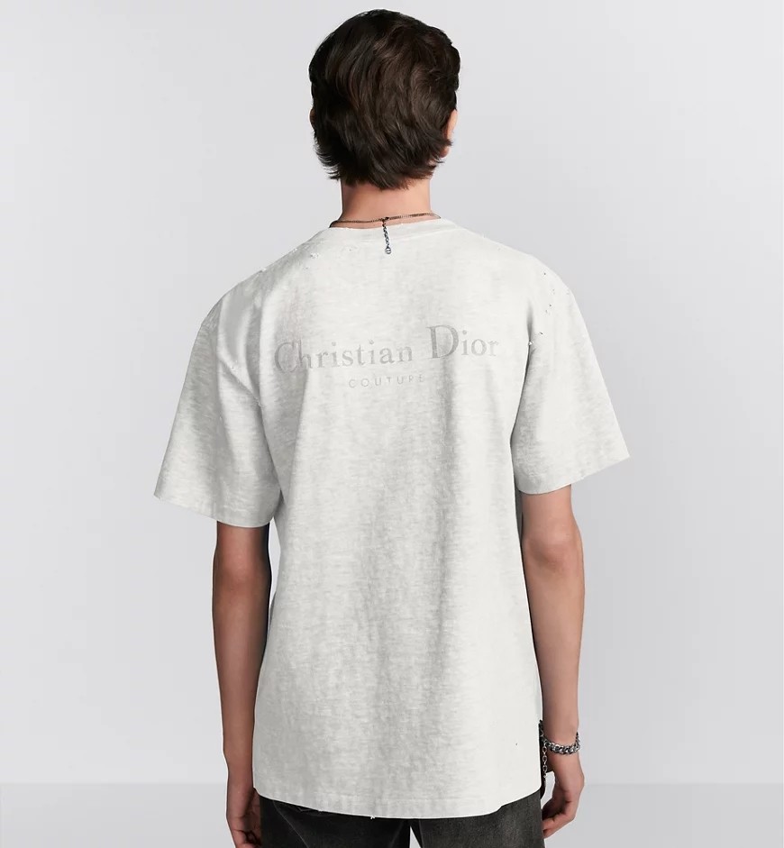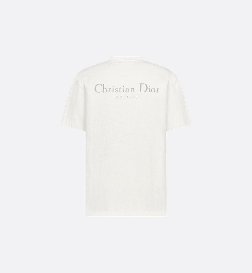 화이트.블랙 컬러의 슬러브 코튼 저지 소재로 제작된 티셔츠입니다. 체스트의 그레이 Christian Dior Couture 프린트와 디스트레스드-이펙트가 특징입니다. 리브드 크루넥으로 이루어진 캐주얼 핏 티셔츠로 다양한 진 또는 캐주얼 아이템과 매치하기 좋습니다.