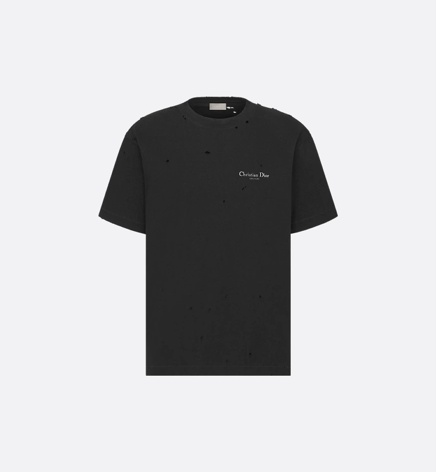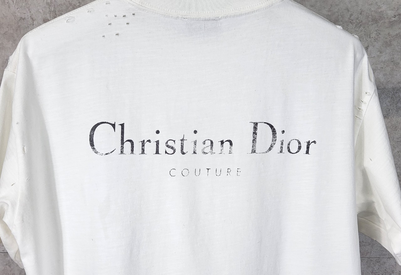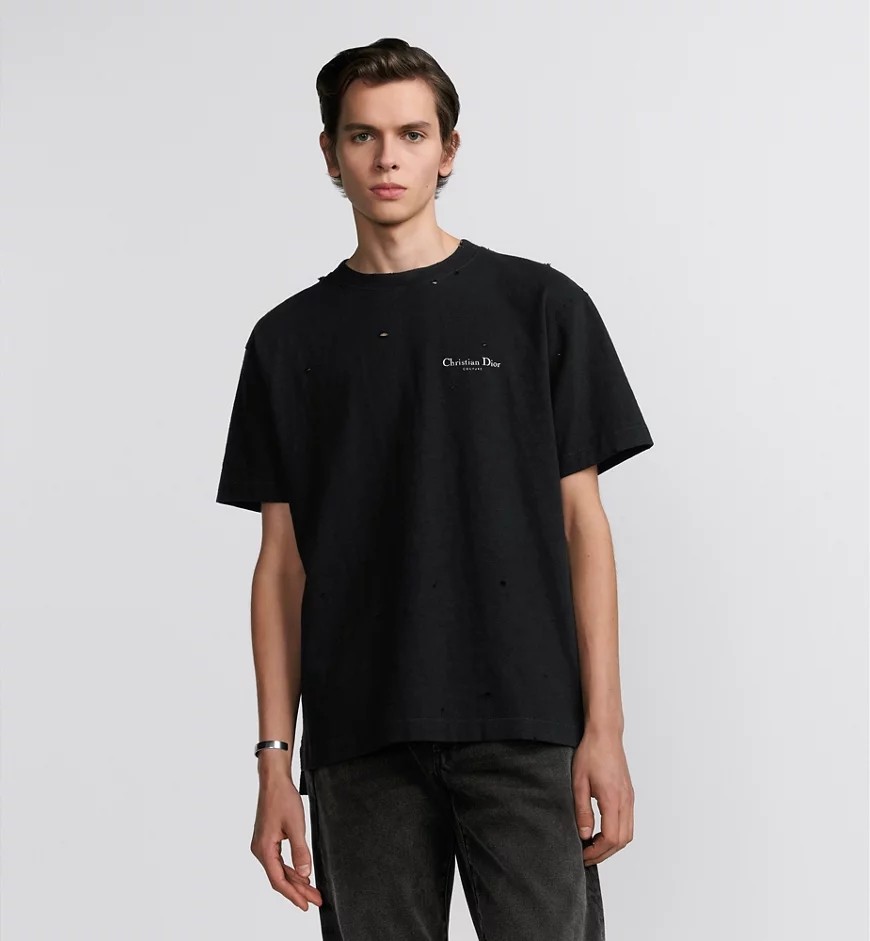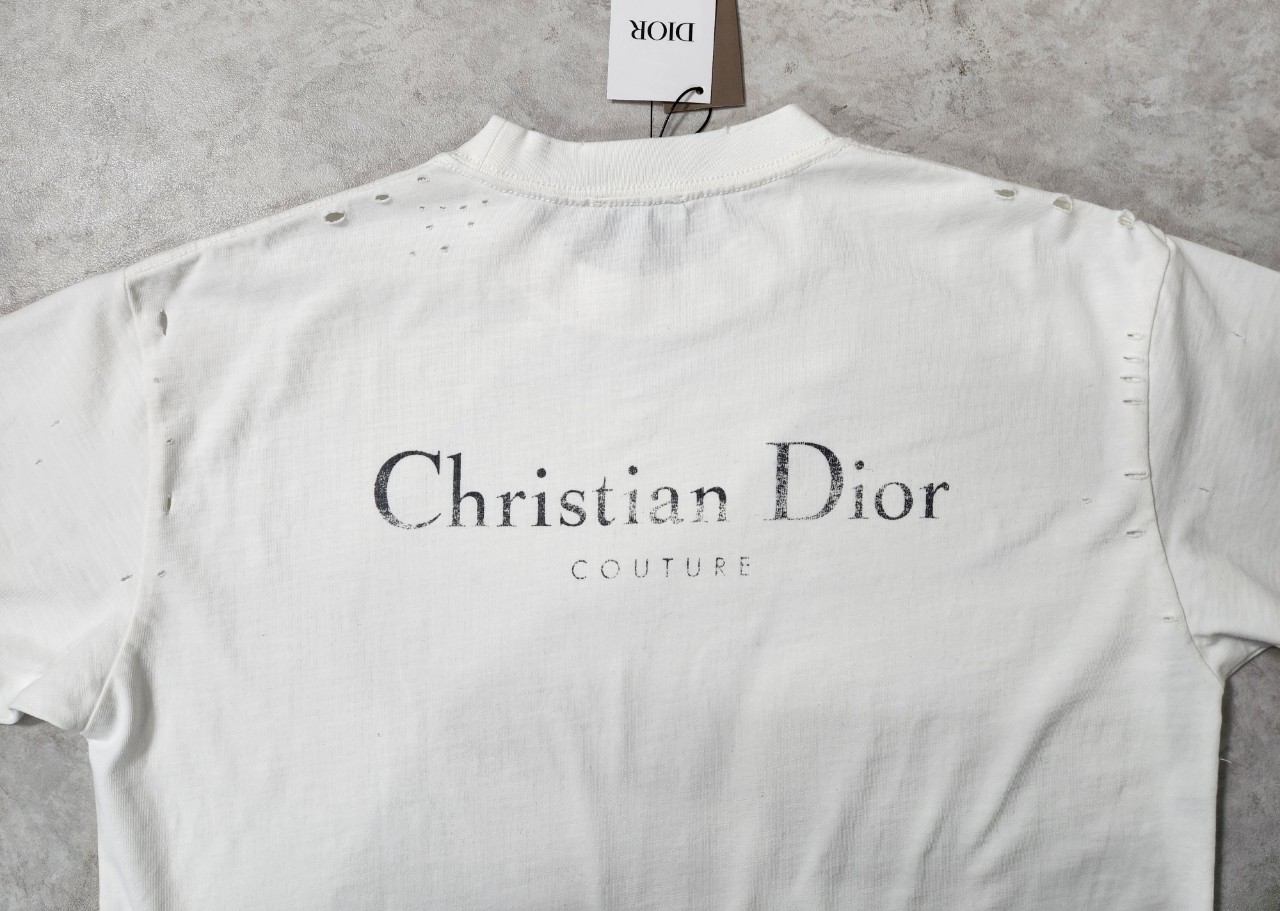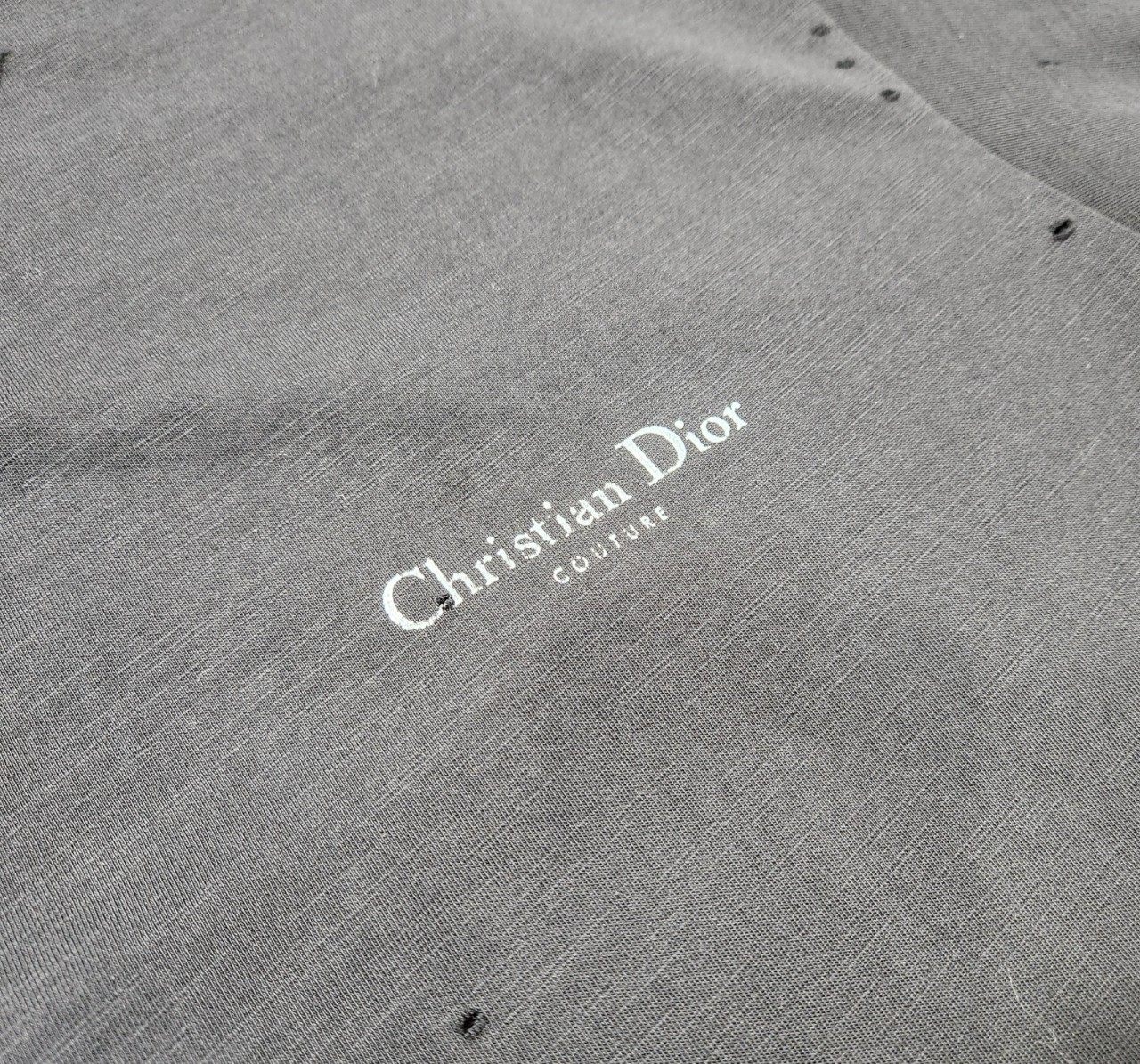 화이트.블랙 컬러의 슬러브 코튼 저지 소재로 제작된 티셔츠입니다. 체스트의 그레이 Christian Dior Couture 프린트와 디스트레스드-이펙트가 특징입니다. 리브드 크루넥으로 이루어진 캐주얼 핏 티셔츠로 다양한 진 또는 캐주얼 아이템과 매치하기 좋습니다.
