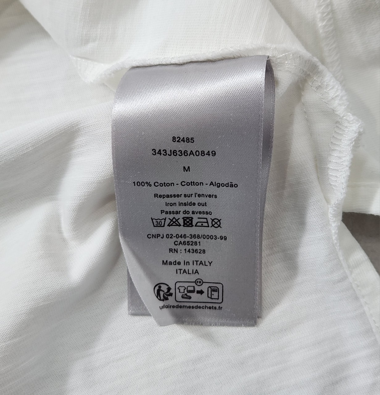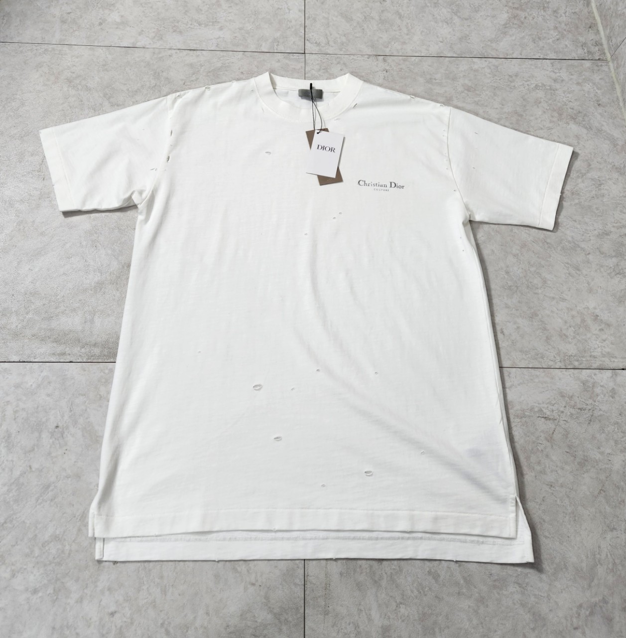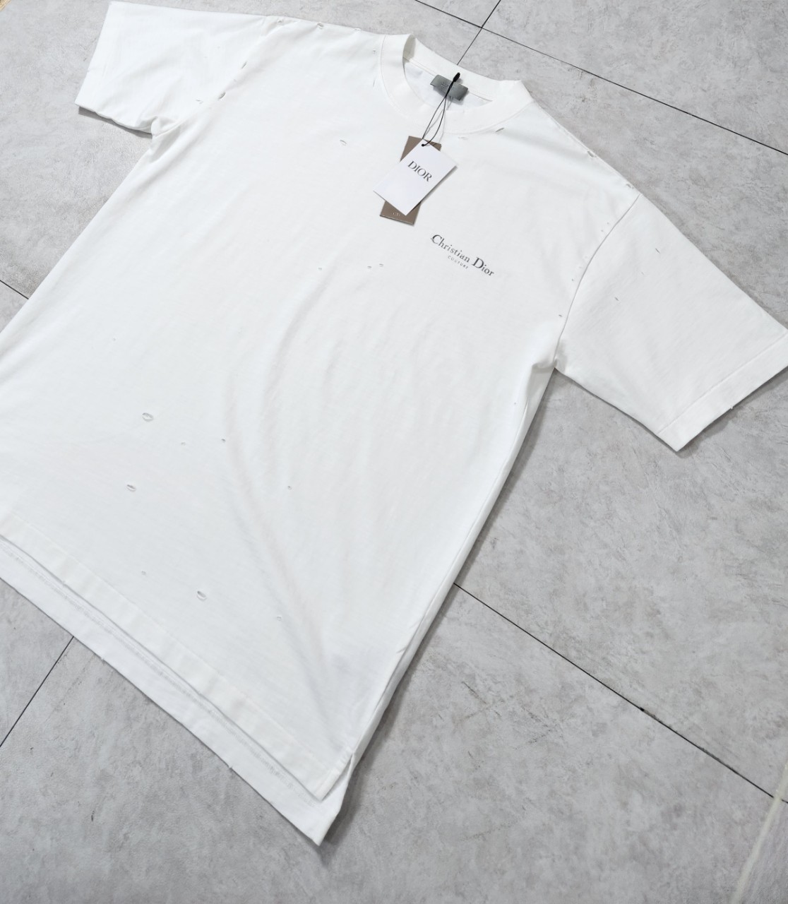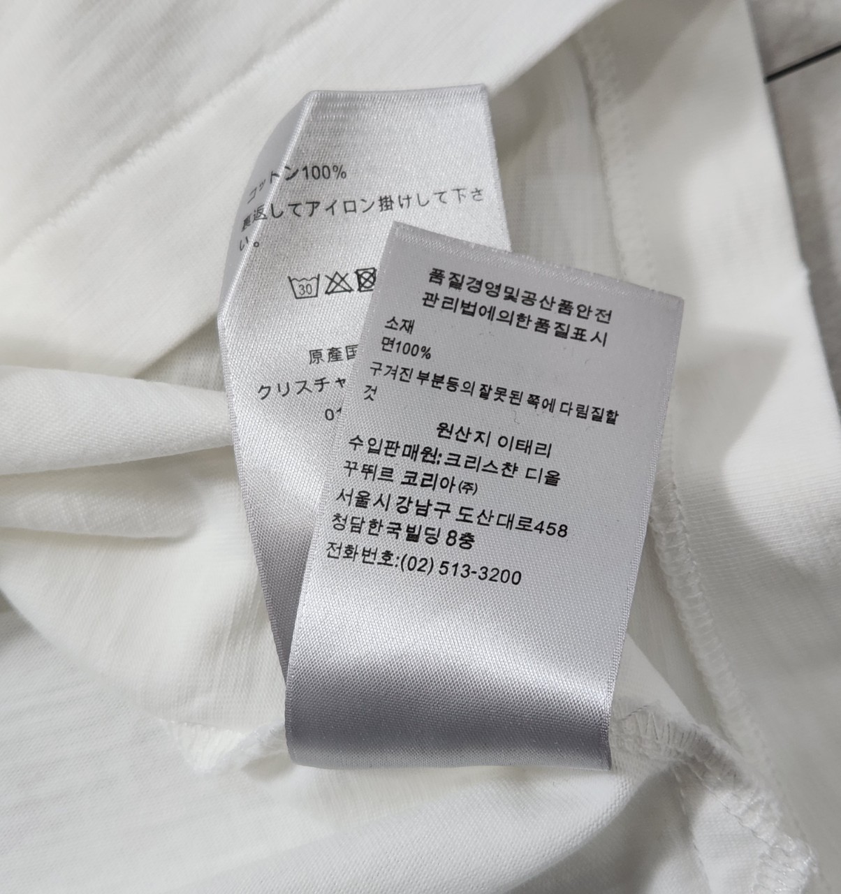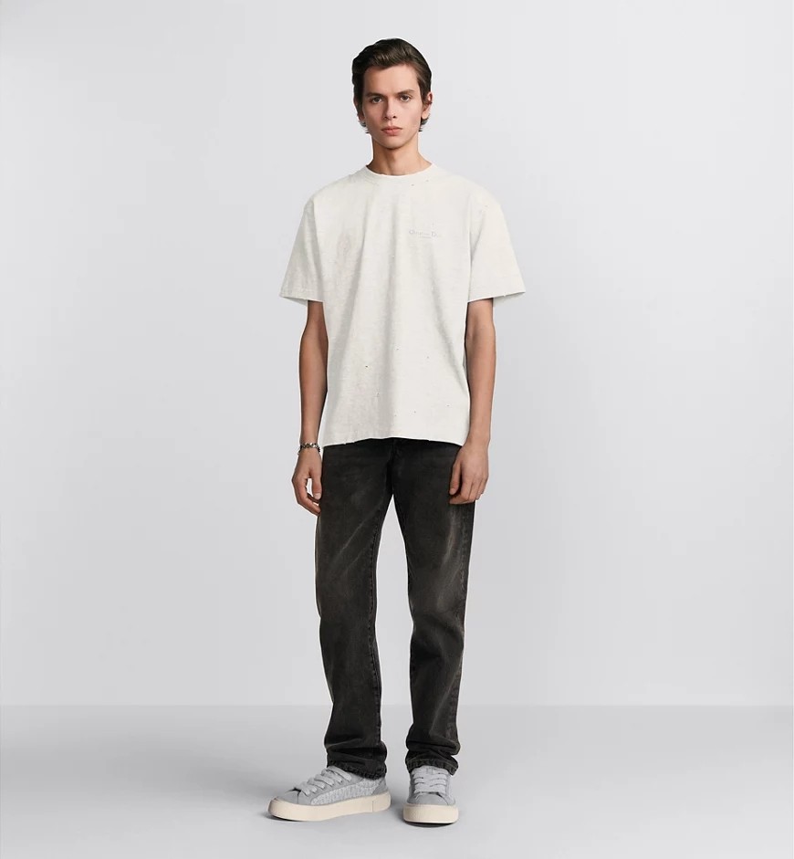 화이트.블랙 컬러의 슬러브 코튼 저지 소재로 제작된 티셔츠입니다. 체스트의 그레이 Christian Dior Couture 프린트와 디스트레스드-이펙트가 특징입니다. 리브드 크루넥으로 이루어진 캐주얼 핏 티셔츠로 다양한 진 또는 캐주얼 아이템과 매치하기 좋습니다.