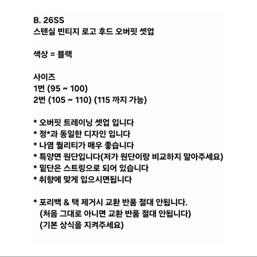 - 수령후 사이즈교환이 불가피한 경우 (이는 구매자의 부주의로 왕복배송비를 부담해 주셔야합니다.)