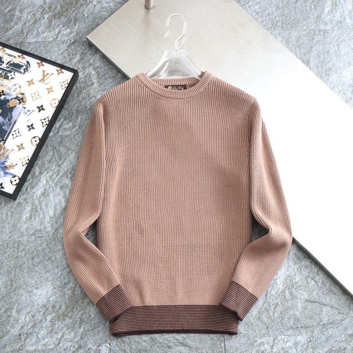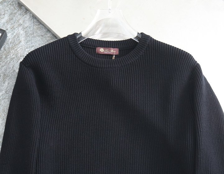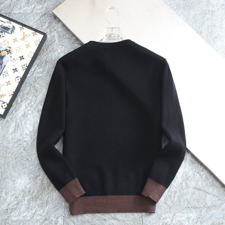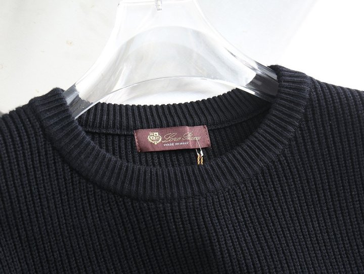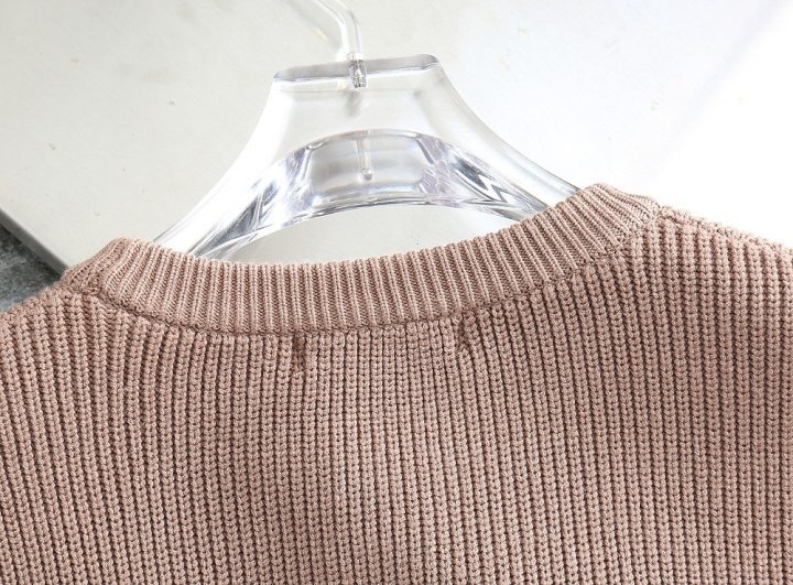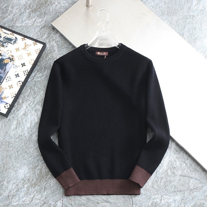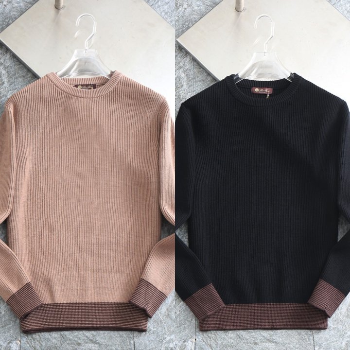 밑단 배색 패치로고 울 라운드 니트