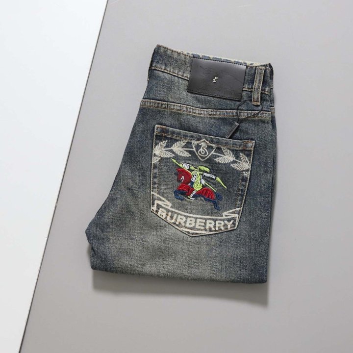 버버리 포켓 기사도 로고 자수 스판 데님 팬츠