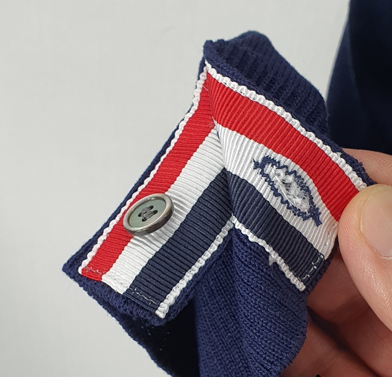 톰*브라운의 시그니쳐 부분인 4바 완장도 정규품동일하게 선염제작, 직조짜임 정규품과 동일하게 제작되었습니다.