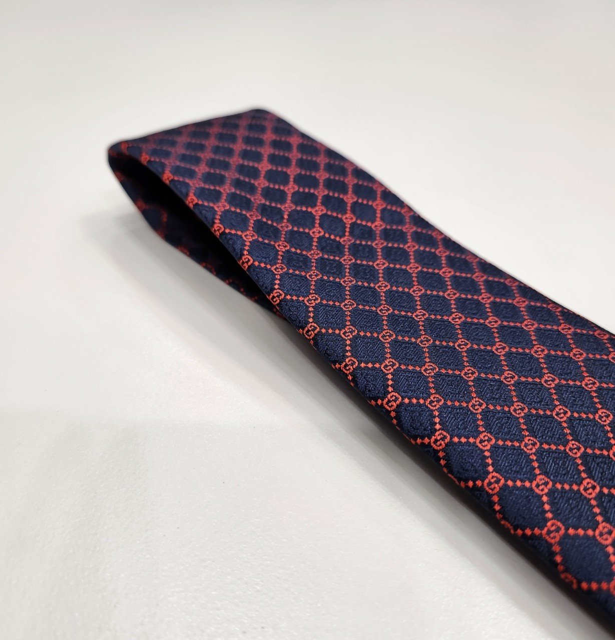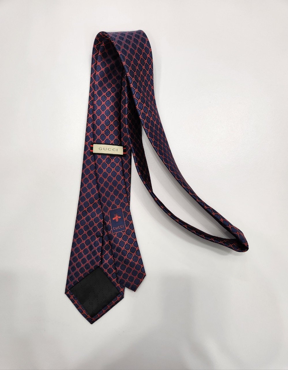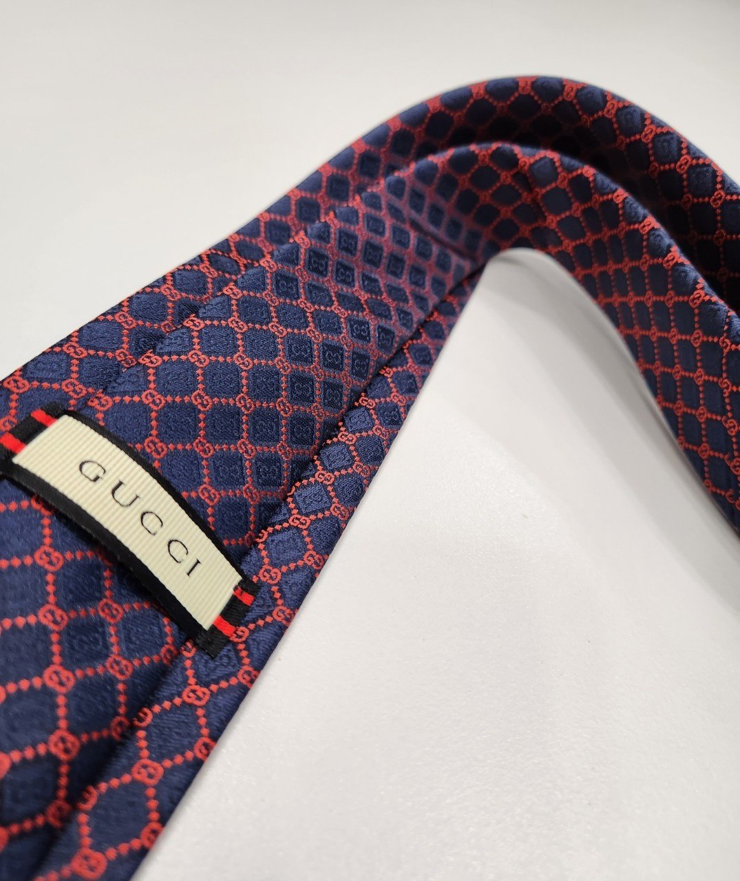 구*찌 23ss 시그니쳐 gg 패턴 실크 넥타이 입고