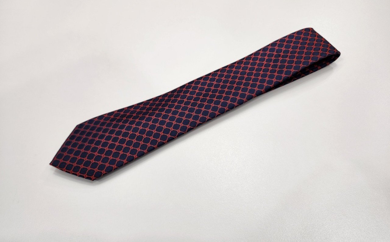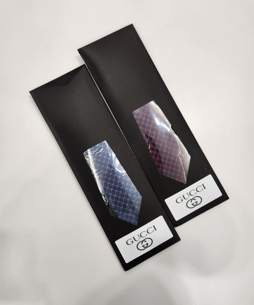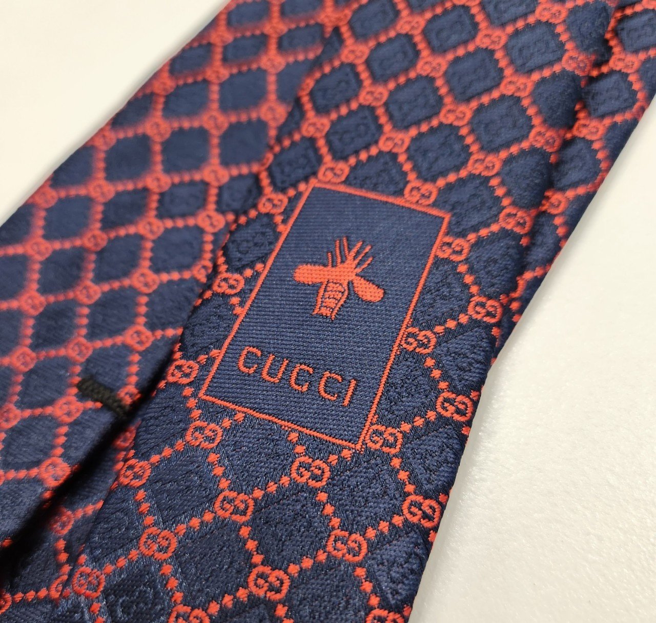 구*찌 23ss 시그니쳐 gg 패턴 실크 넥타이 입고