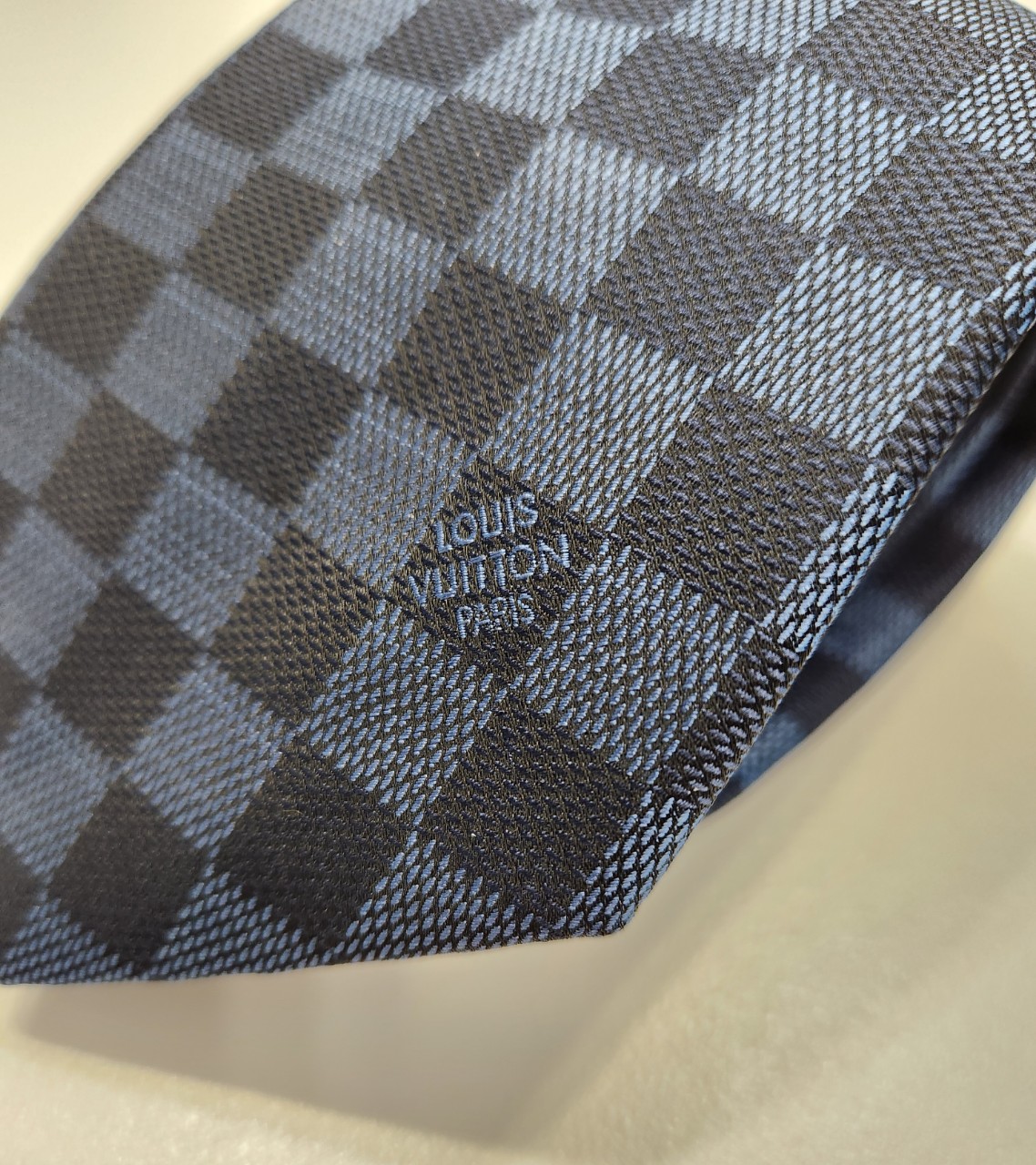 루이비통 23ss 다미에 패턴 실크 넥타이 입고
