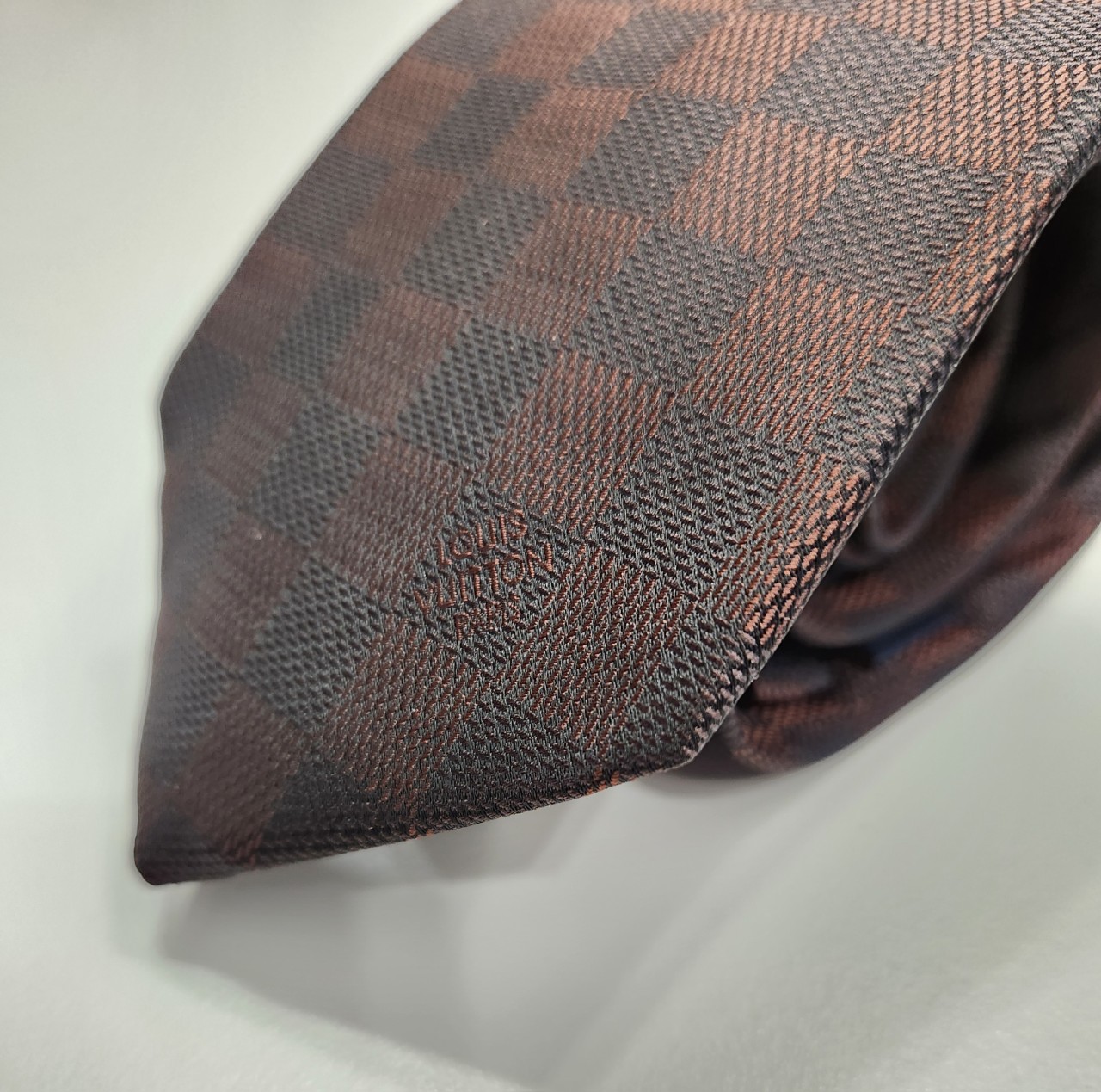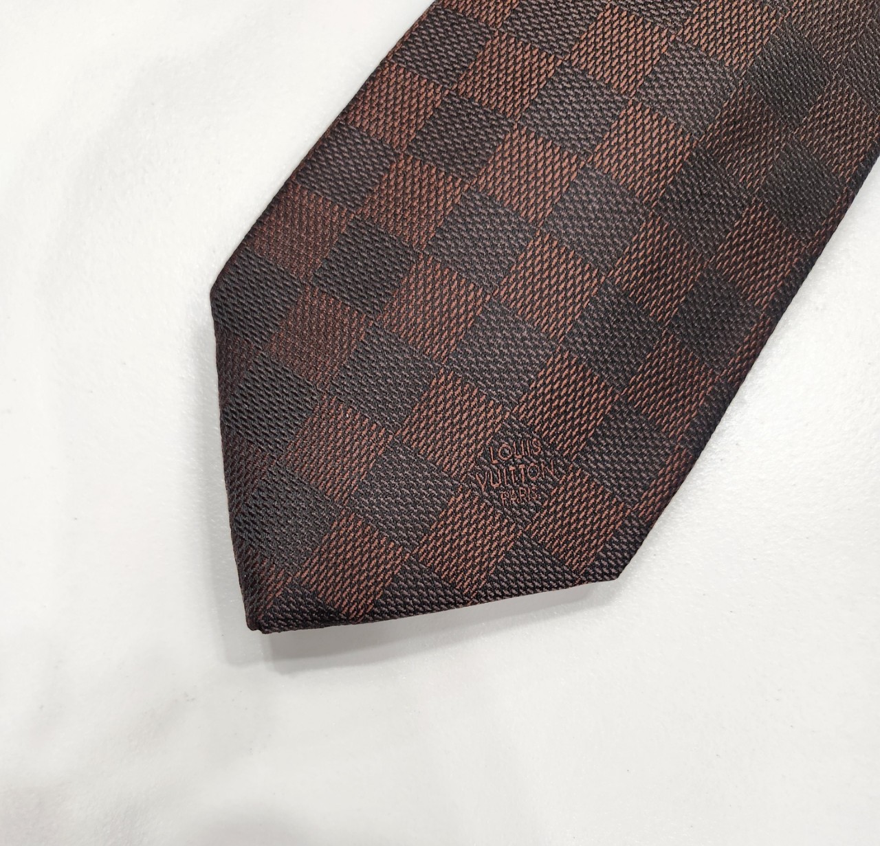 루*이비통 23ss 다미에 패턴 실크 넥타이 입고