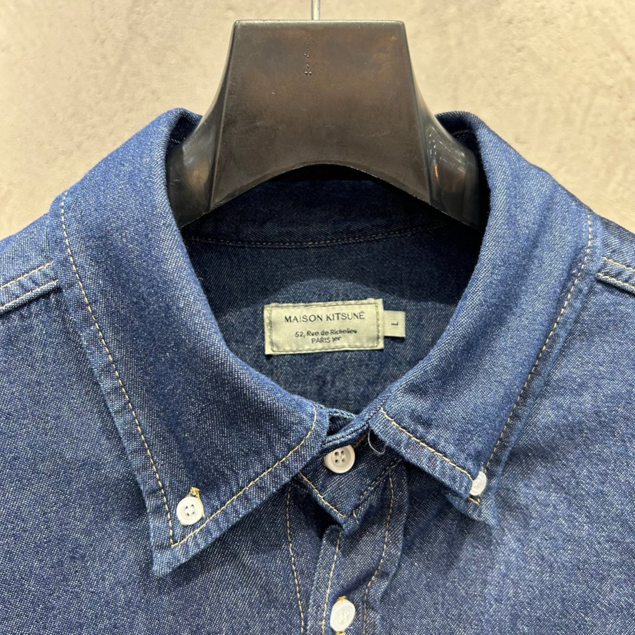 - 키츠네 시그니처 로고가 들어간 데님셔츠입니다.