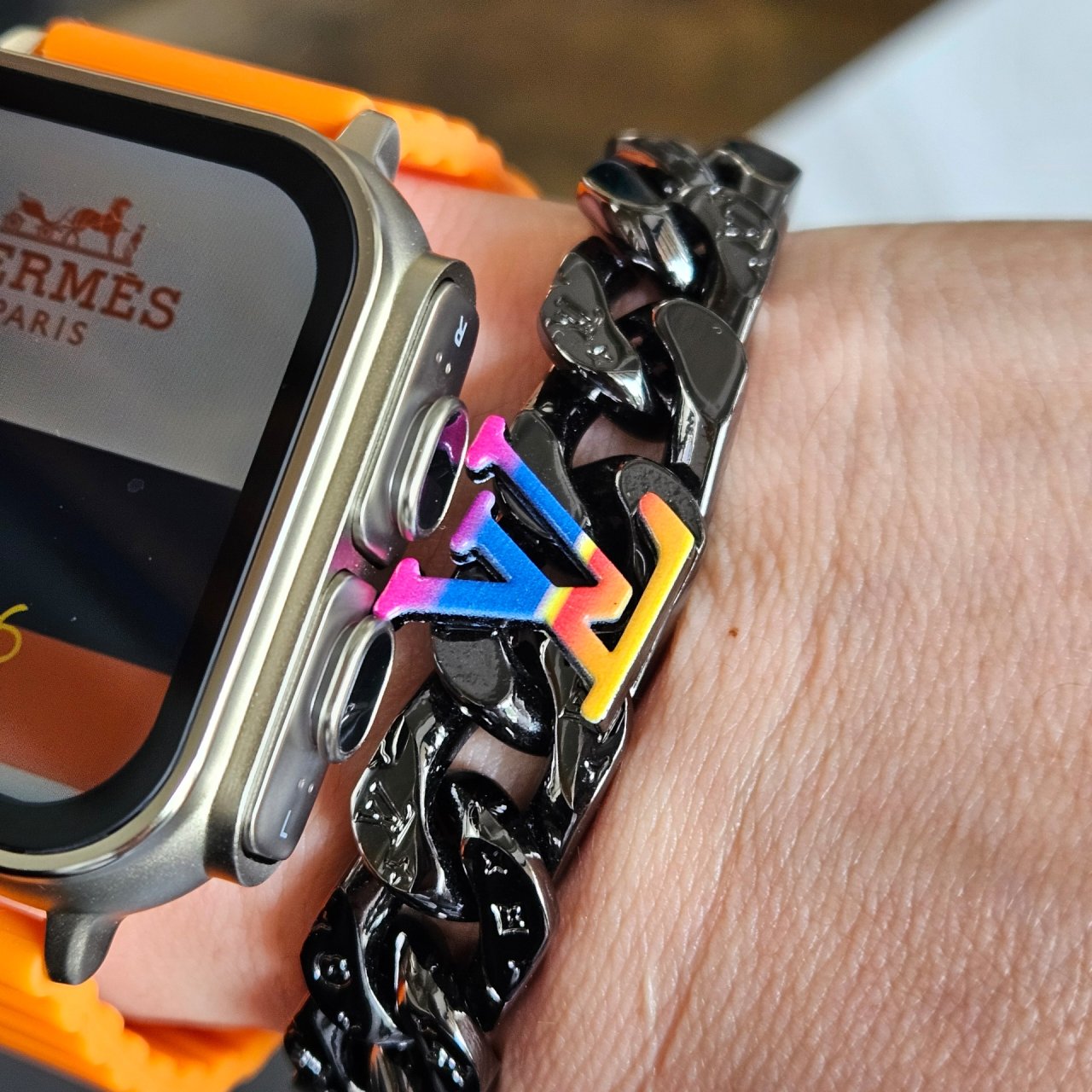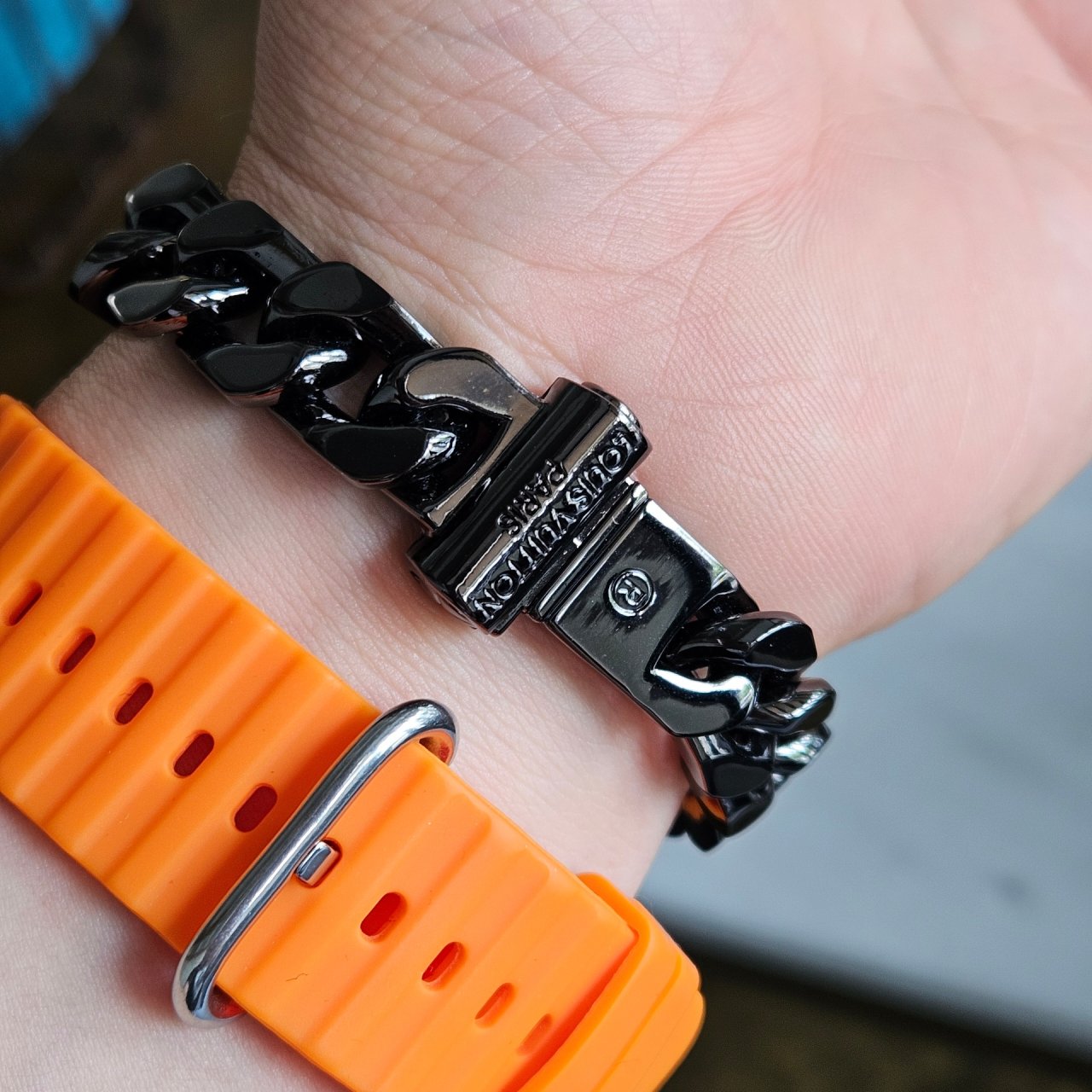 🍎모노그램 블랙 체인팔찌