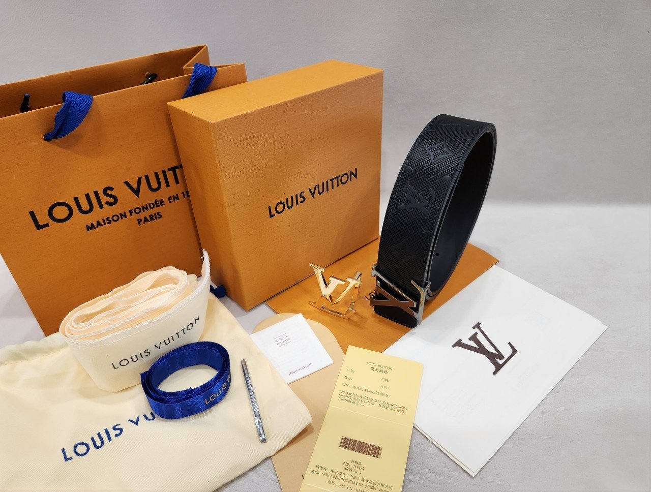구성품 - 본품, 버클2개(티타늄,골드) 쇼핑백, 케이스, 리본, 보증서, 더스트, 벨트보호대, 펀칭도구