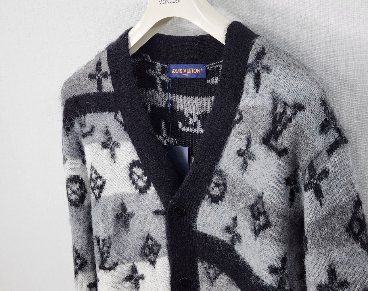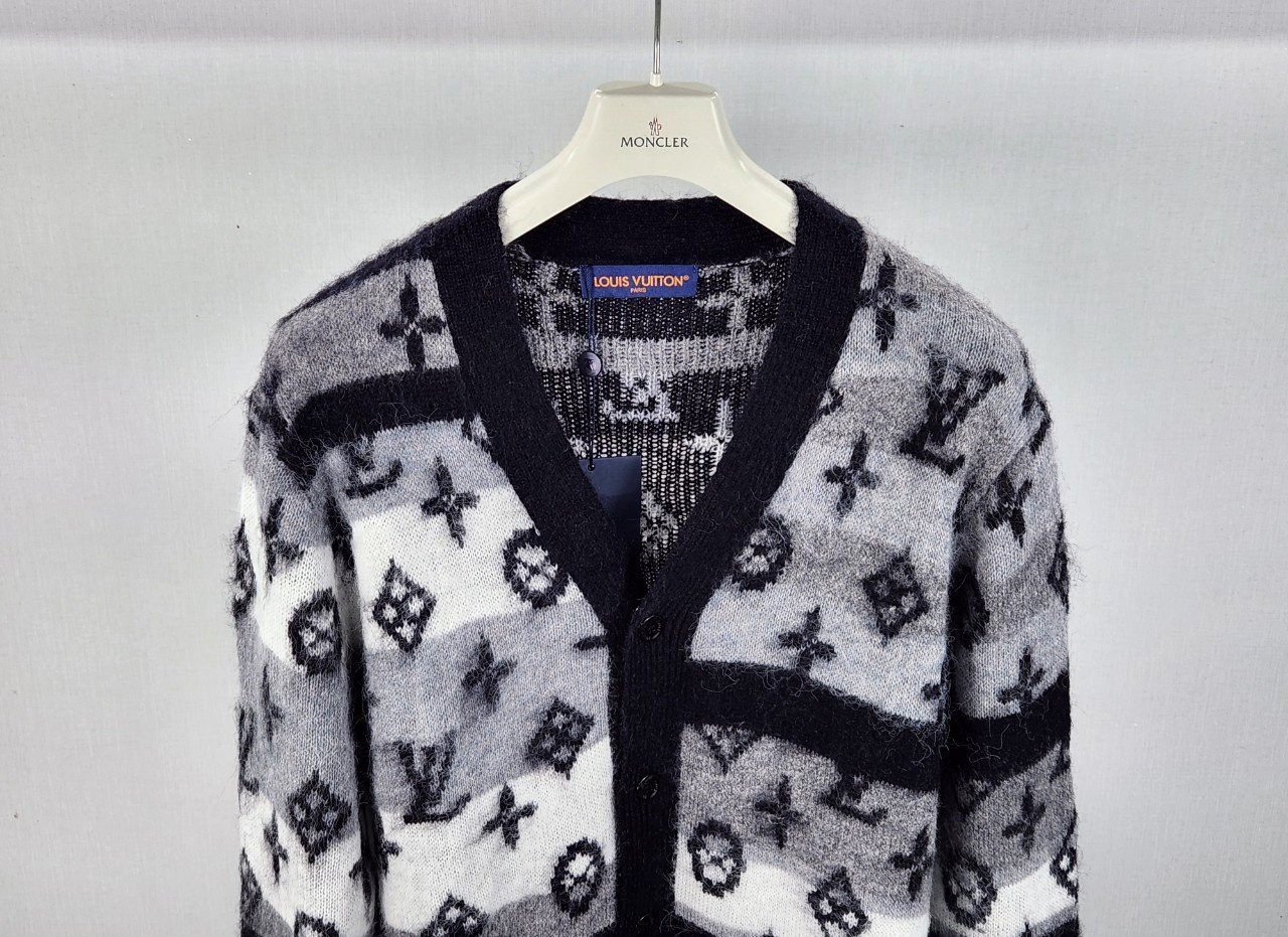 우아한 그레이 색조 위에 그래픽한 블랙 색상의 모노그램 모티프를 전체적으로 입혀 포근하고 강렬한 매력을 담아낸 가디건. 도톰하고 부드러운 브러시드 모헤어 소재. 간결하고 캐주얼한 팬츠 또는 테일러드 팬츠와 함께 착용하여 클래식하면서도 시선을 사로잡는 스타일을 연출할 수 있는 따뜻한 아이템 입니다.