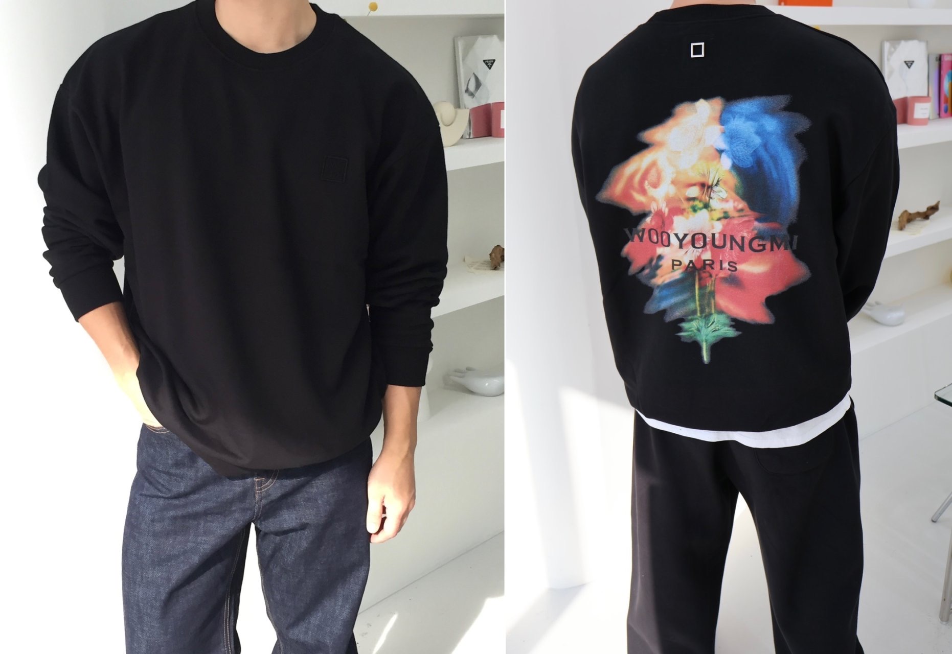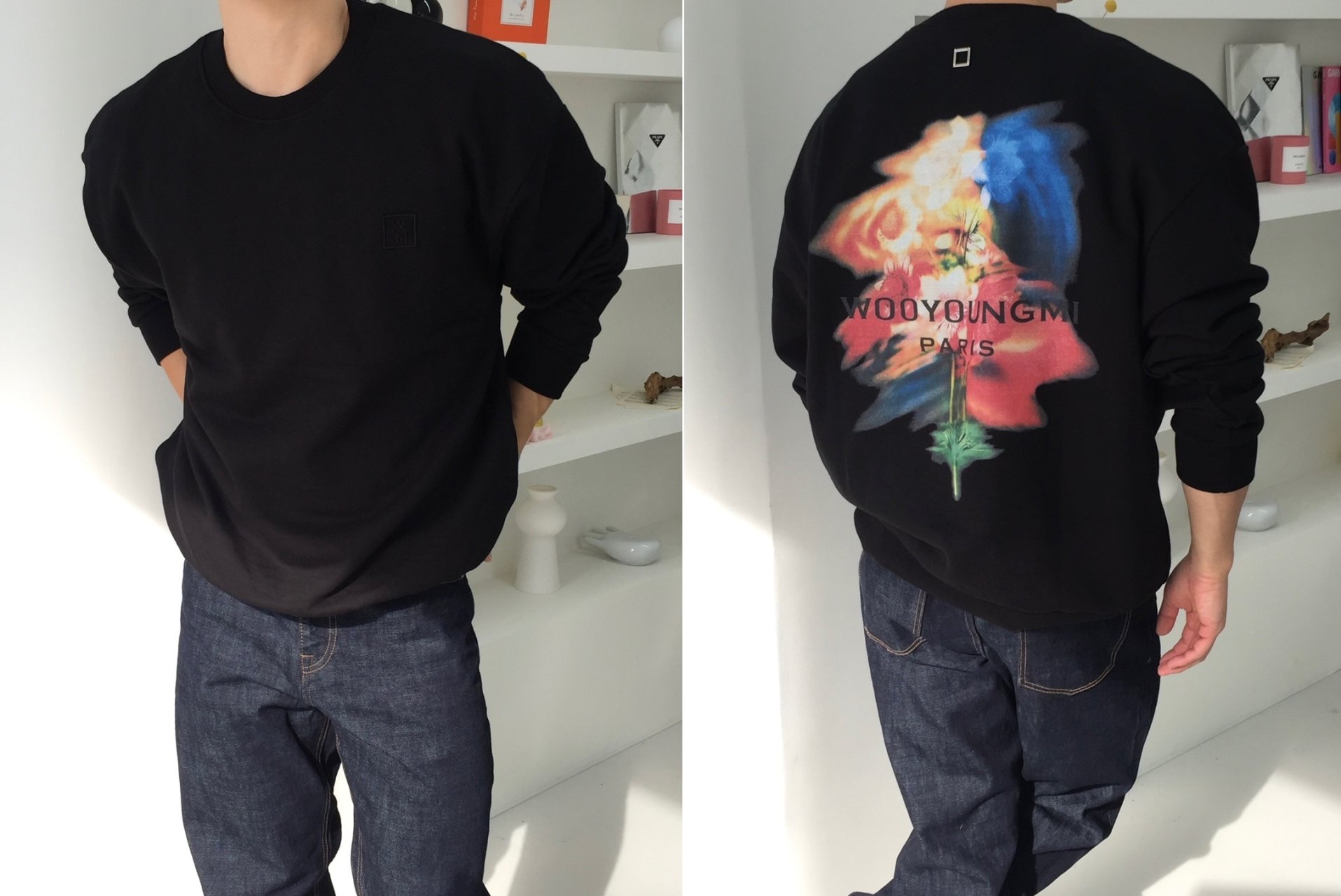 NEW!! 우*미 스웨잉 플라워 맨투맨(블랙)