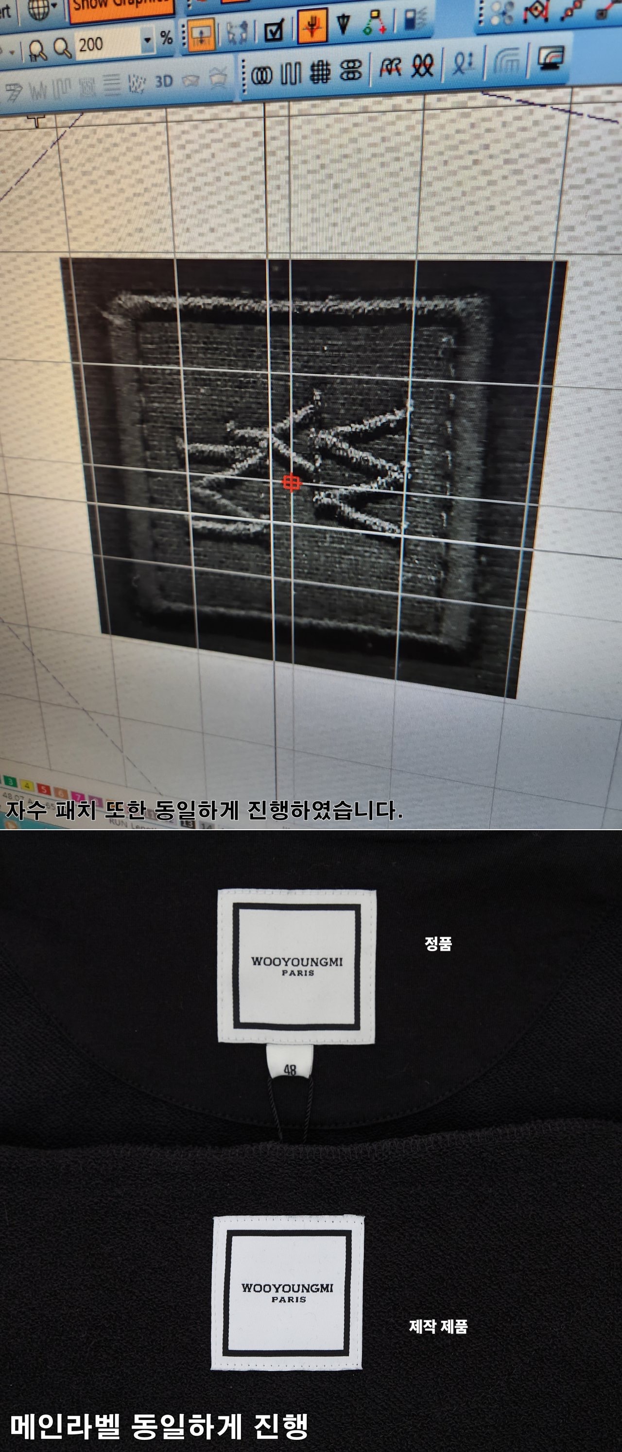 -정면부분 로고패치 실색상,폰트등동일하게 진행하였습니다.