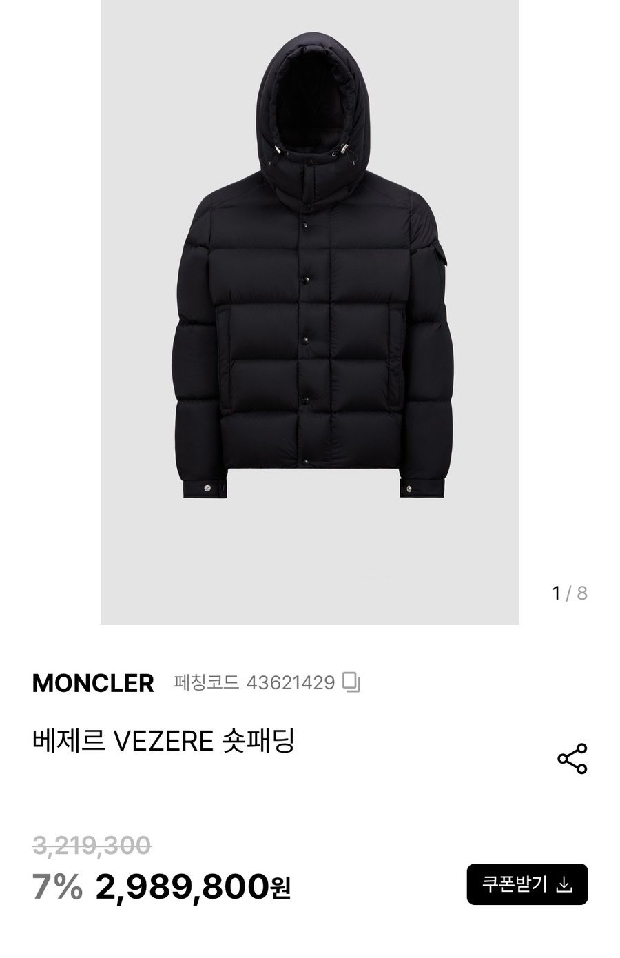 본 제품은" 몽O 베제르 구스다운 패딩 " 입니다