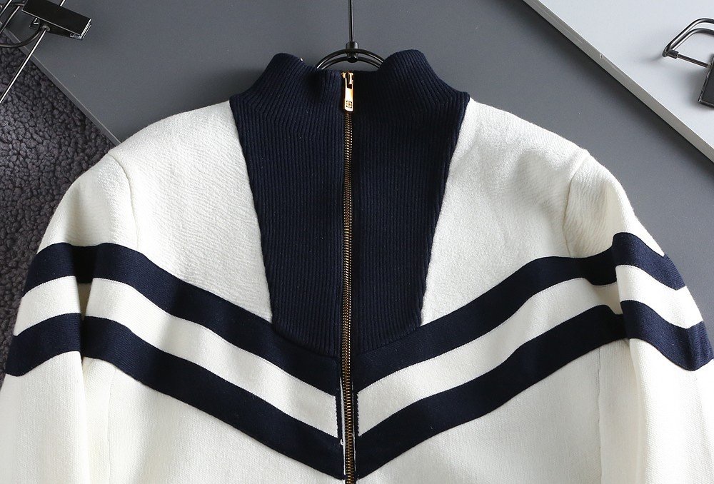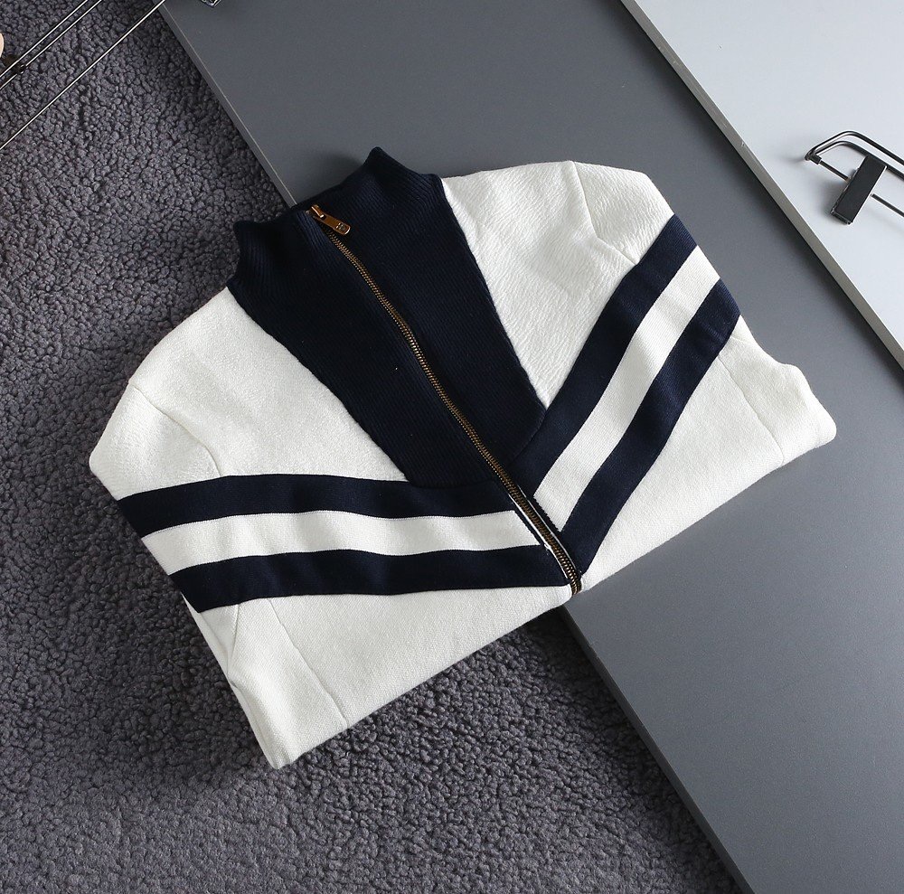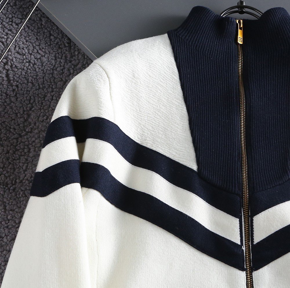 니티드 세일러 블루종 집업