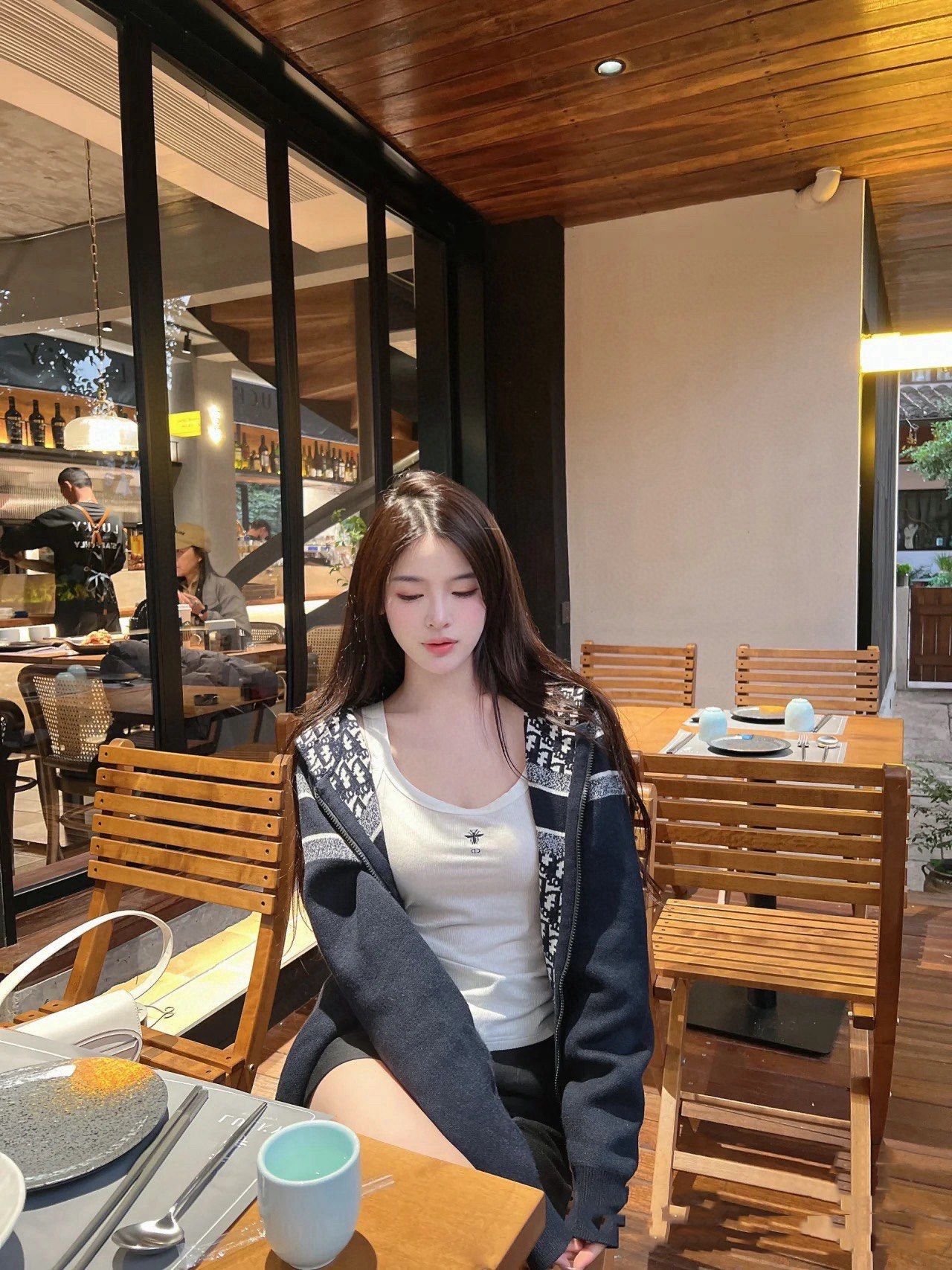 D 리버시블 후드 지퍼 가디건