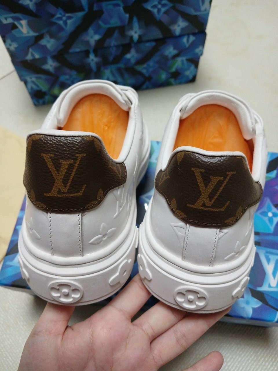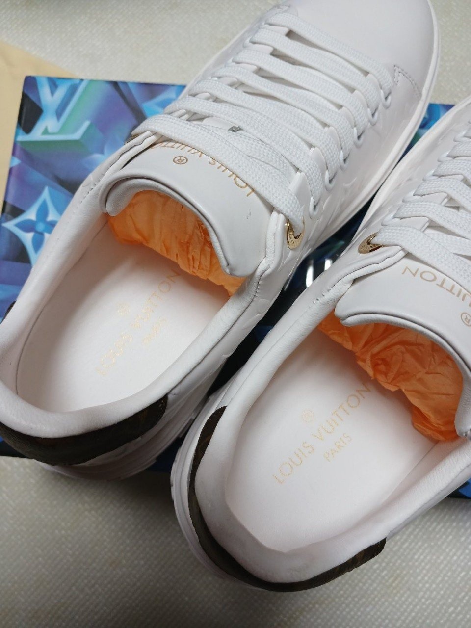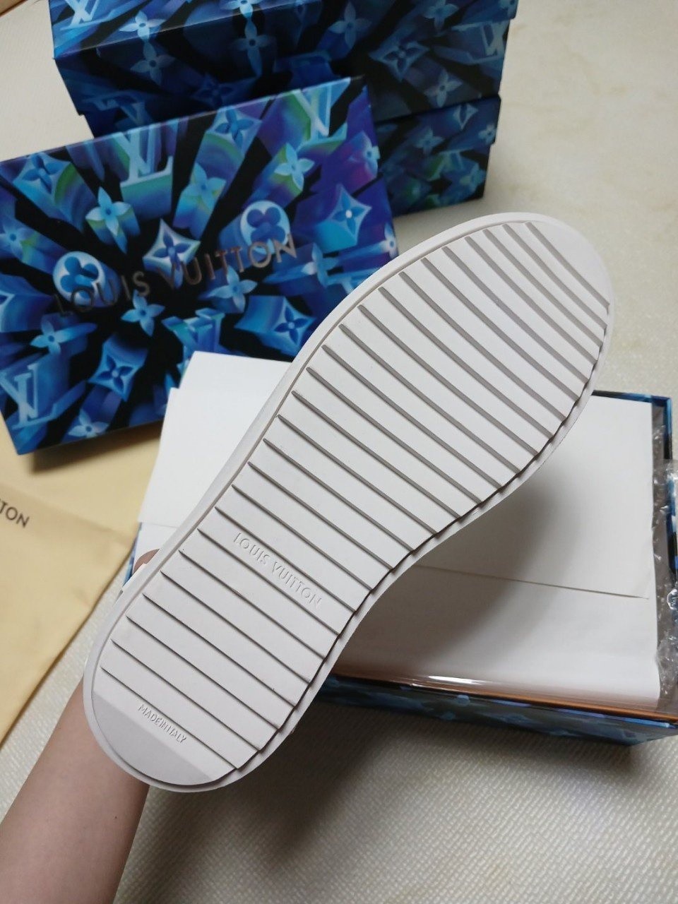 겉창. 텅 부분의 LV 이니셜과 뒷면의 루이*통 시그니처 특징.