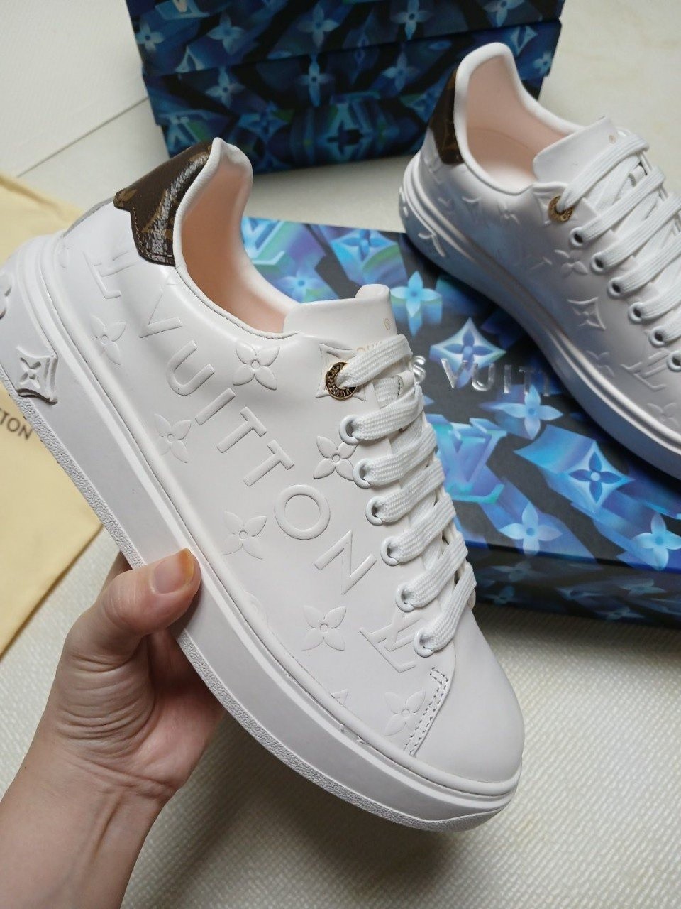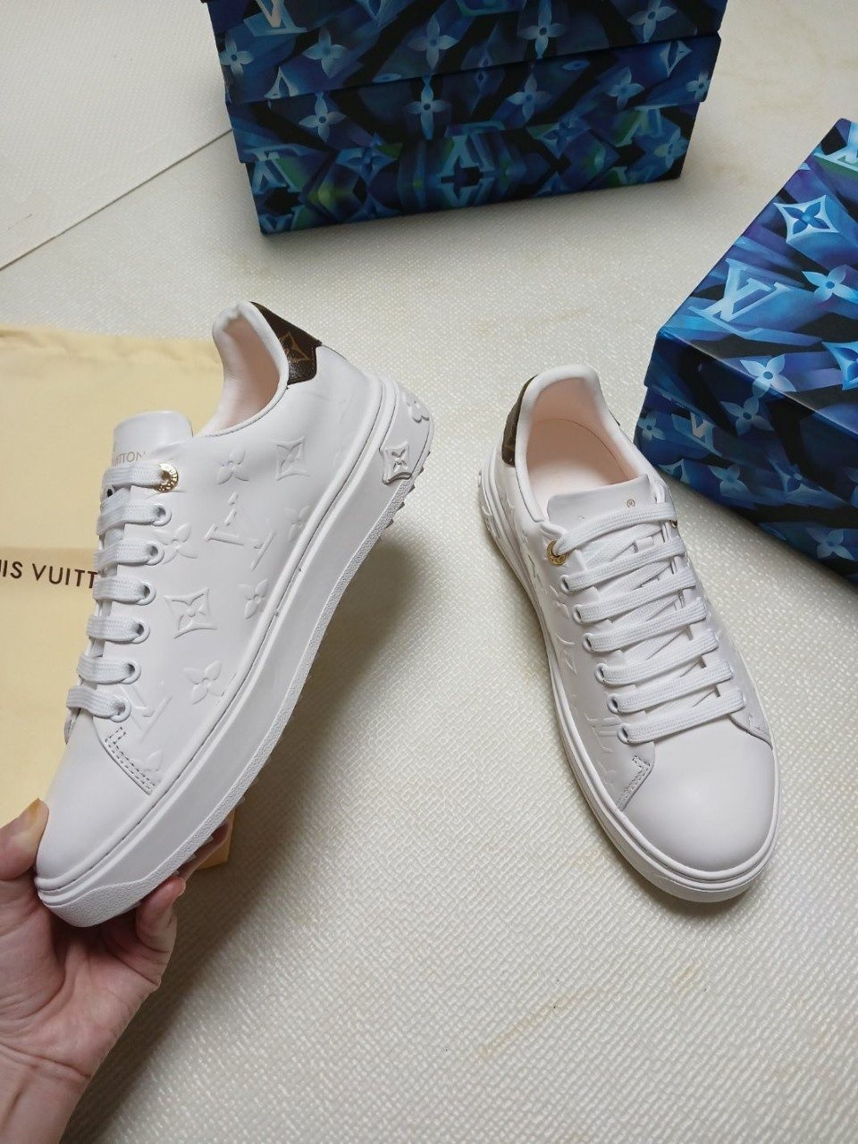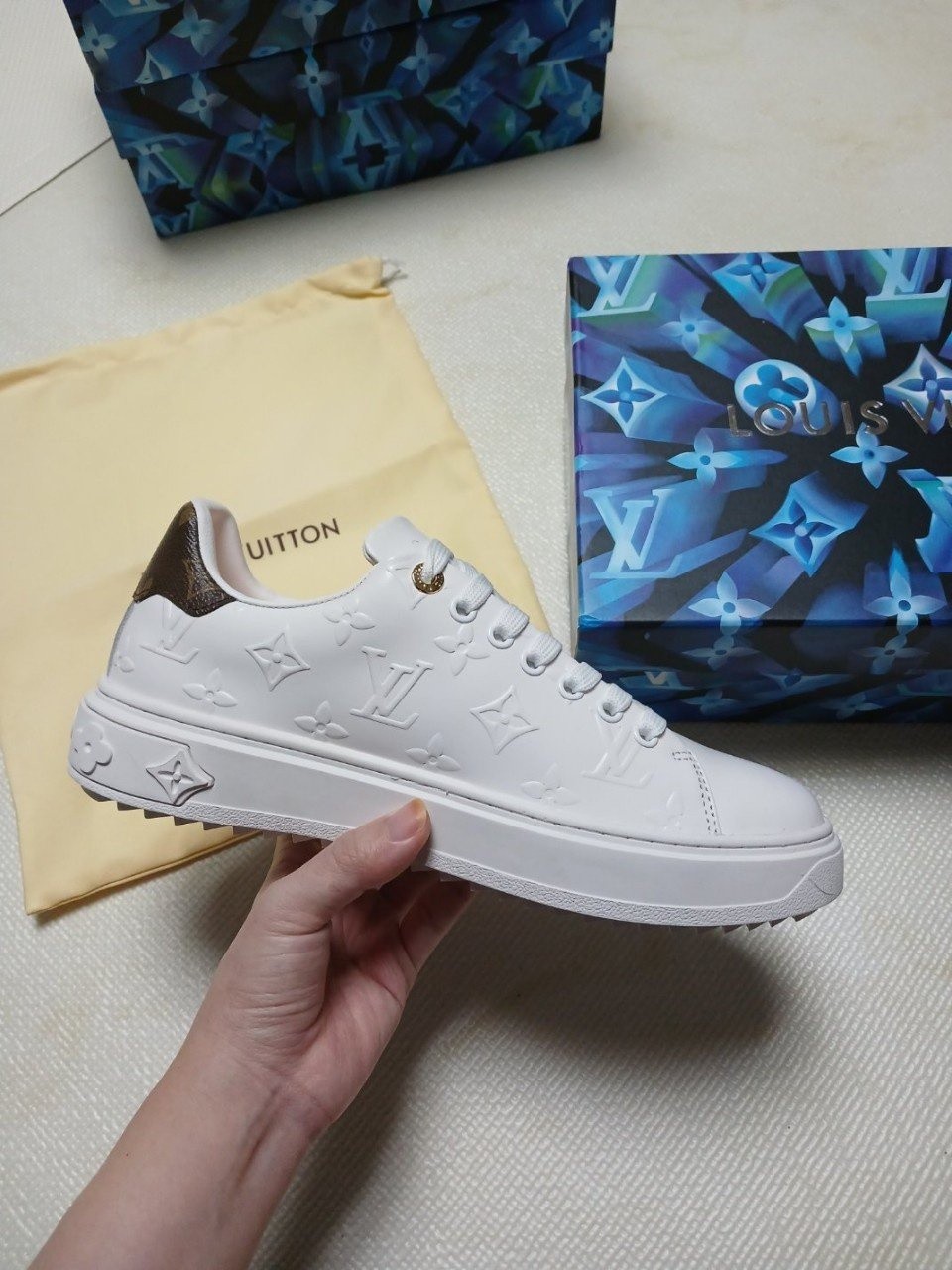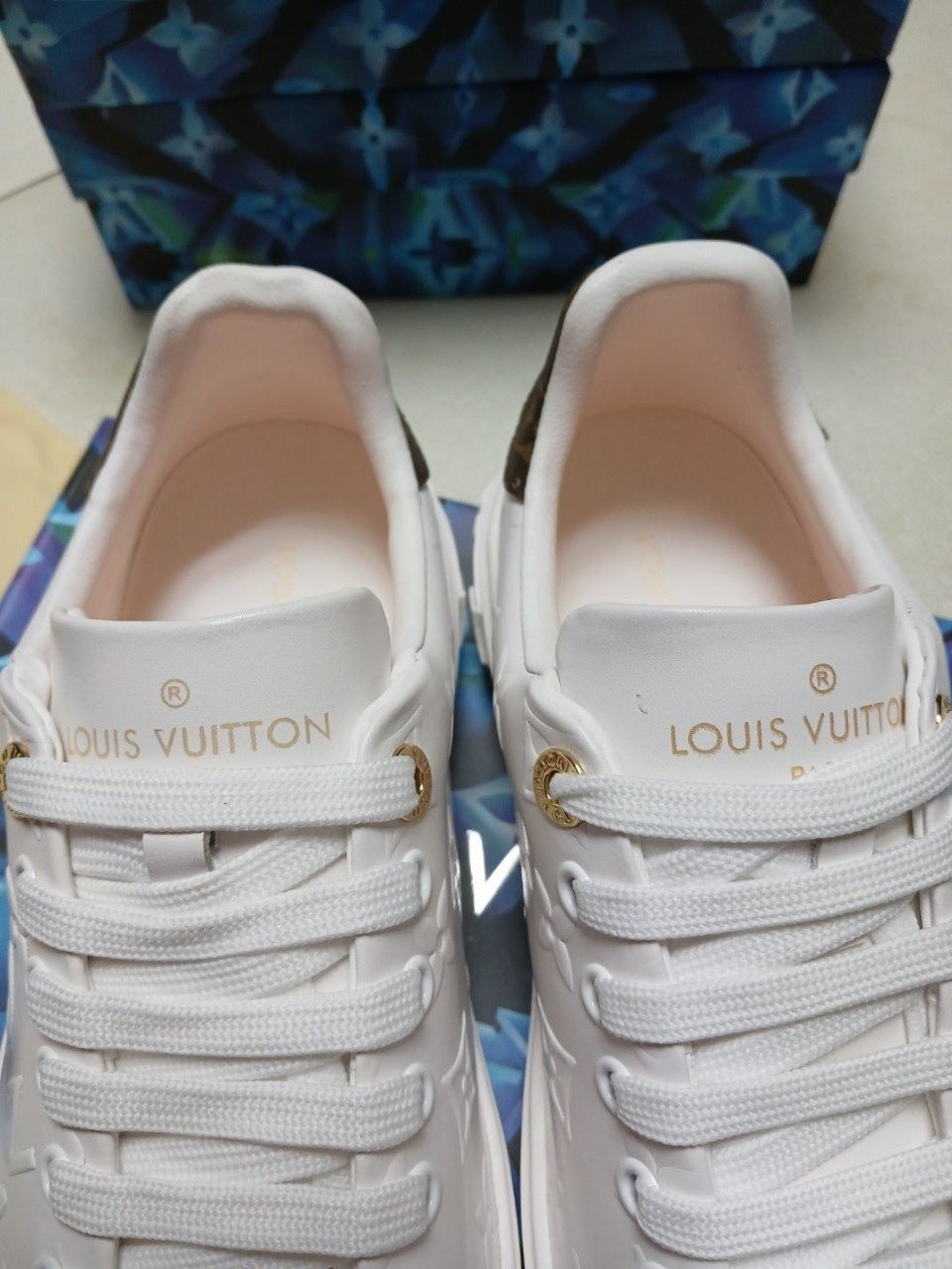 런 어웨이 스니커즈. 오버사이즈 패턴으로 양각 처리한 루이*통의 유서 깊은
