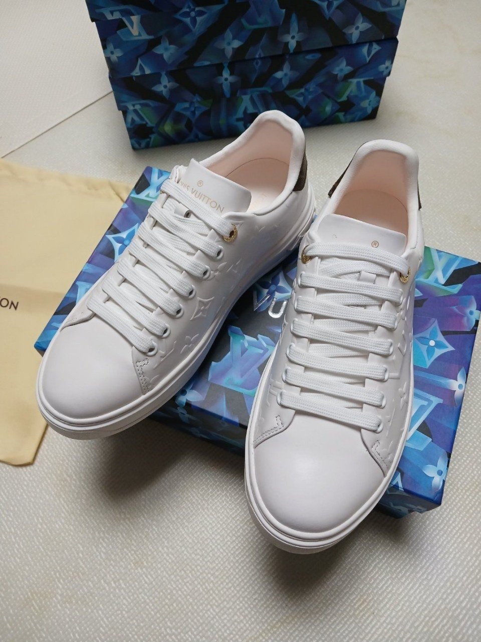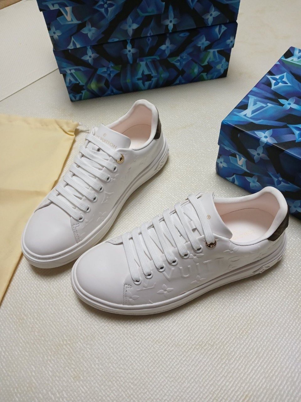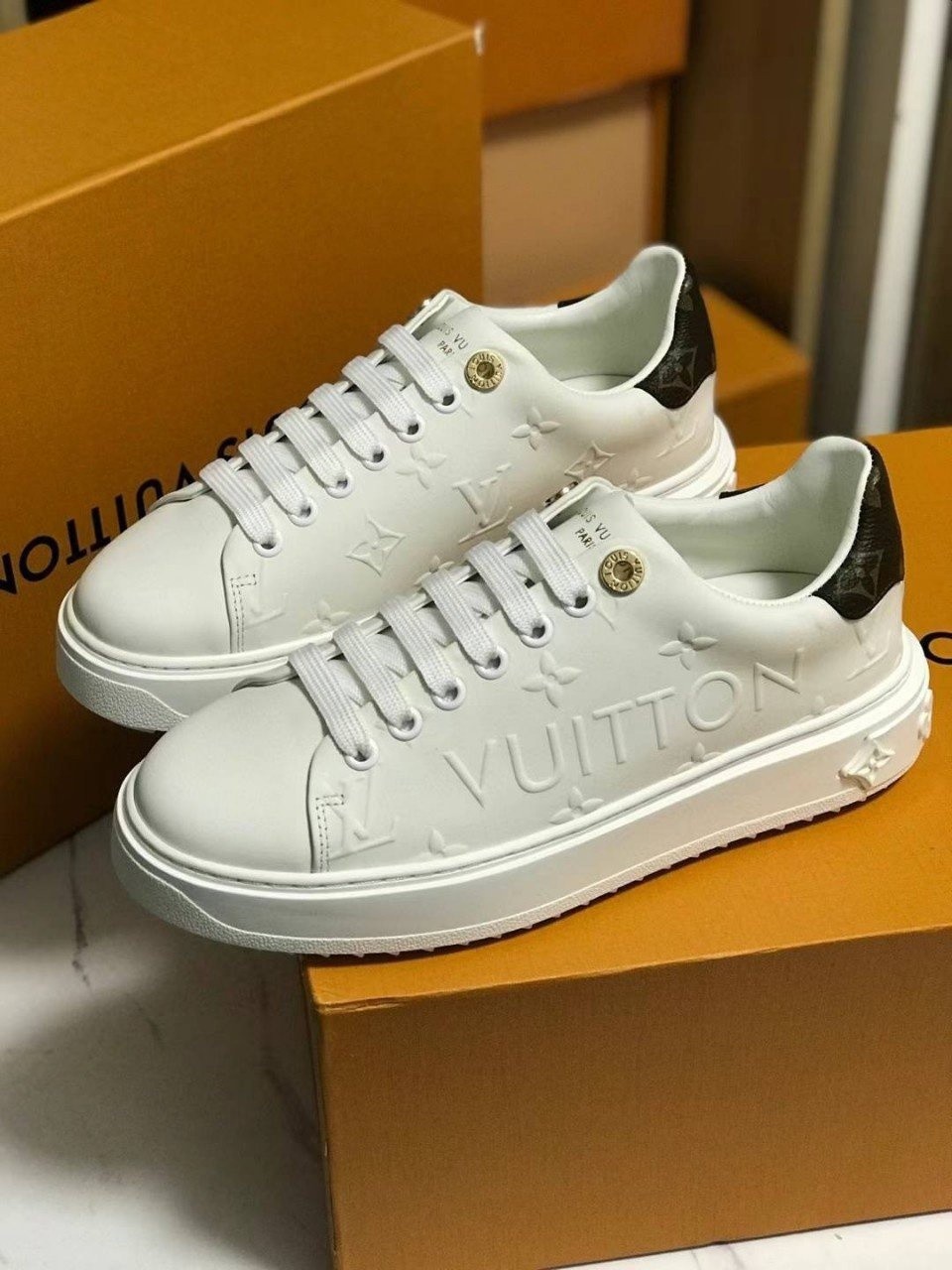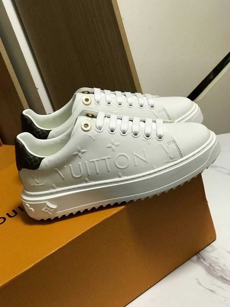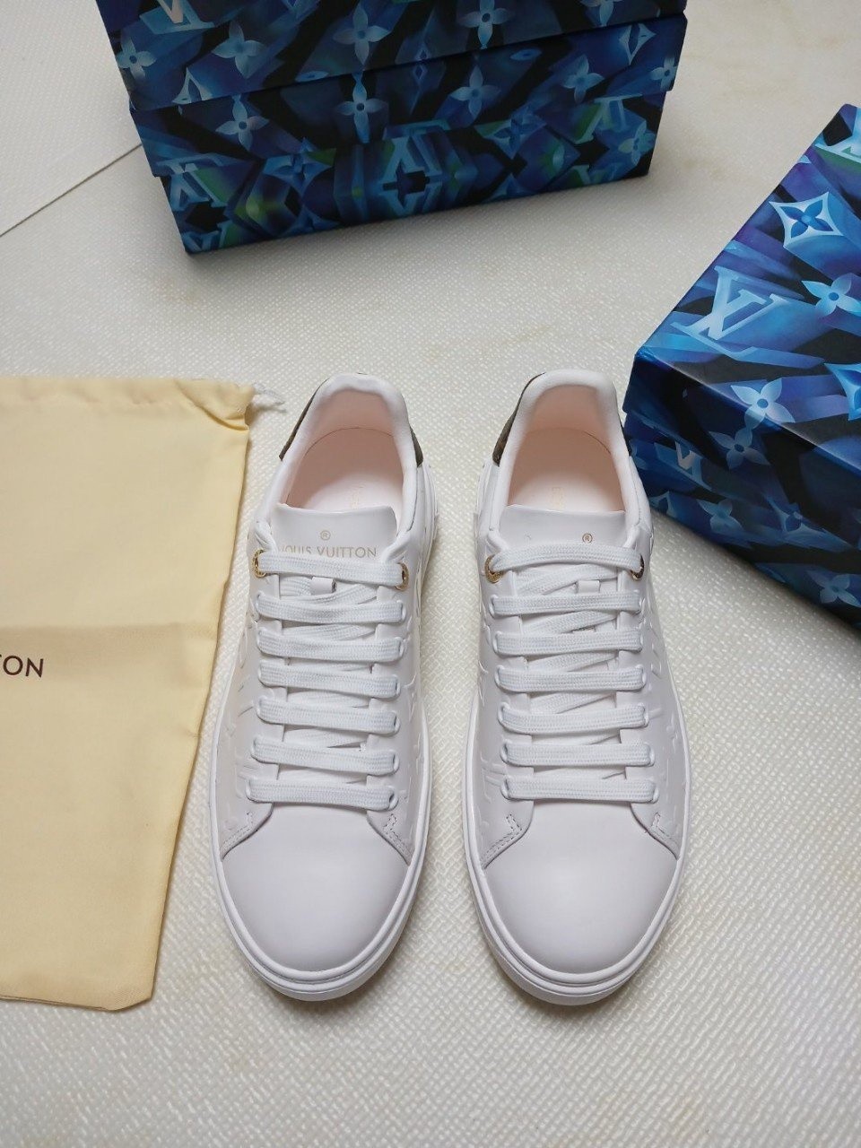 런 어웨이 스니커즈. 오버사이즈 패턴으로 양각 처리한 루이*통의 유서 깊은