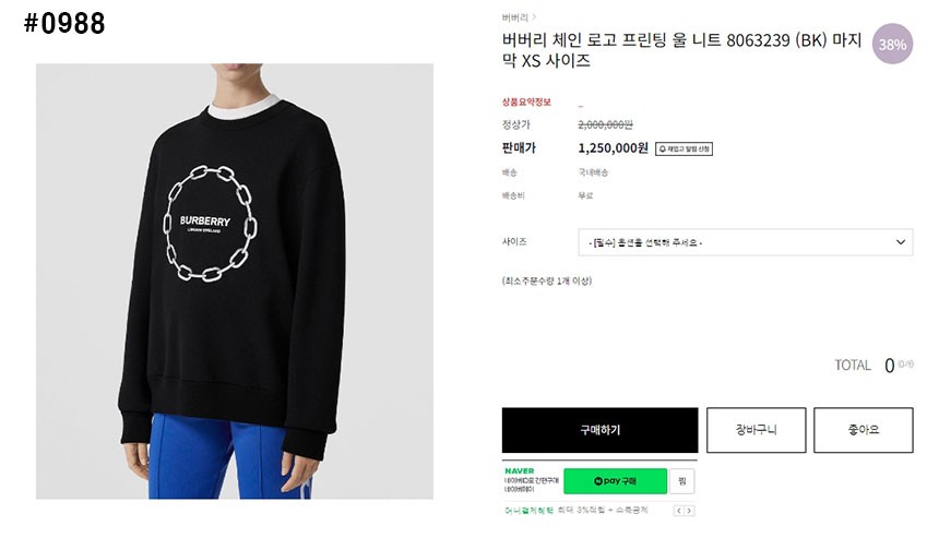 🍀 버*리 체인자수 로고 니트 🍀