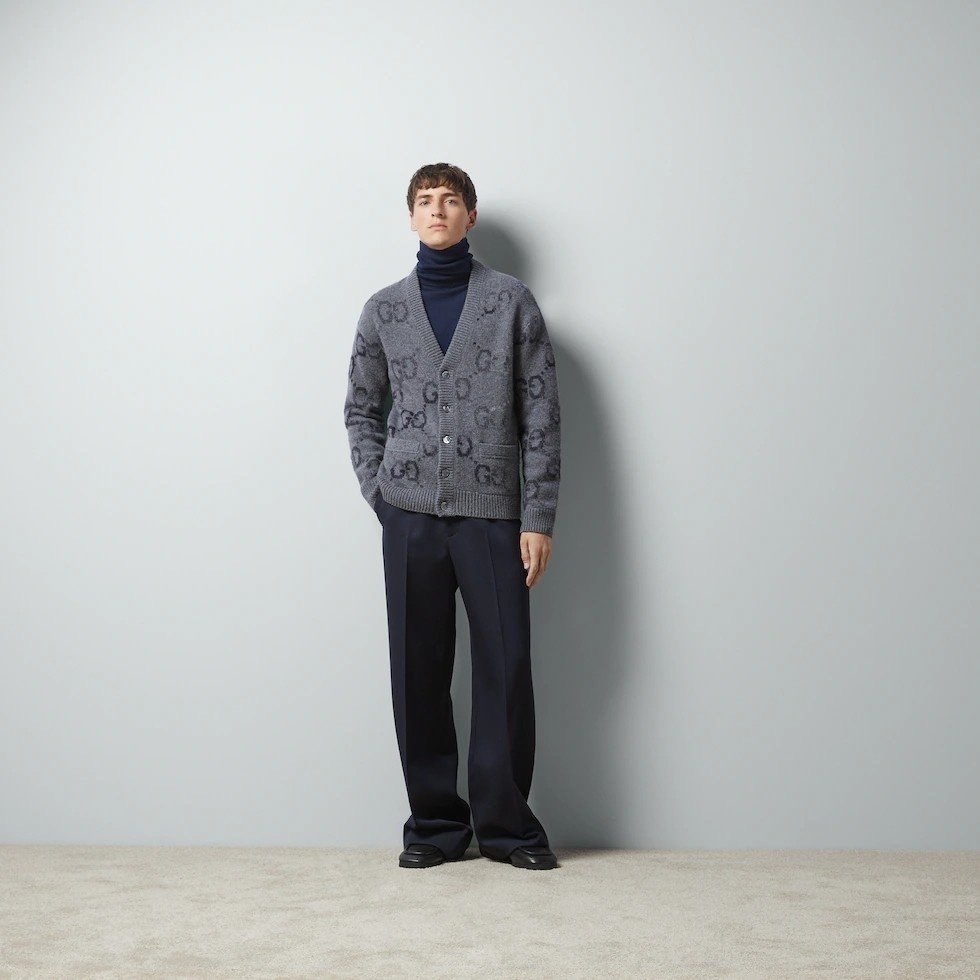 쌀쌀한 계절의 스타일에 독특하고도 현대적인 감성을 더하며 화사한 분위기를 불어넣는 파스텔 컬러 팔레트. 다채로운 컬러의 GG 로고를 활용한 니트웨어 디자인과 클래식한 감각이 스며든 캐시미어 아이템. 다양한 그레이 컬러의 대담한 GG 인타르시아 패턴을 전체적으로 적용해 완성한 높은 활용도의 부드러운 울 니트 가디건 입니다.