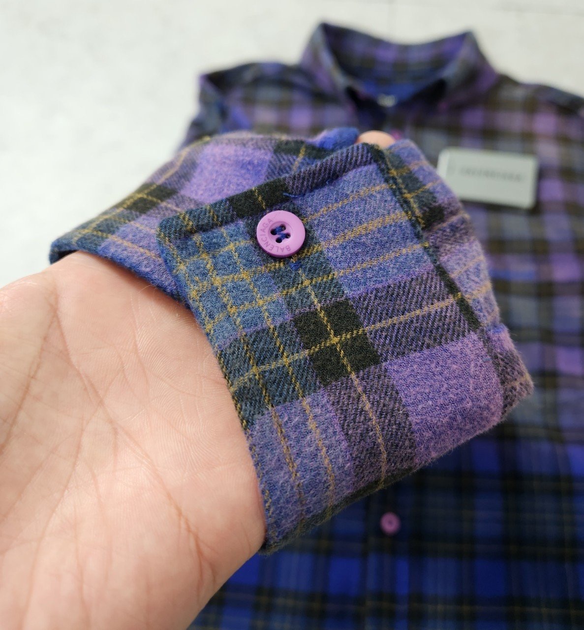 블루 및 블랙 체크 플란넬 소재의 셔츠 입니다.