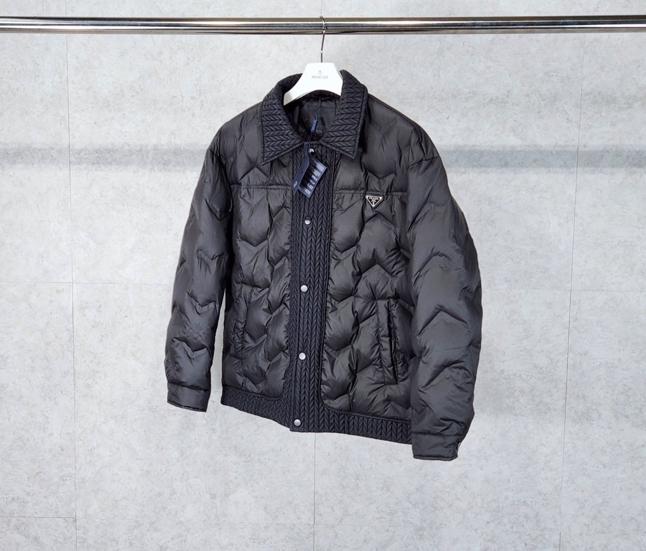 핏감 정말 예술 입니다. 프*라다의 구스다운 퀼팅 패딩 입고되었습니다.