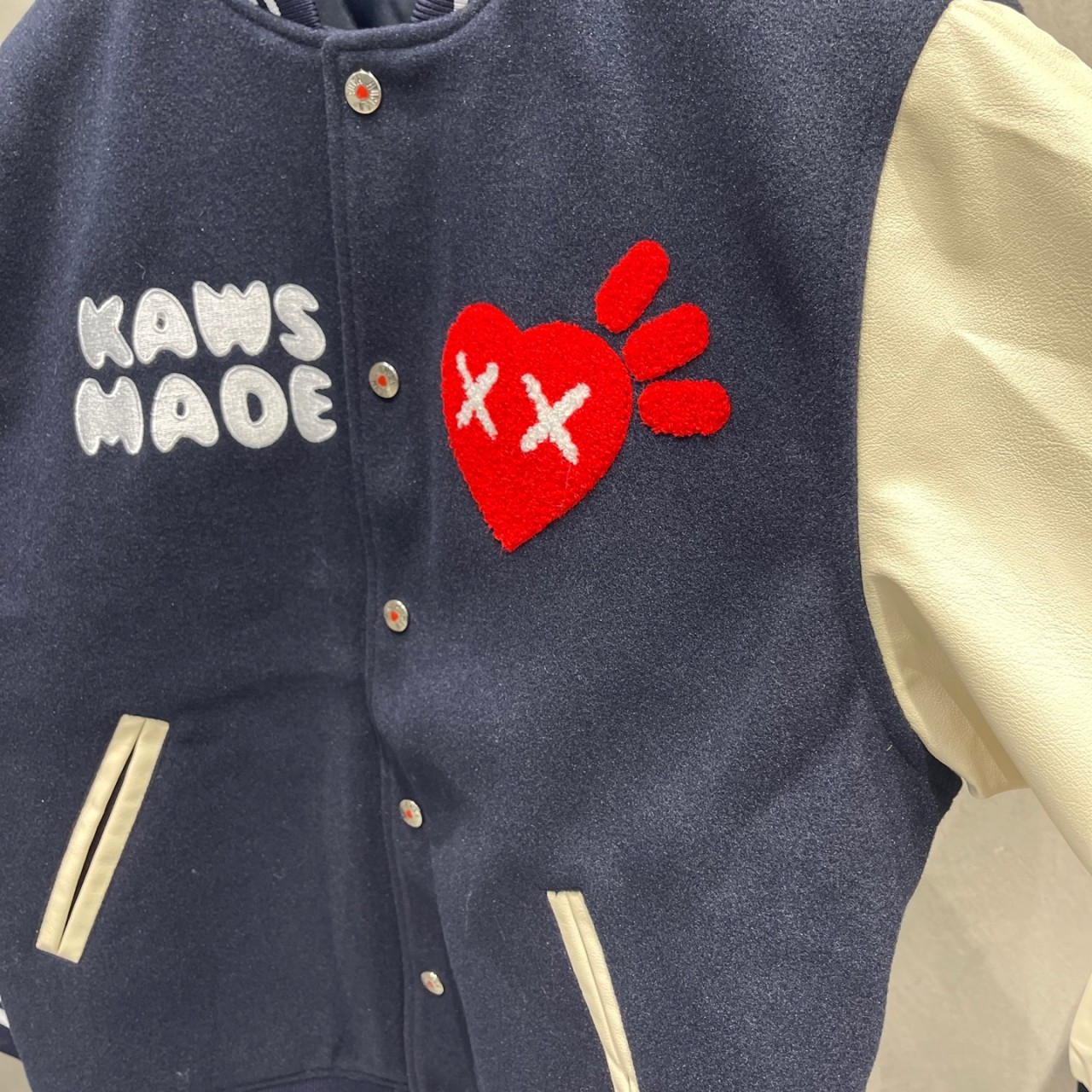 ✔ 휴먼메이드 바시티는 본품 구매후 1:1로 제작한 제품입니다. 몸판 원단, 소매 원단 등 본품과 탕차이 없이 거의 흡사하게 잘 뽑았습니다.