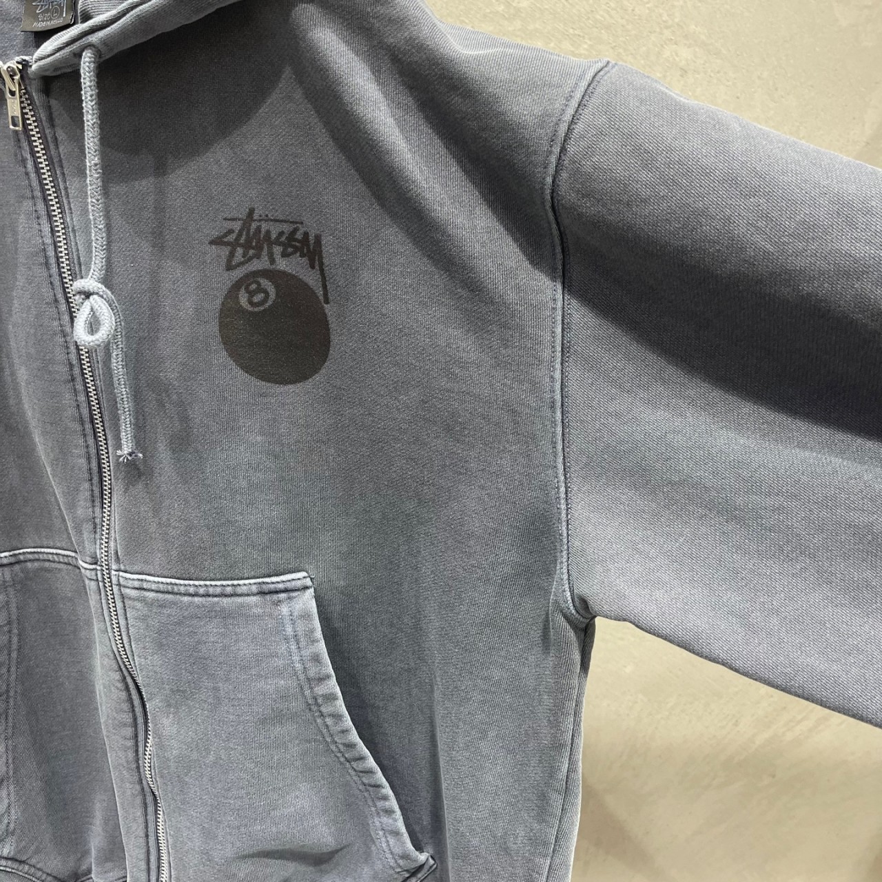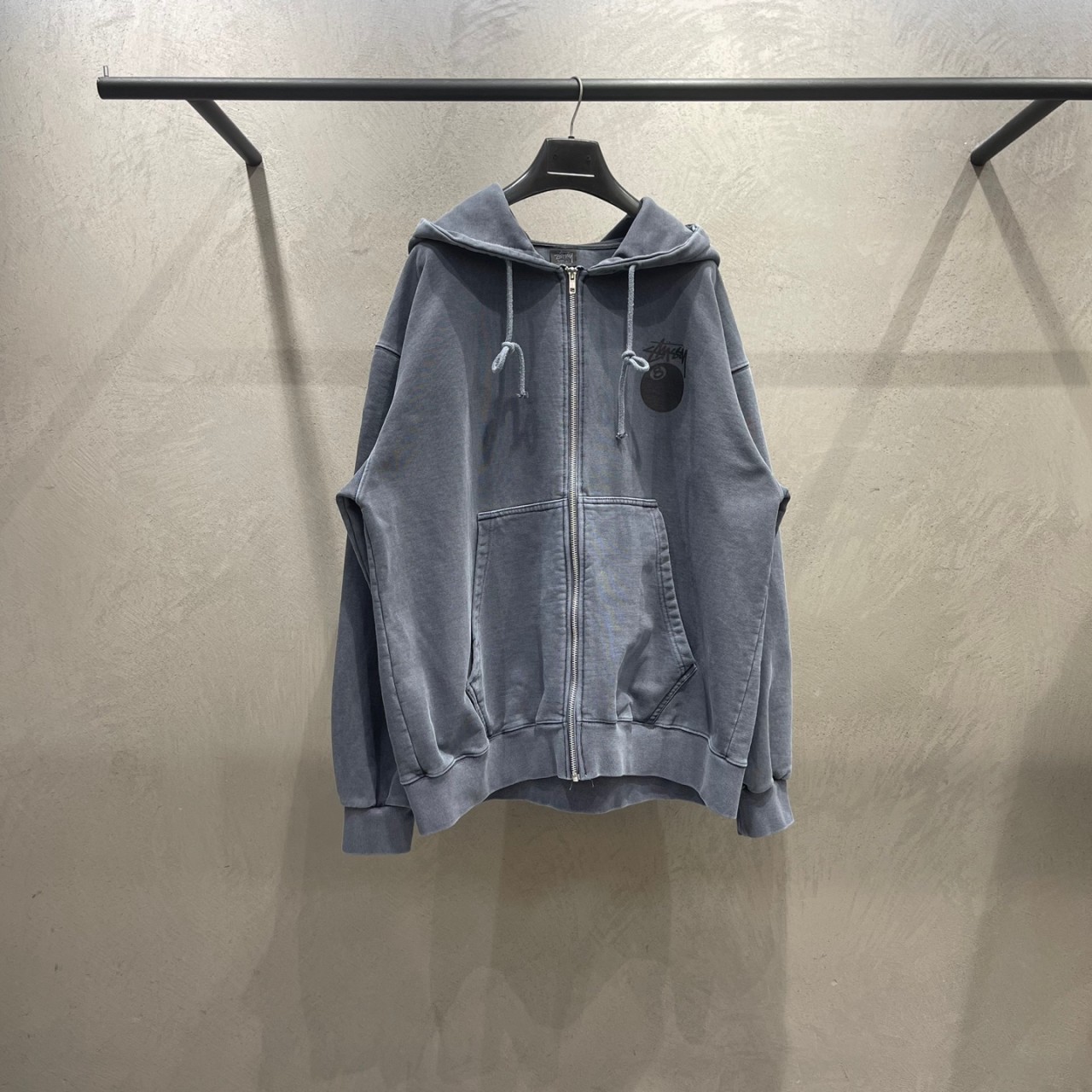 - 스투시사의 시그니처 로고인 8볼이 나염으로 들어가있는 피그먼트 후드집업 입니다.