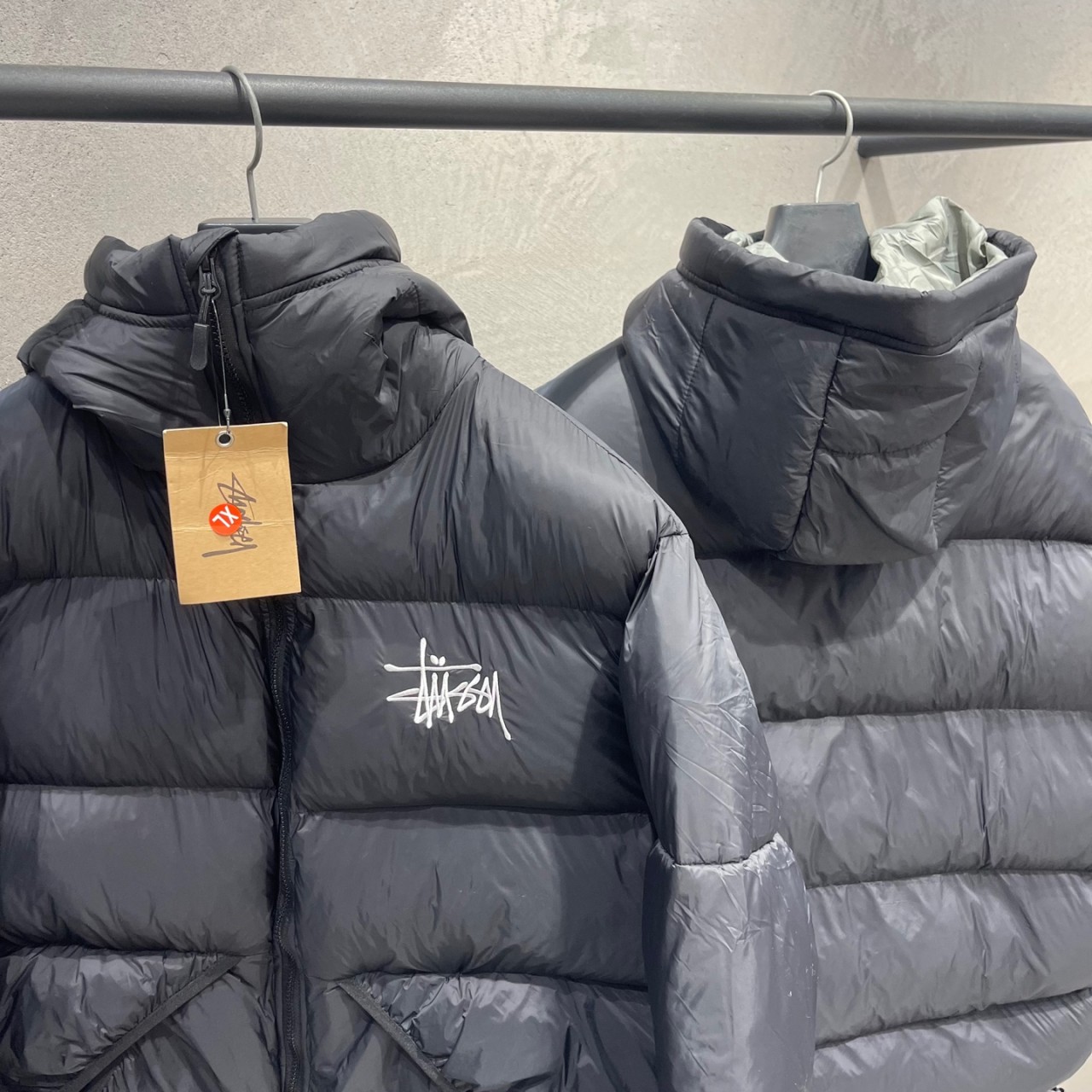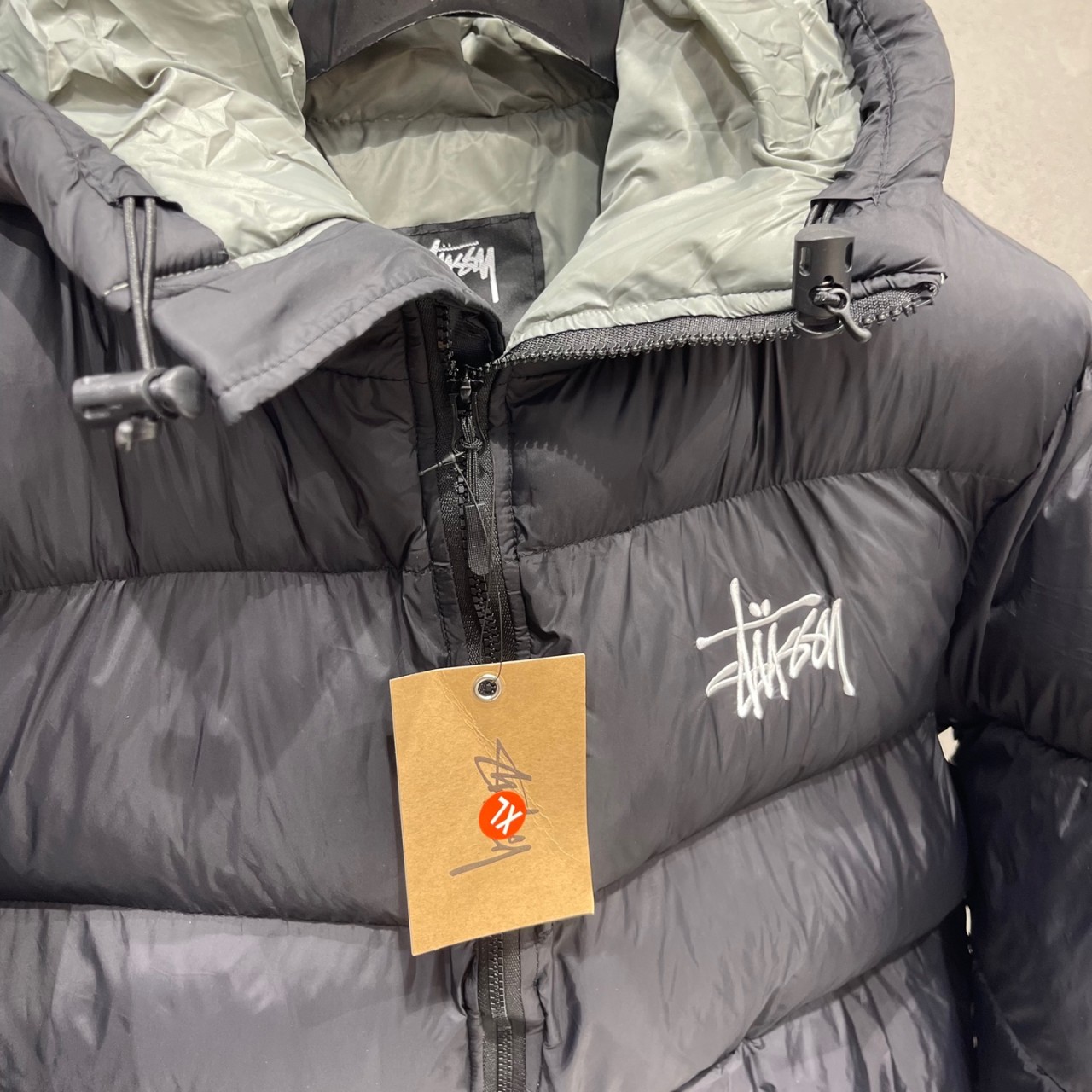 - 스투시의 대표 로고가 메인으로 자수되어있는 패딩입니다.