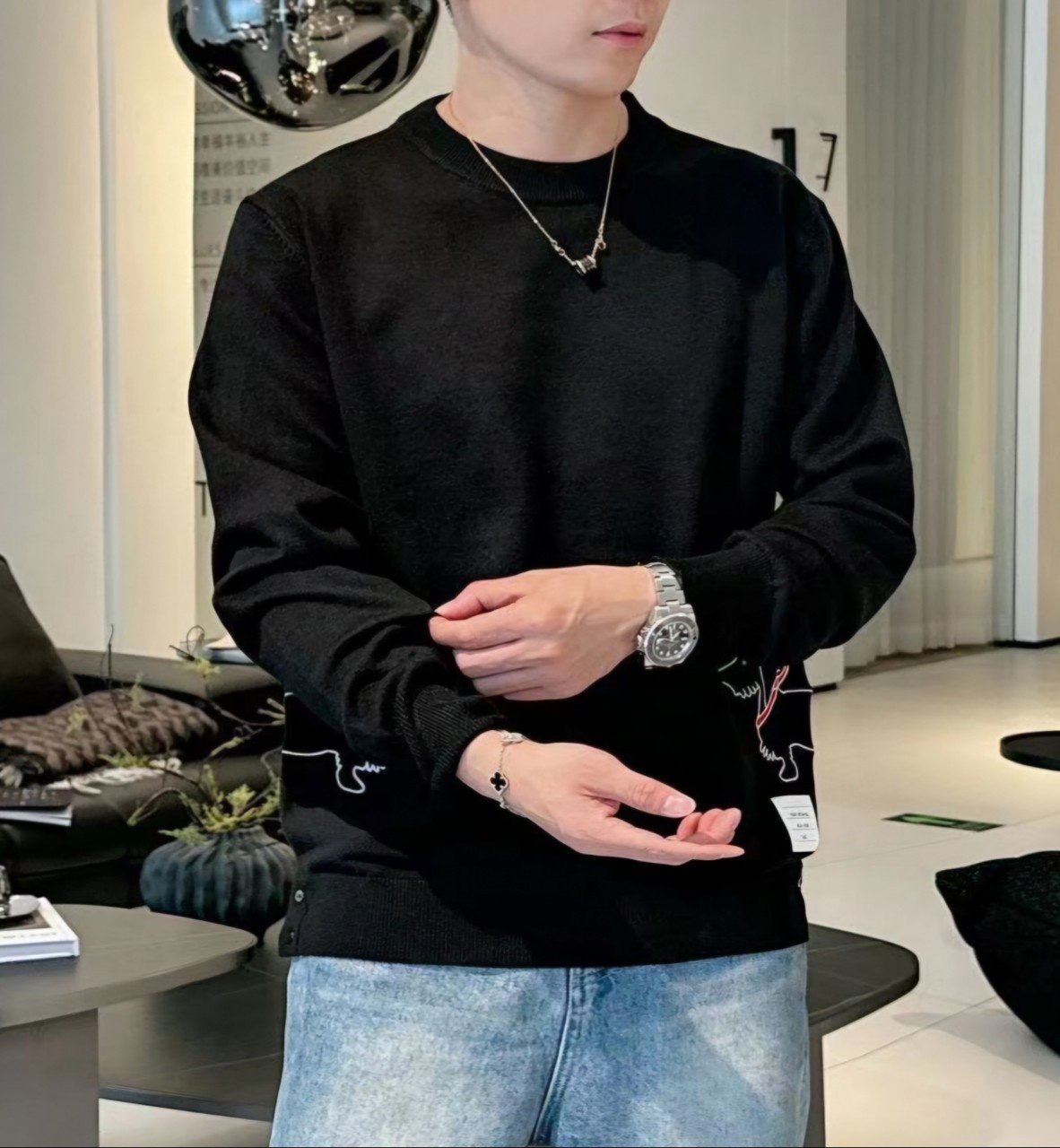 【톰***】 헥터 자수 라운드 니트➡️수입최고급(남녀공용)