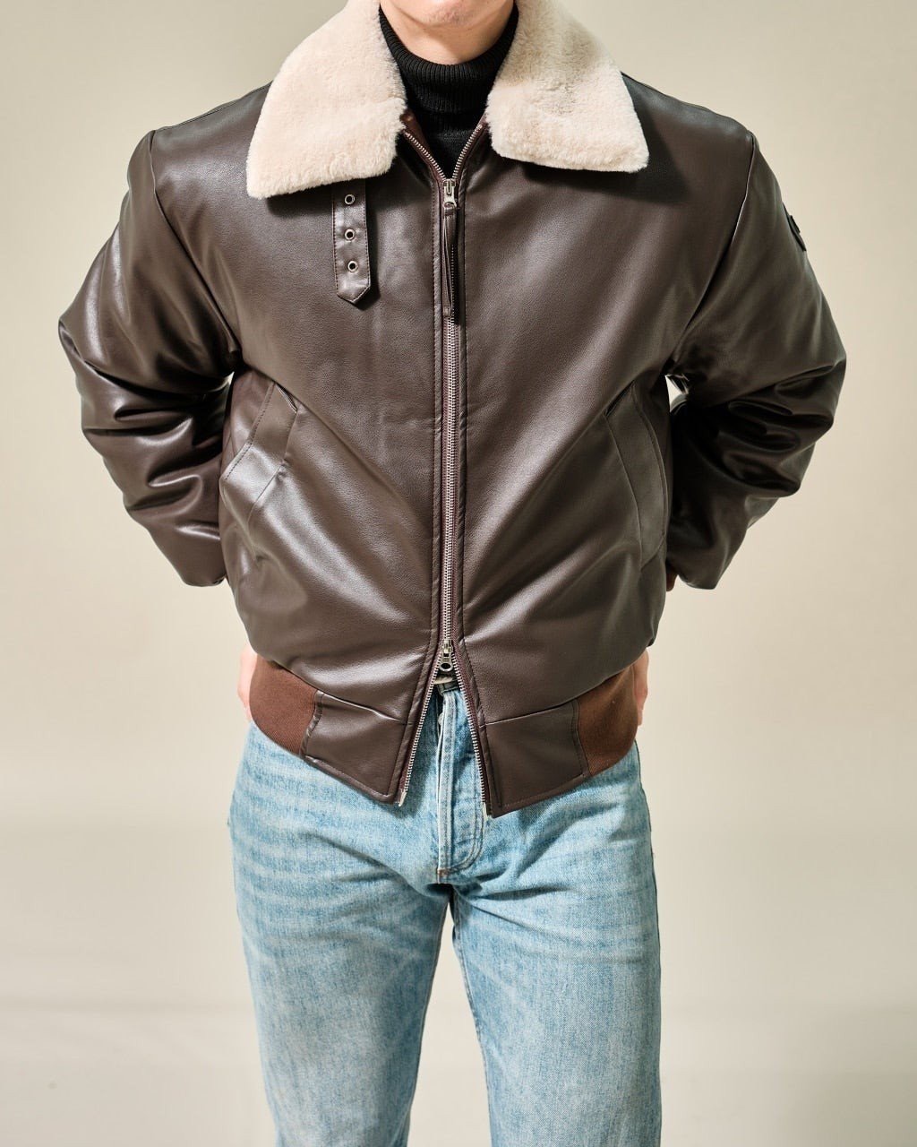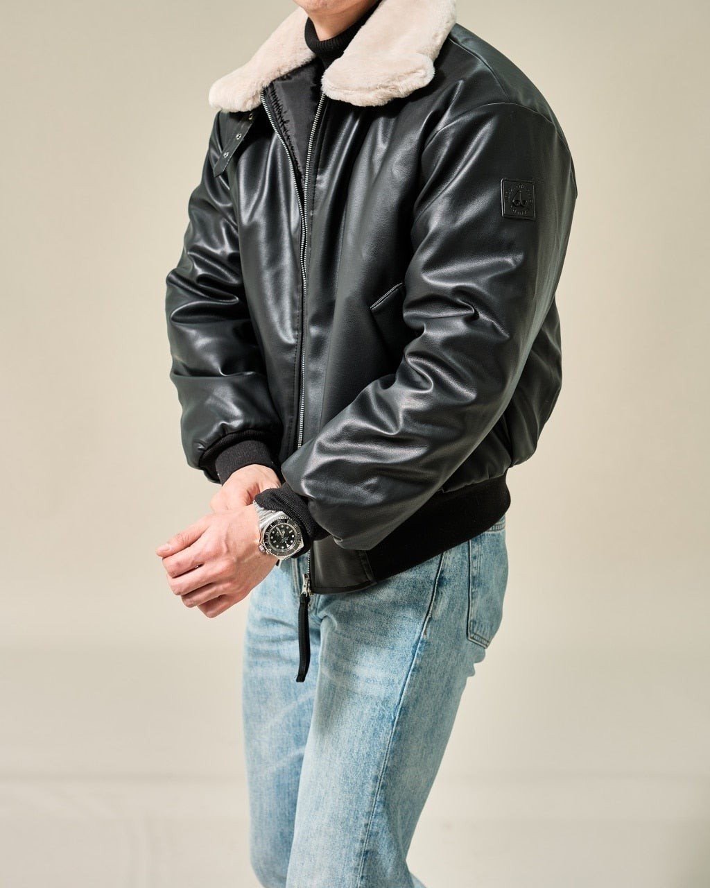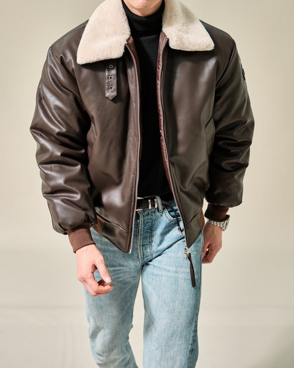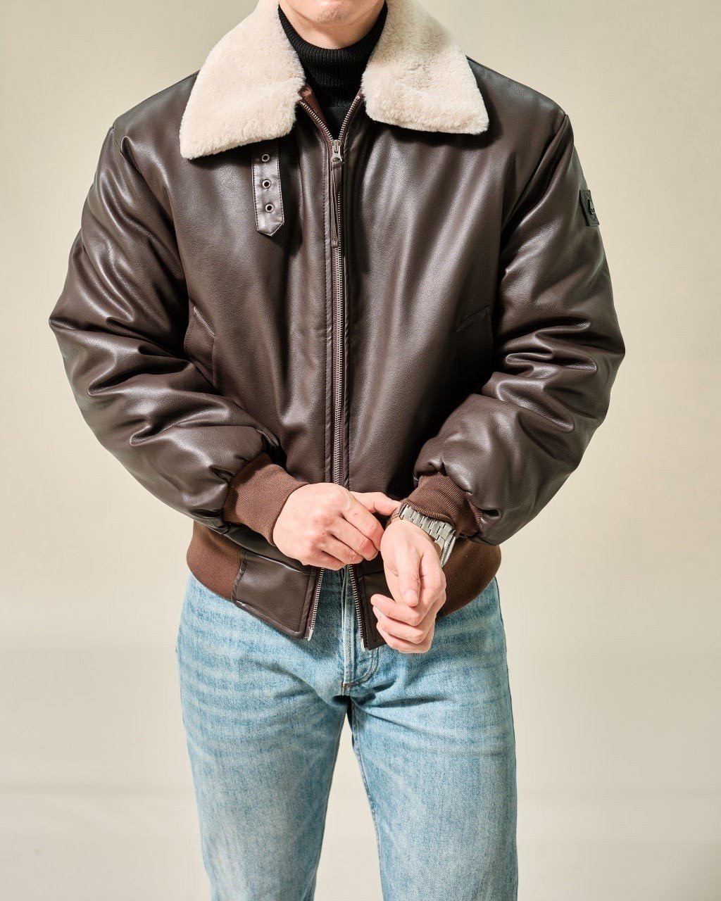 겉면의 고급스러운 최고급 가죽자켓 패딩 무스탕 입니다.