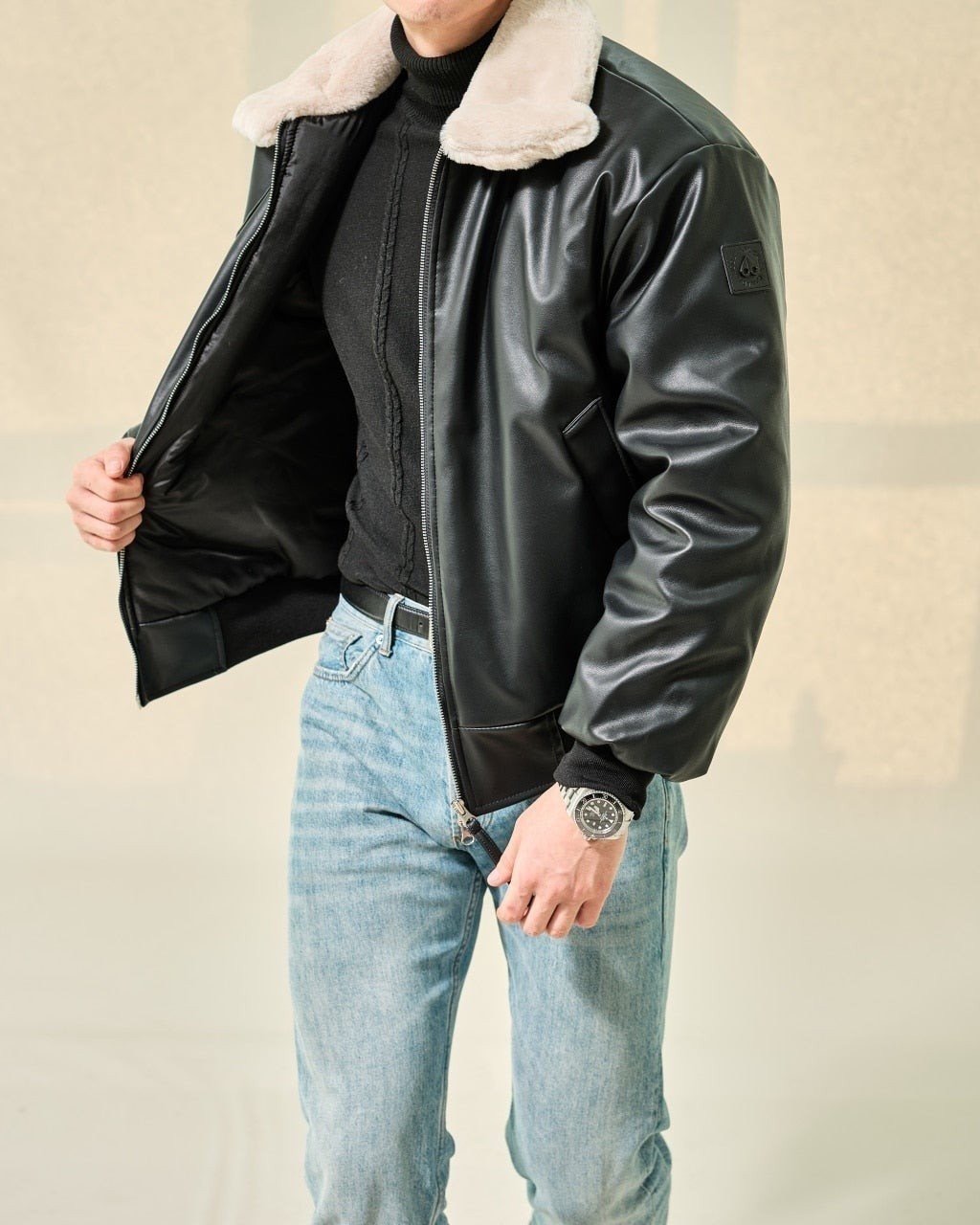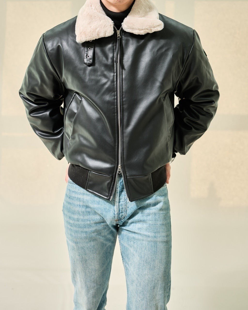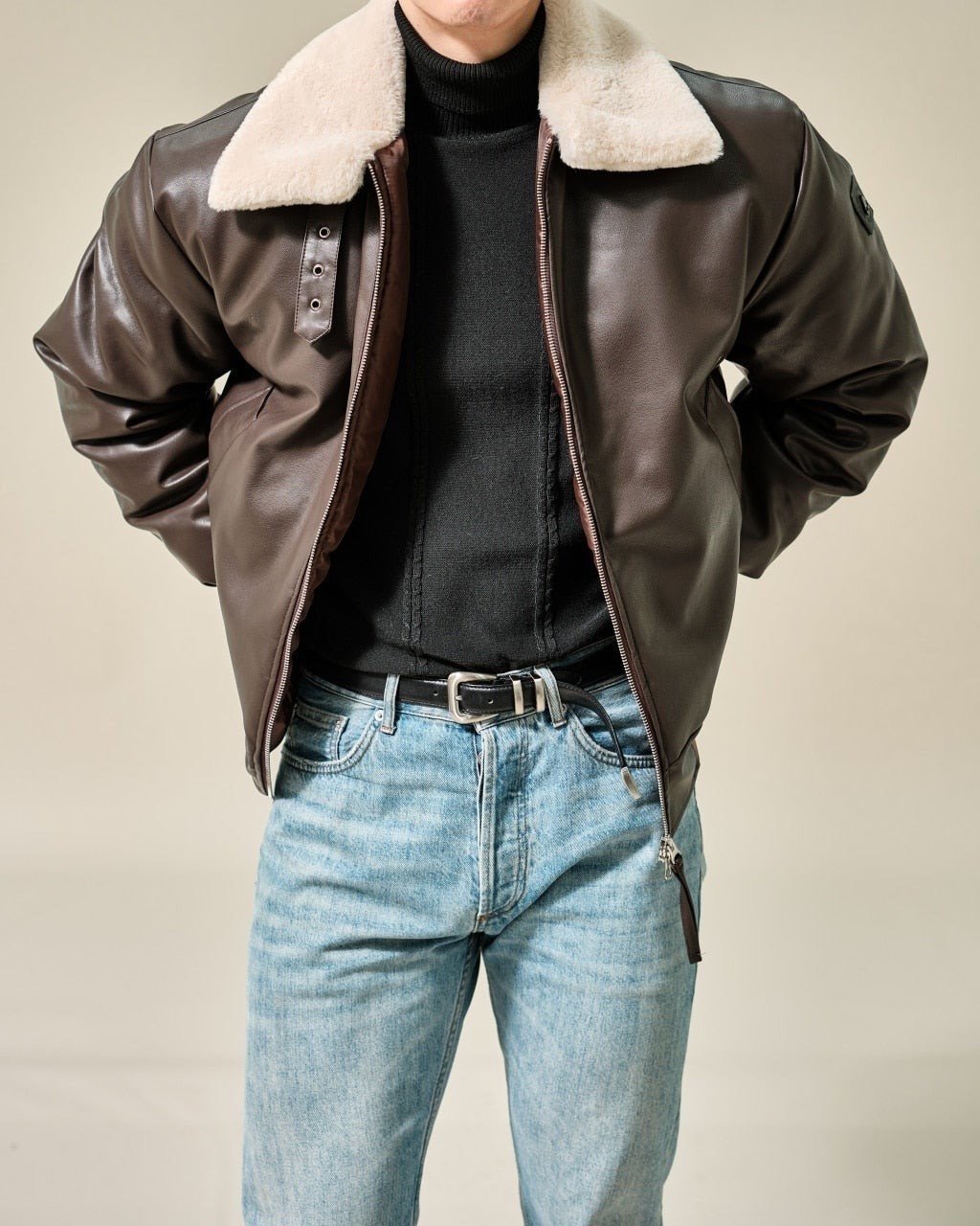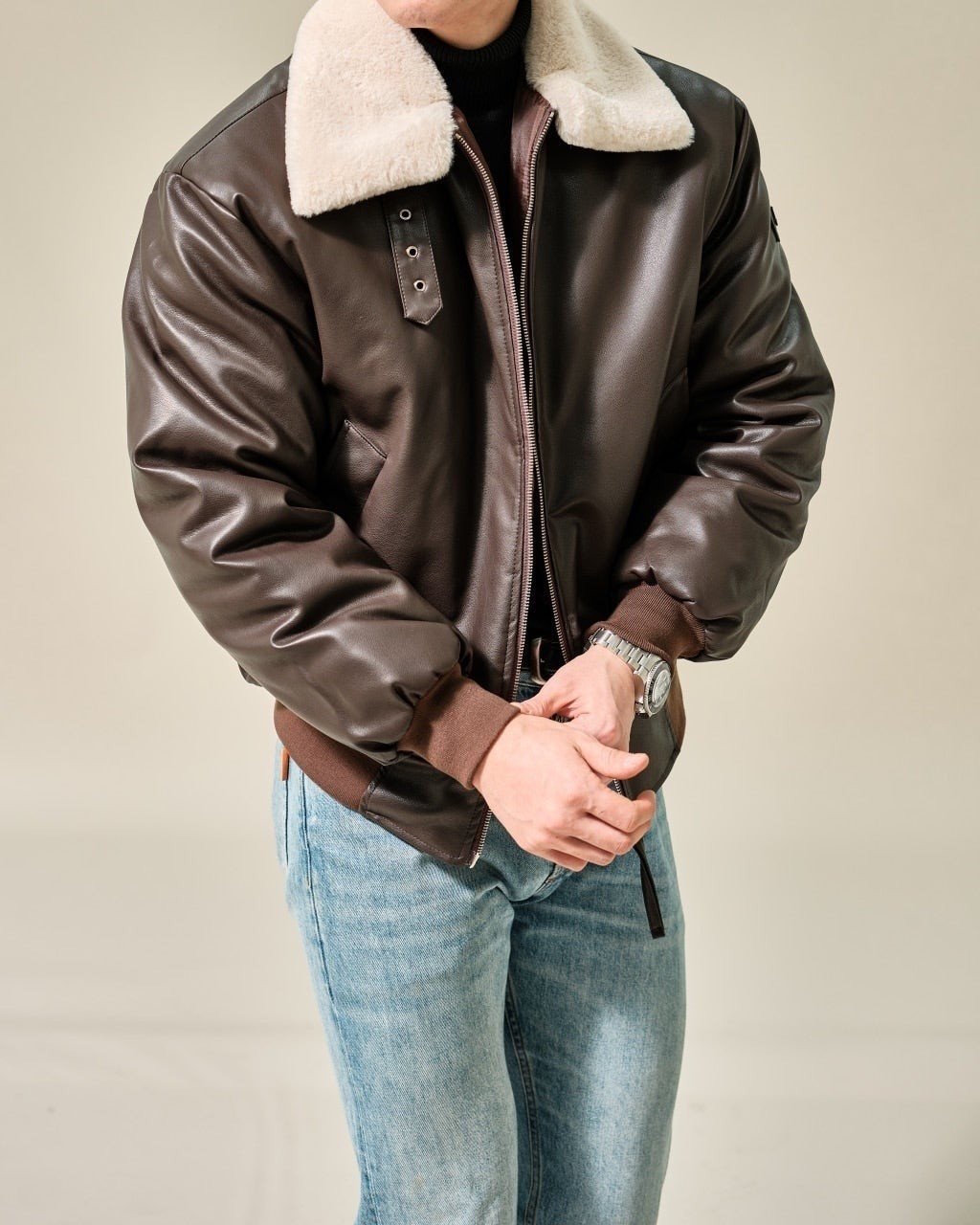 겉면의 고급스러운 최고급 가죽자켓 패딩 무스탕 입니다.