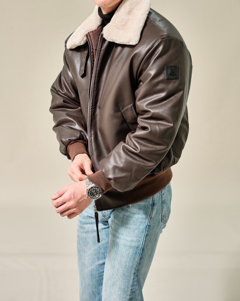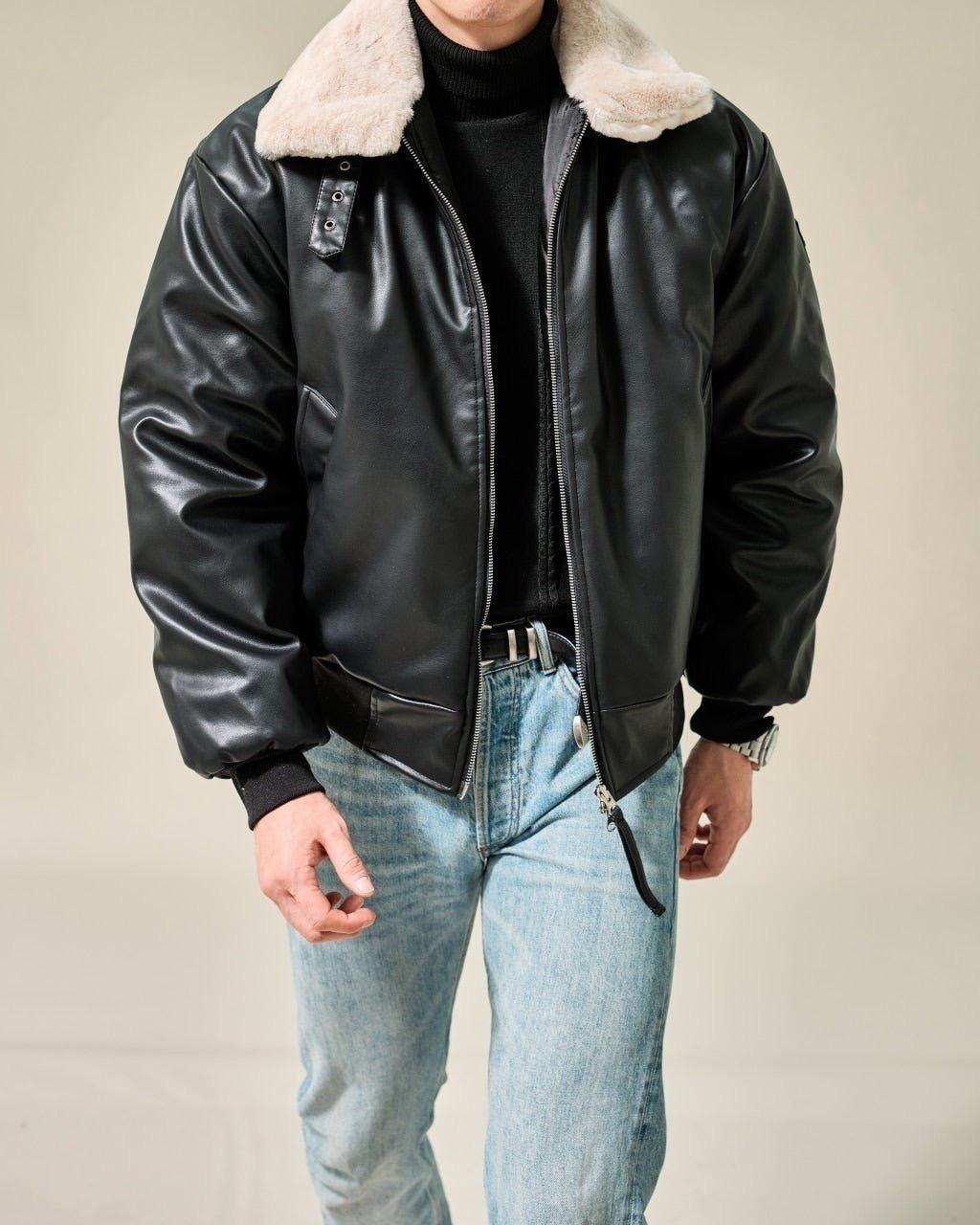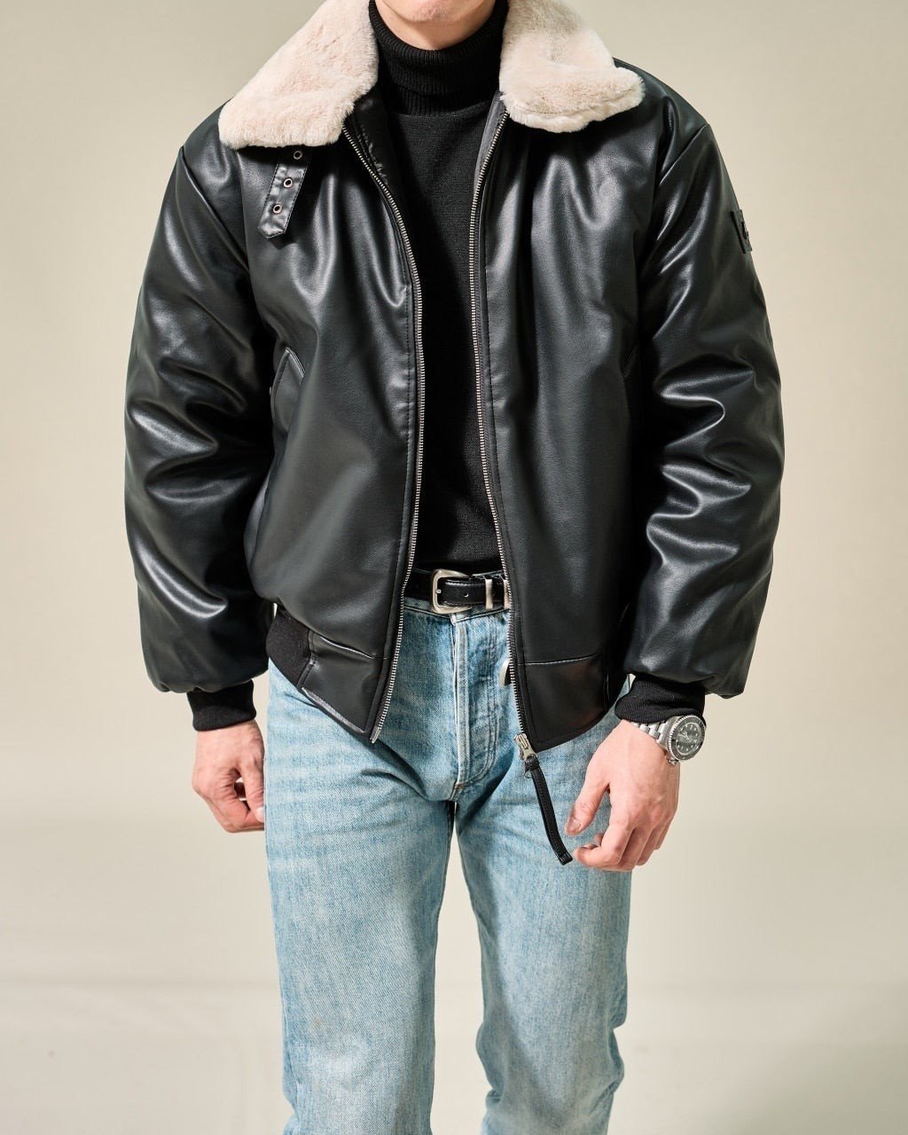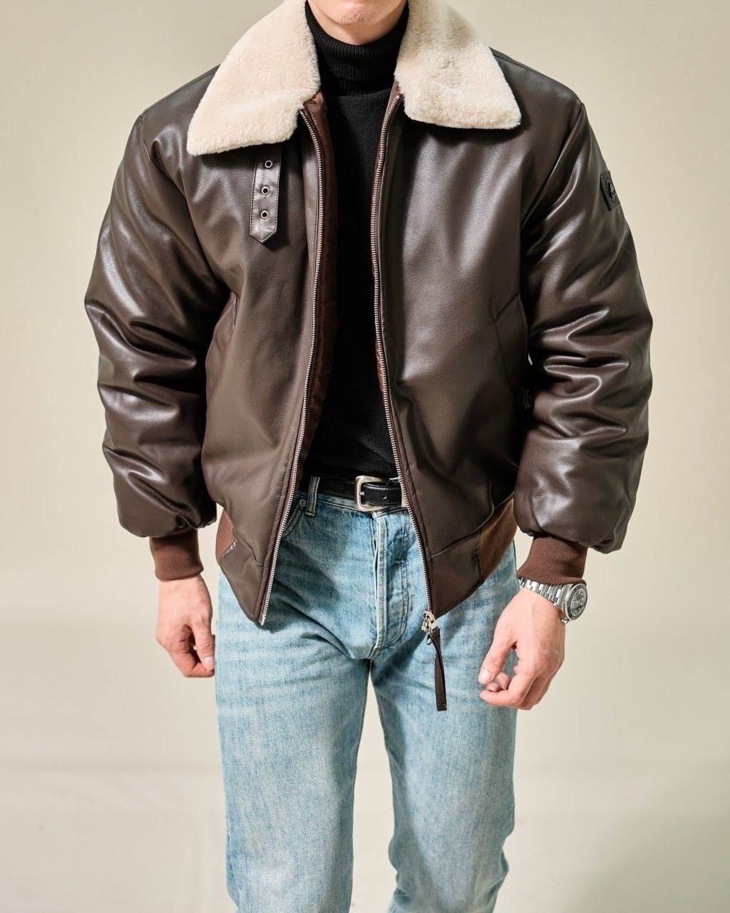 겉면의 고급스러운 최고급 가죽자켓 패딩 무스탕 입니다.