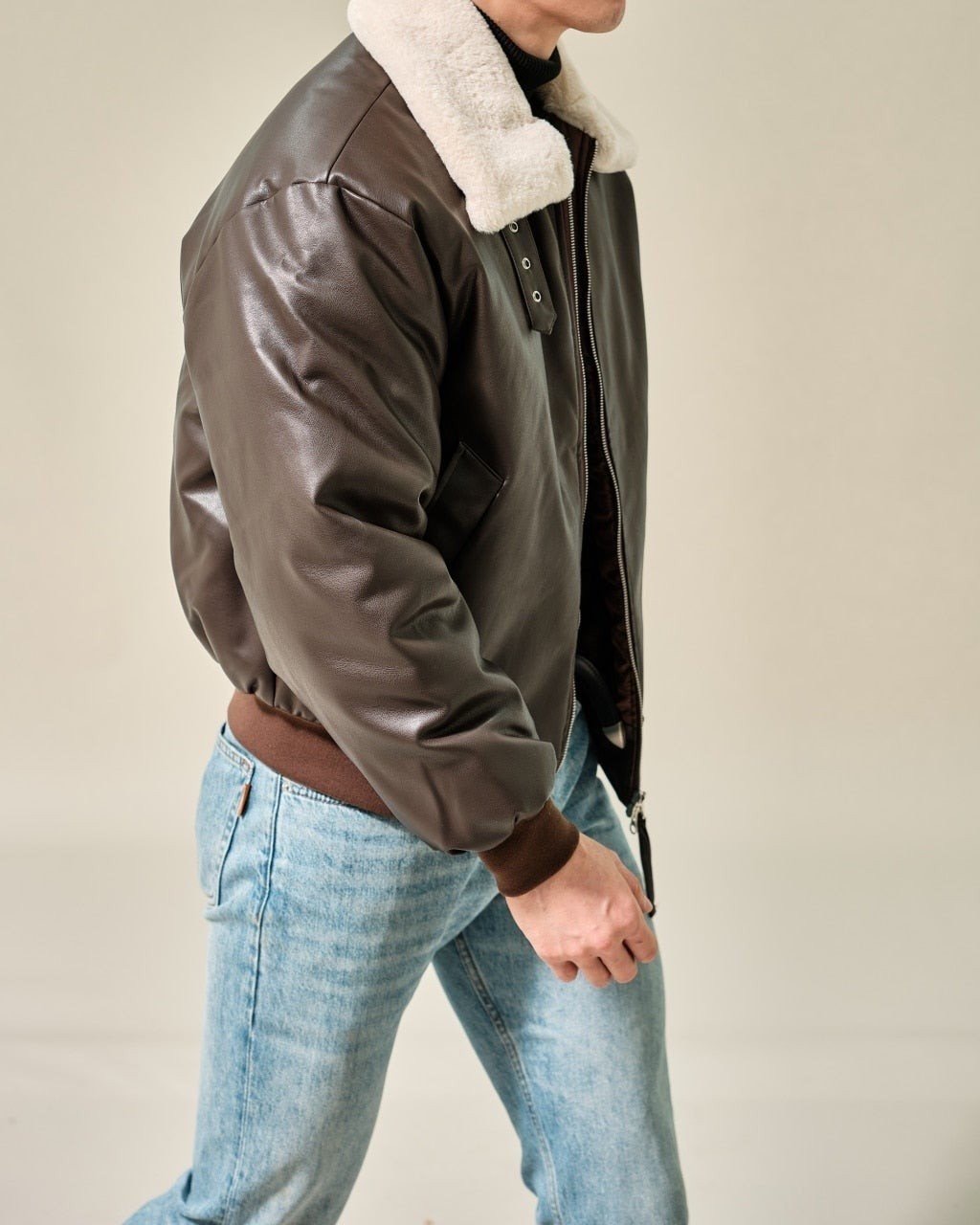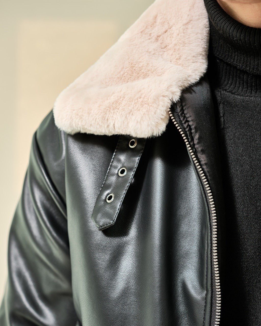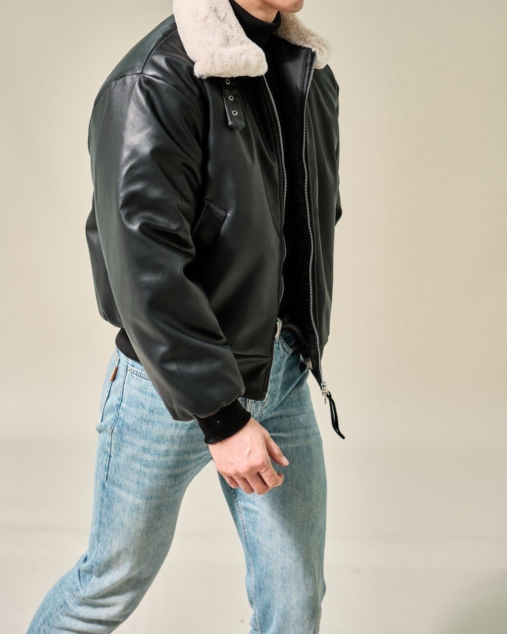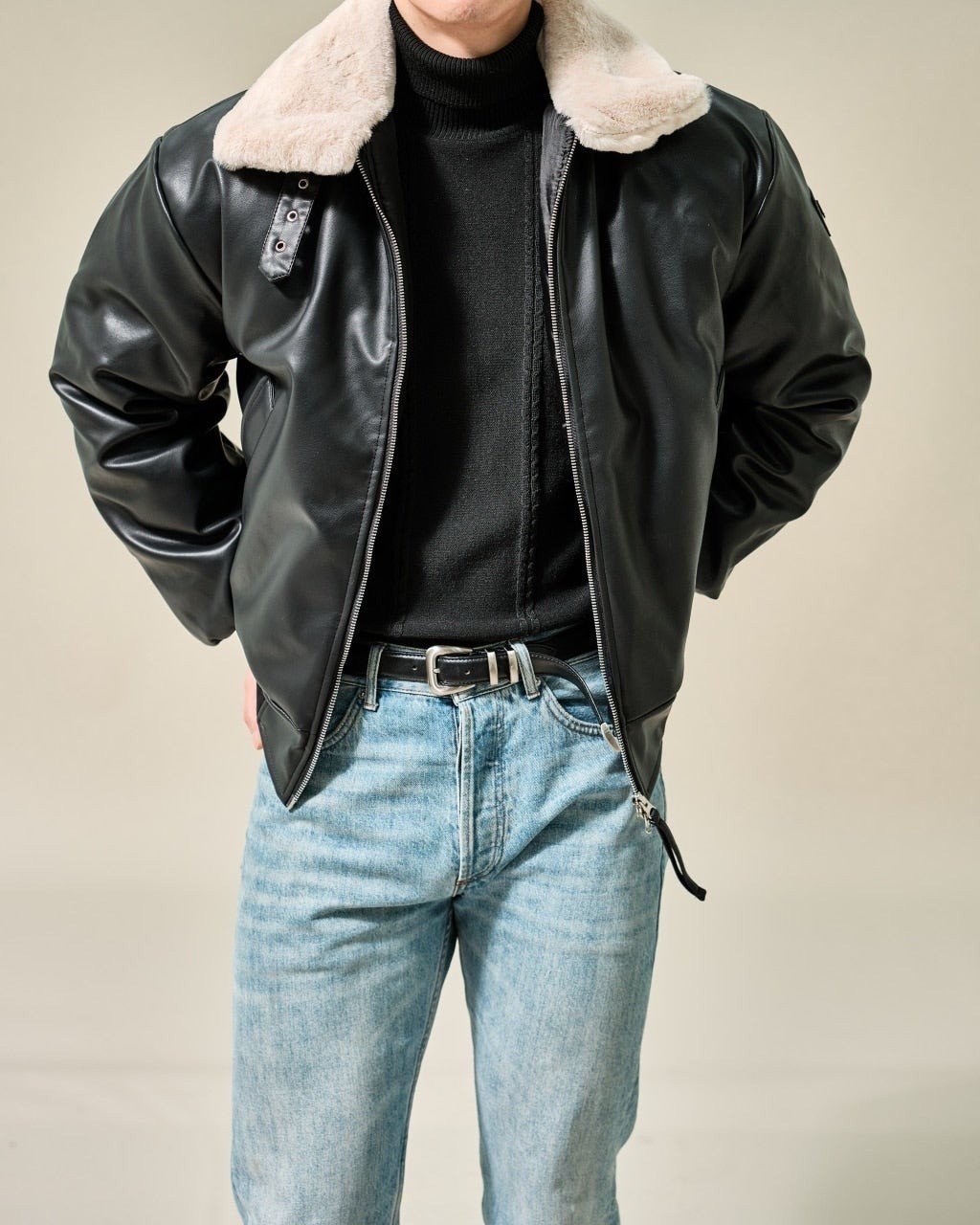 겉면의 고급스러운 최고급 가죽자켓 패딩 무스탕 입니다.