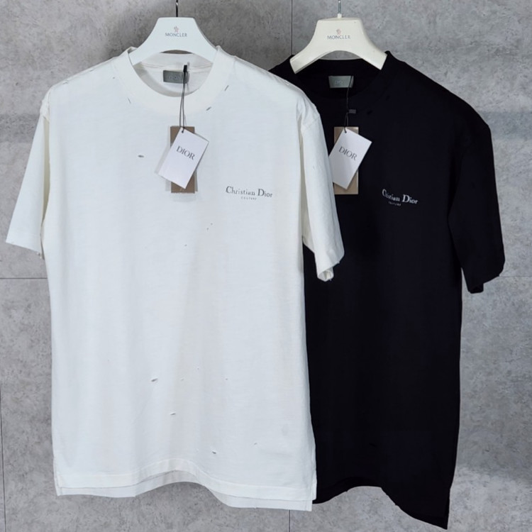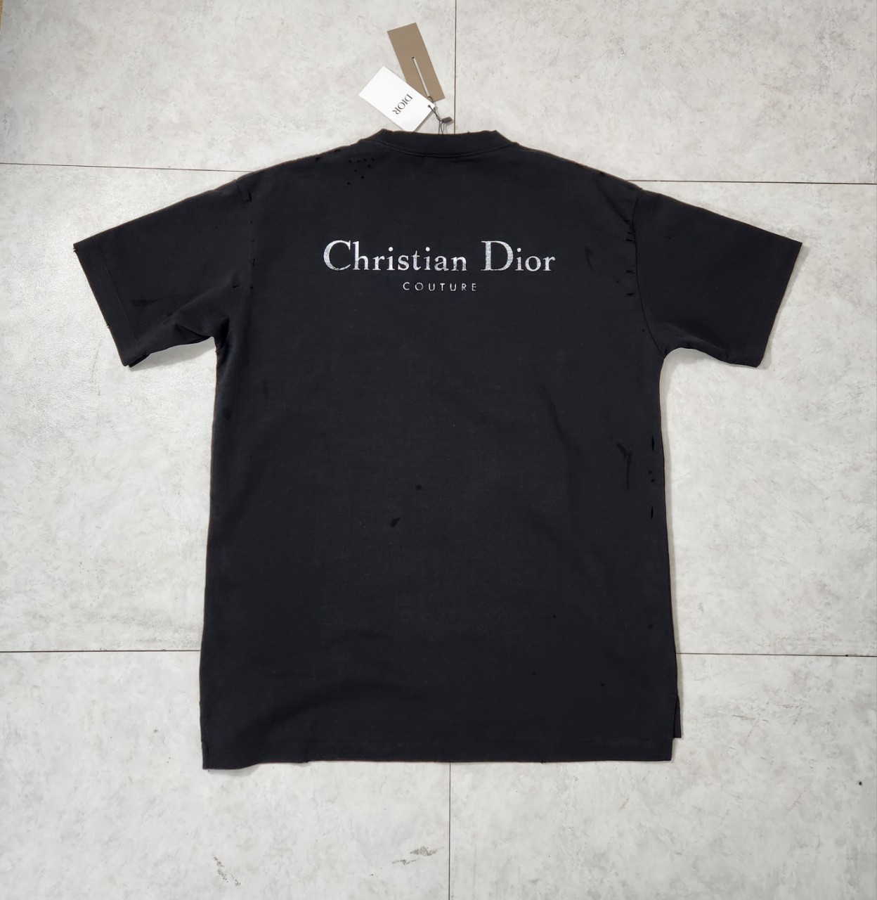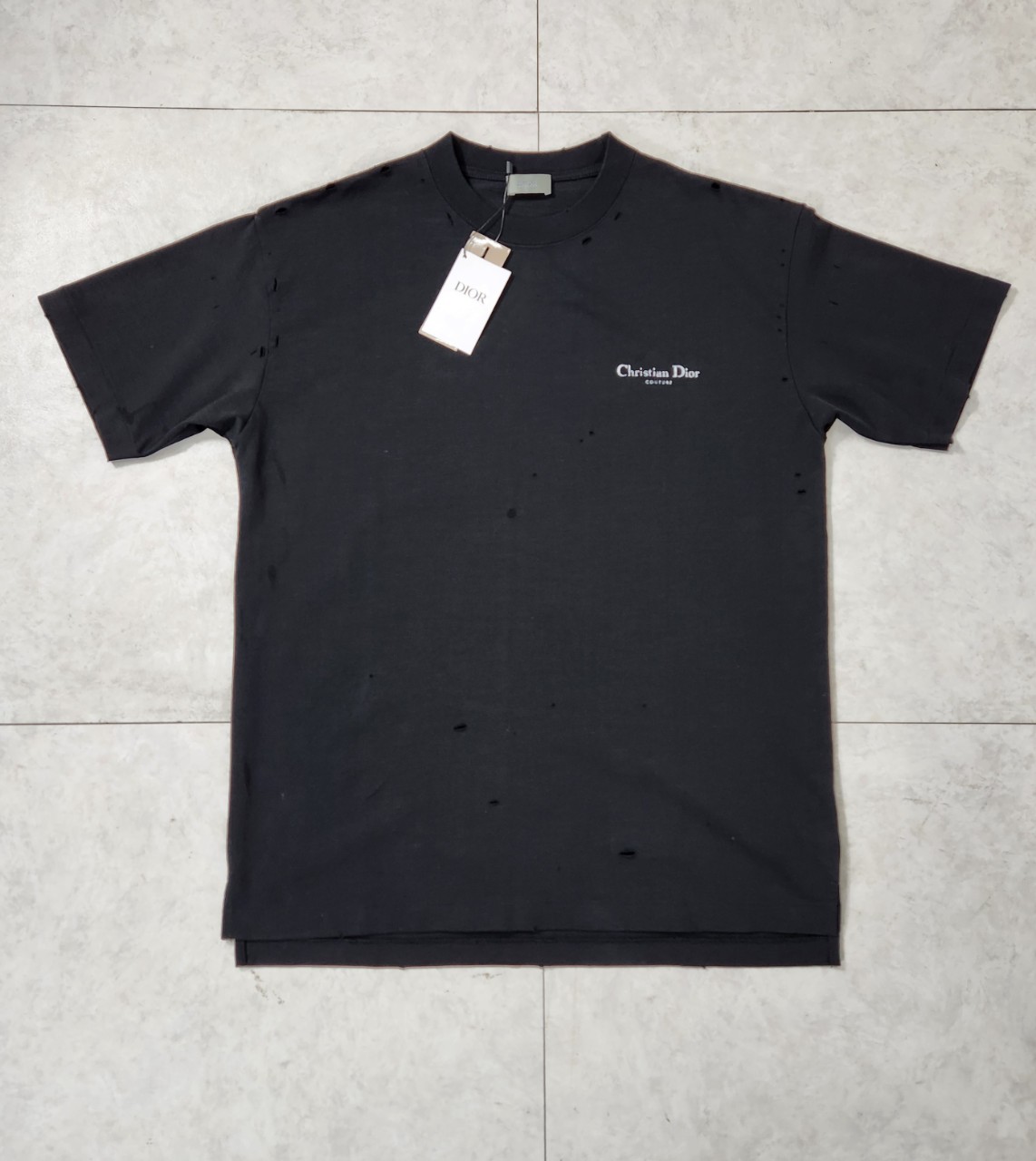 화이트.블랙 컬러의 슬러브 코튼 저지 소재로 제작된 티셔츠입니다. 체스트의 그레이 Christian Dior Couture 프린트와 디스트레스드-이펙트가 특징입니다. 리브드 크루넥으로 이루어진 캐주얼 핏 티셔츠로 다양한 진 또는 캐주얼 아이템과 매치하기 좋습니다.