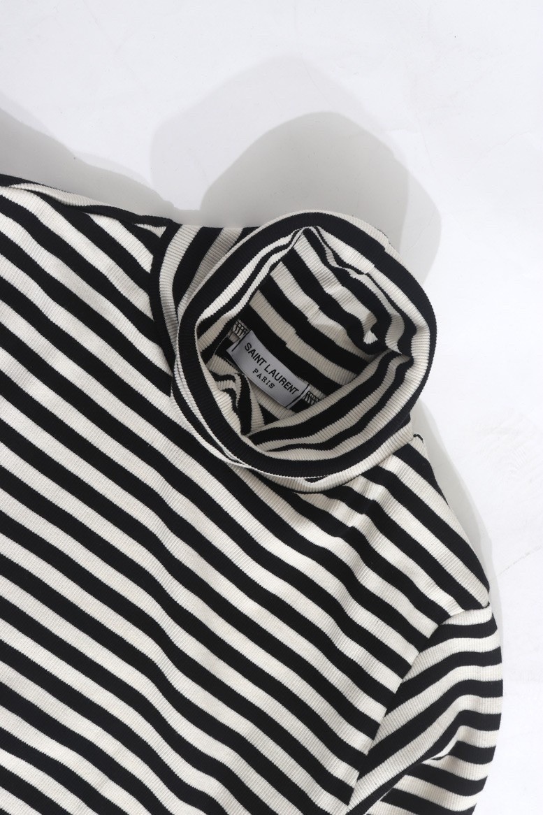 ✔ 24 F/W 시즌 에도 YSL 메인 아이템인 화이트 & 블랙 컬러의 스트라이프 커플 터틀넥이 출시되었습니다.