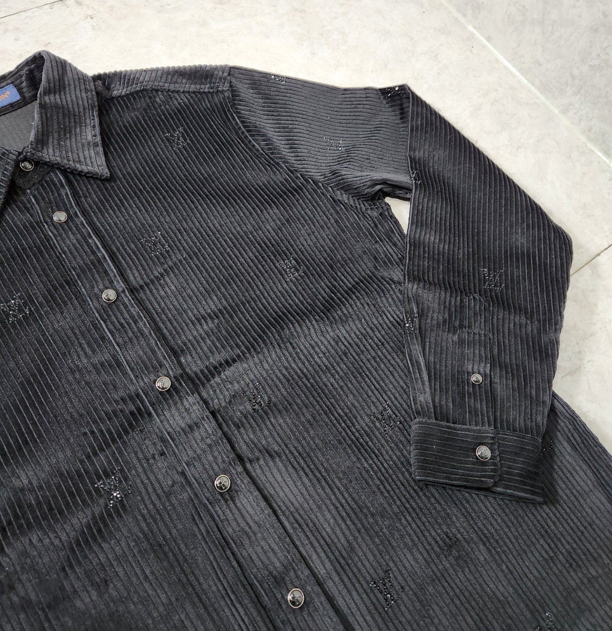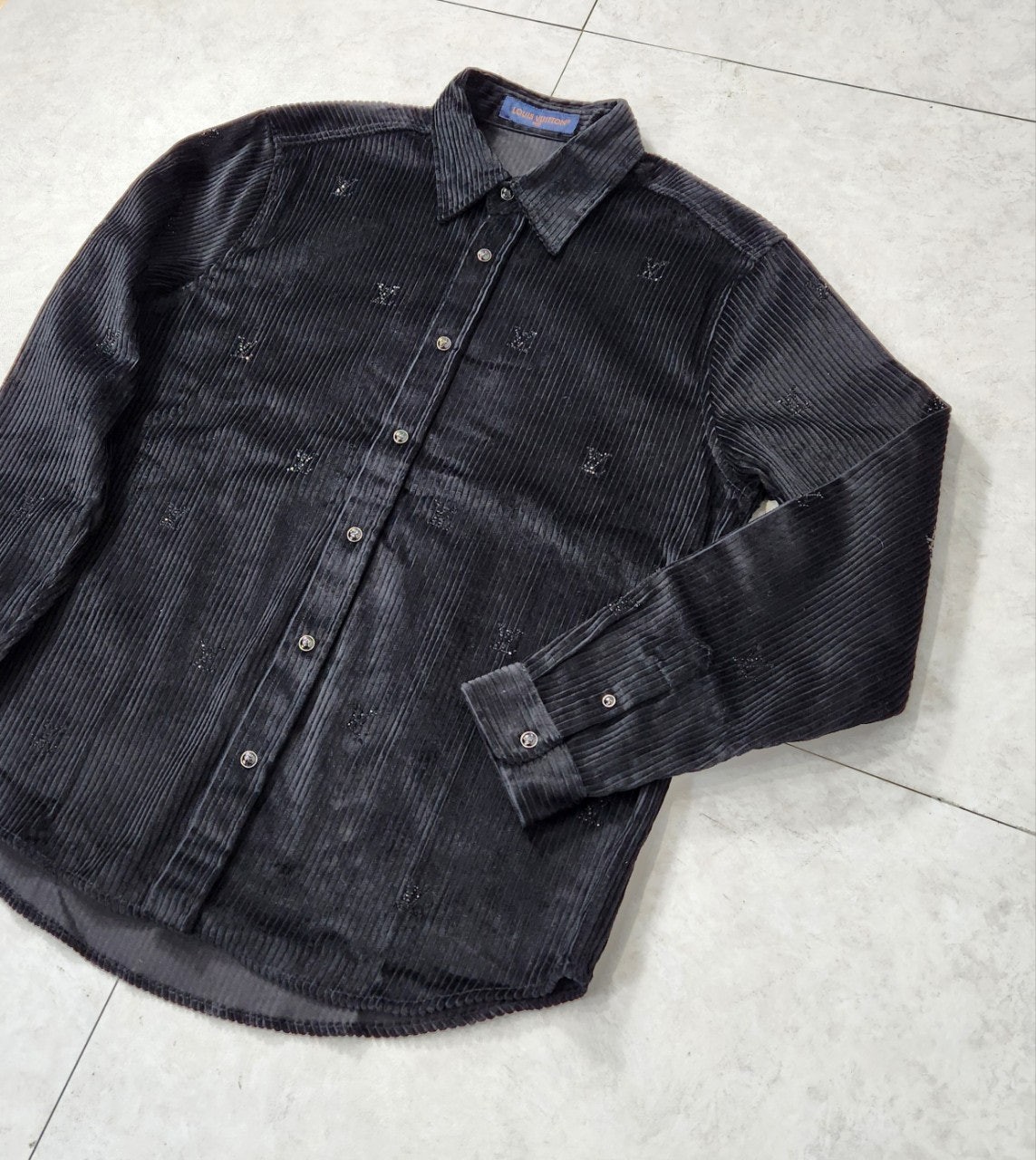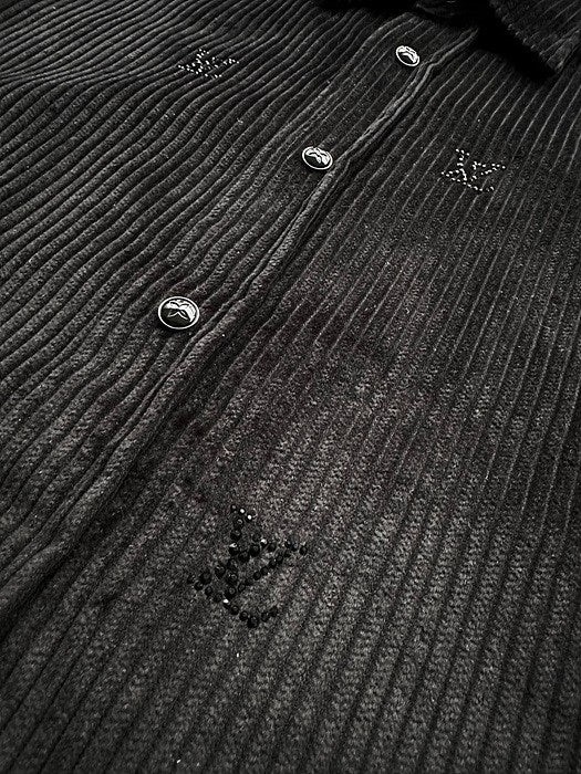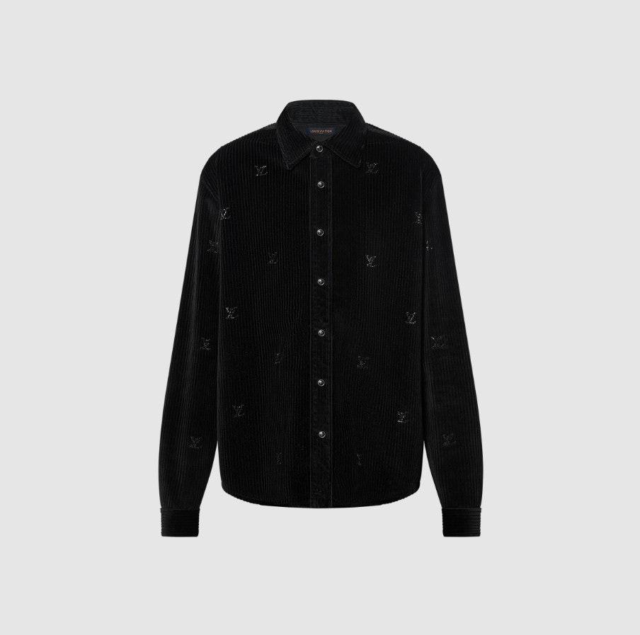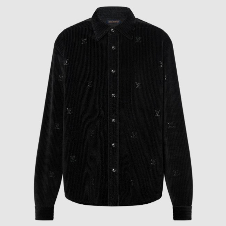 블랙 색상의 디아만테 크리스탈로 전체적인 LV 모티프를 구현한 반짝이는 디자인의 셔츠. 블랙 색상의 코듀로이 소재. 데일리 룩부터 이브닝 룩까지 다양하게 연출할 수 있는 아이템으로써 모노그램 플라워를 새긴 세련된 스냅 버튼과 셔츠 또는 아우터로 활용할 수 있는 캐주얼하면서도 감각적인 스타일 입니다~