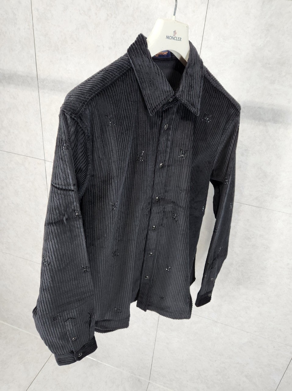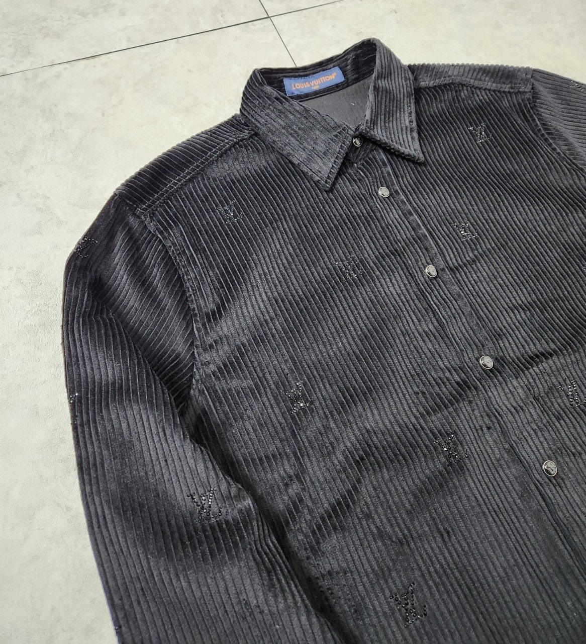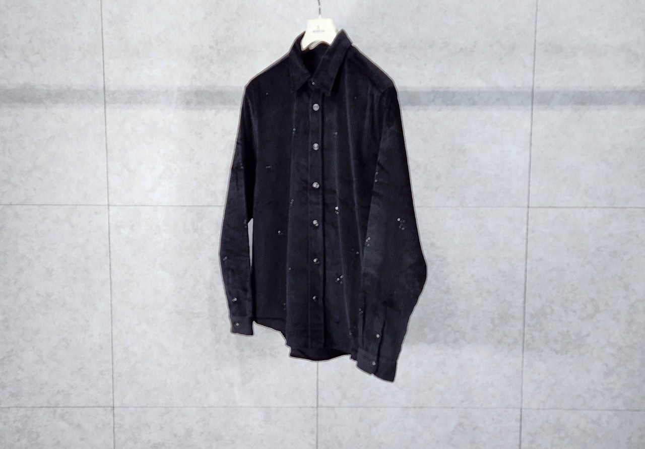 블랙 색상의 디아만테 크리스탈로 전체적인 LV 모티프를 구현한 반짝이는 디자인의 셔츠. 블랙 색상의 코듀로이 소재. 데일리 룩부터 이브닝 룩까지 다양하게 연출할 수 있는 아이템으로써 모노그램 플라워를 새긴 세련된 스냅 버튼과 셔츠 또는 아우터로 활용할 수 있는 캐주얼하면서도 감각적인 스타일 입니다~