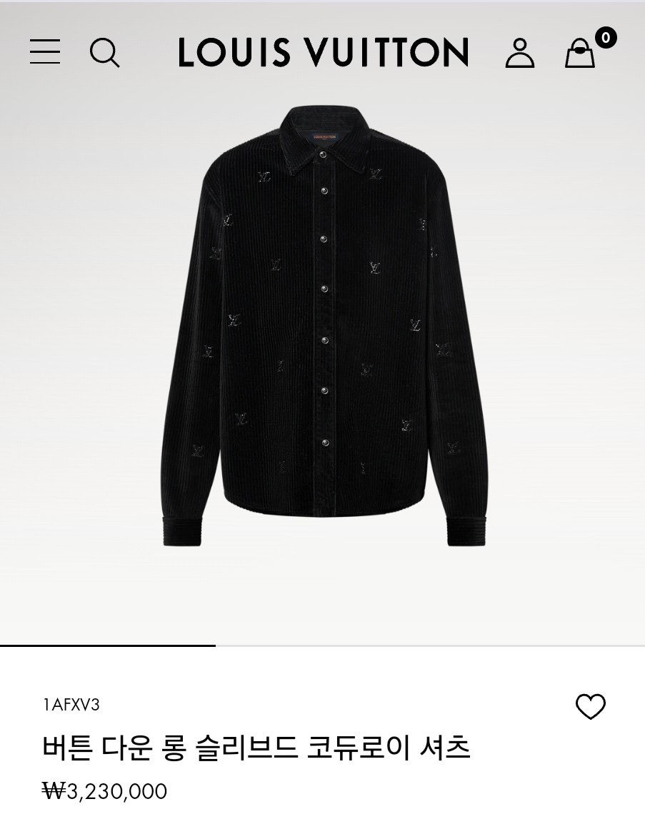 루이비통 LV 버튼 다운 롱 슬리브드 코듀로이 셔츠