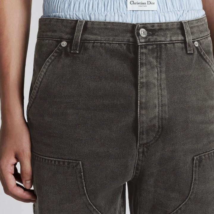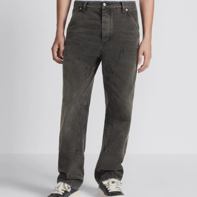 엠보싱 가죽 태그가 장식된 5-포켓 컷이 특징입니다.
