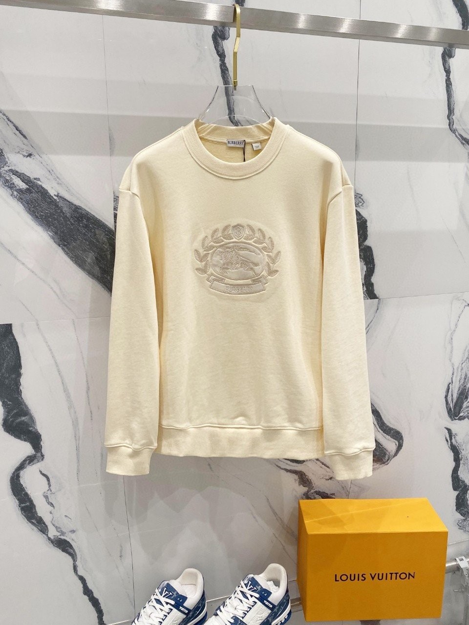 버버리 자수로고 맨투맨 워싱 티셔츠