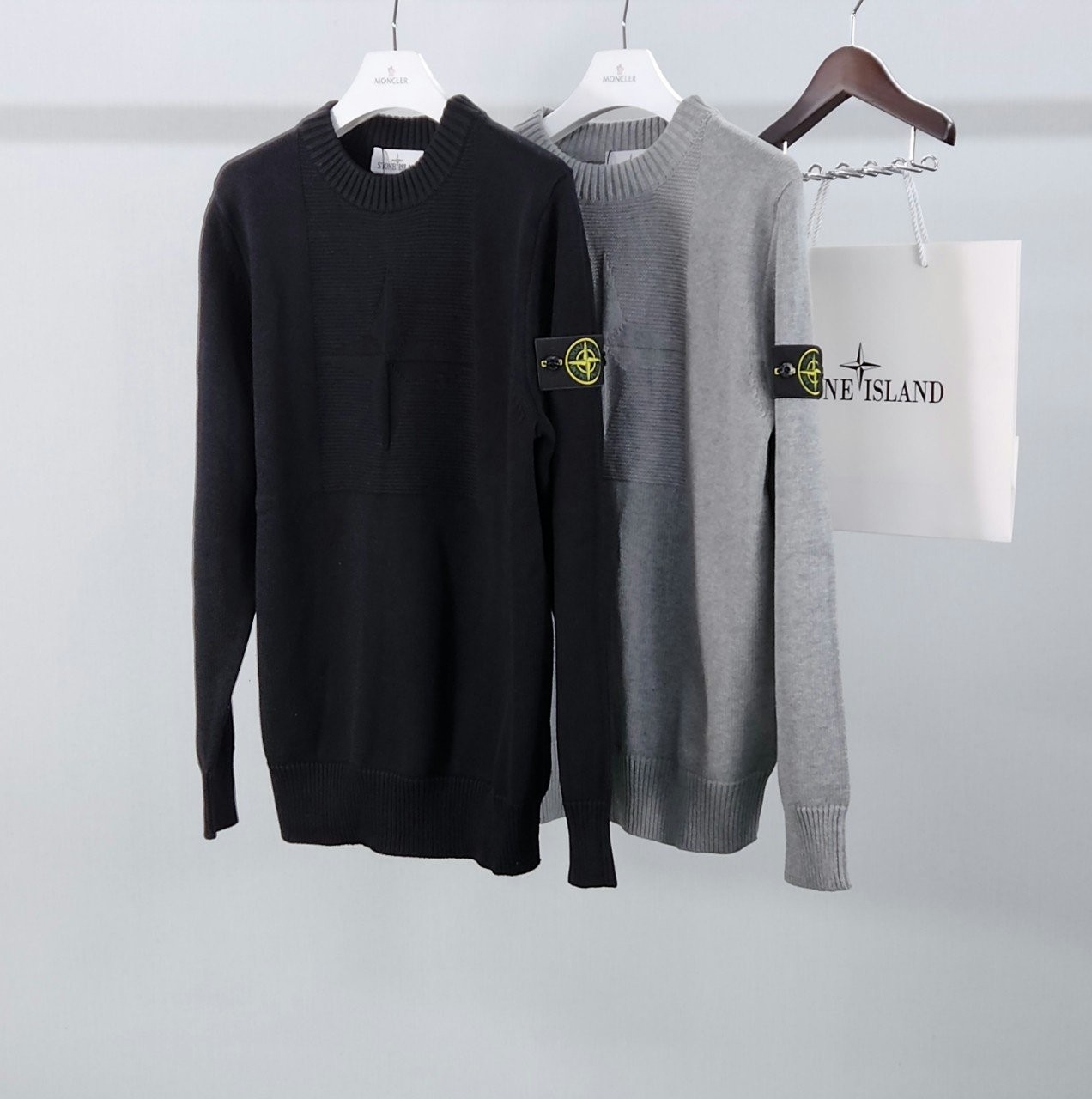 스톤 와펜패치 컴퍼스로고 스웨터