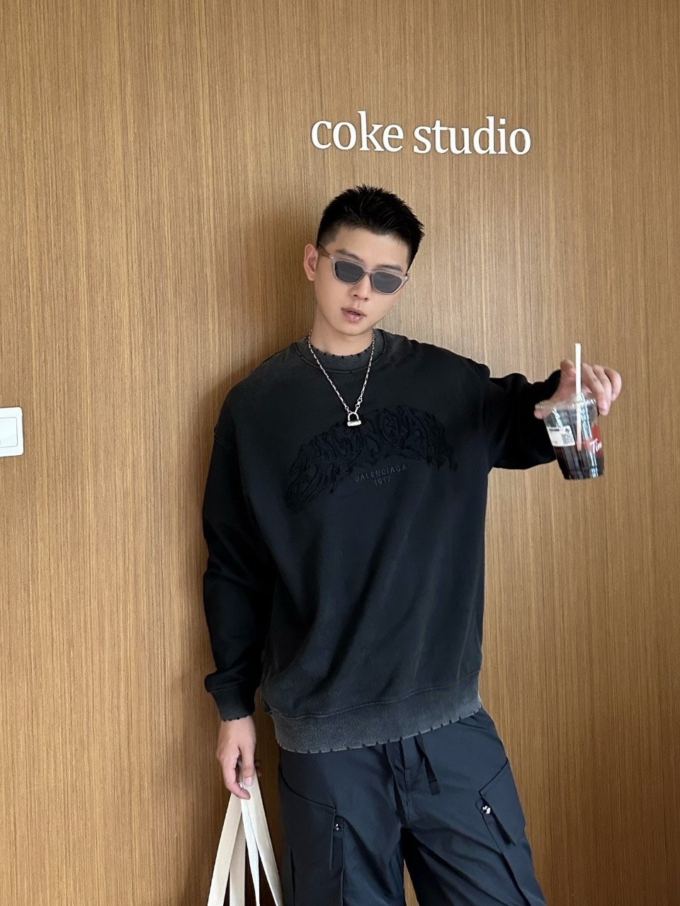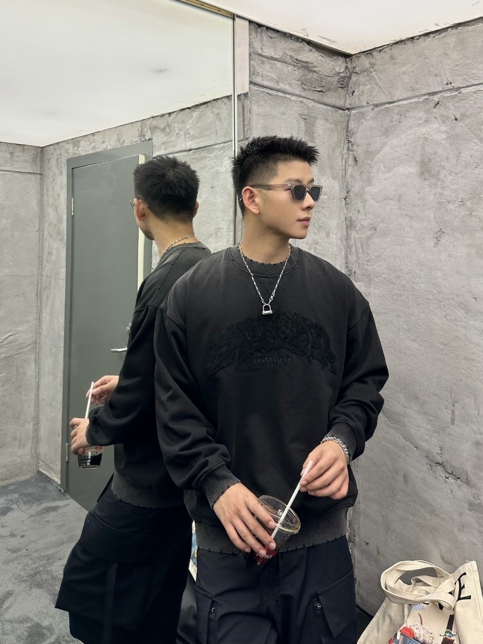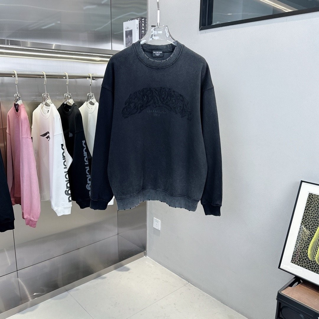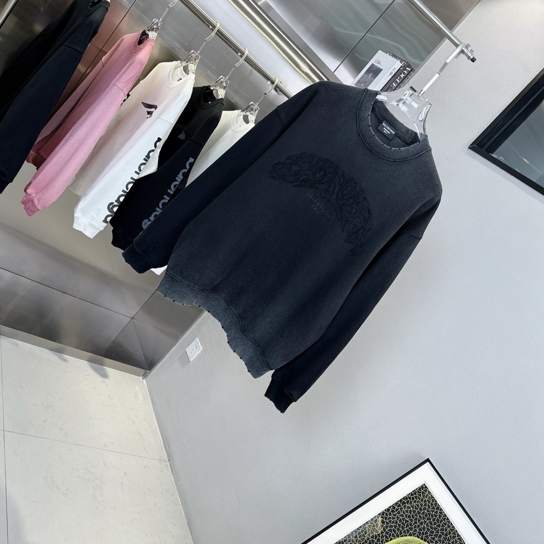발렌시아가 덧댐로고 맨투맨 워싱 티셔츠