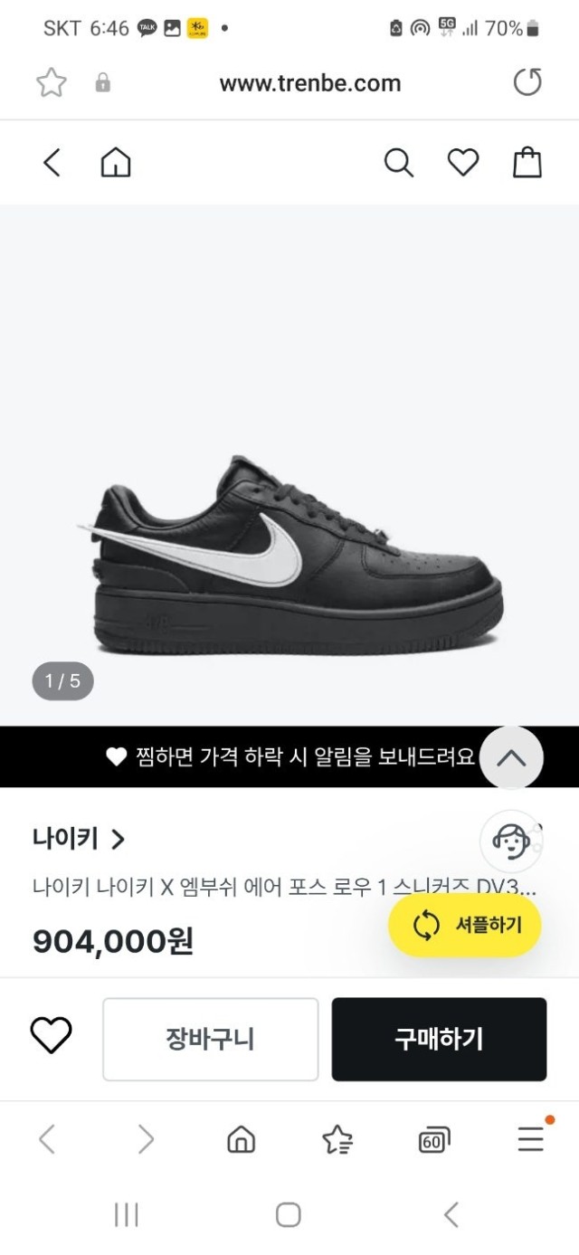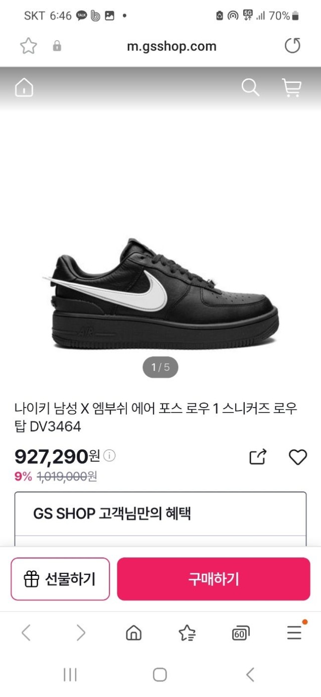나이키 엠부쉬 에어포스 로우1 스니커즈 로우탑