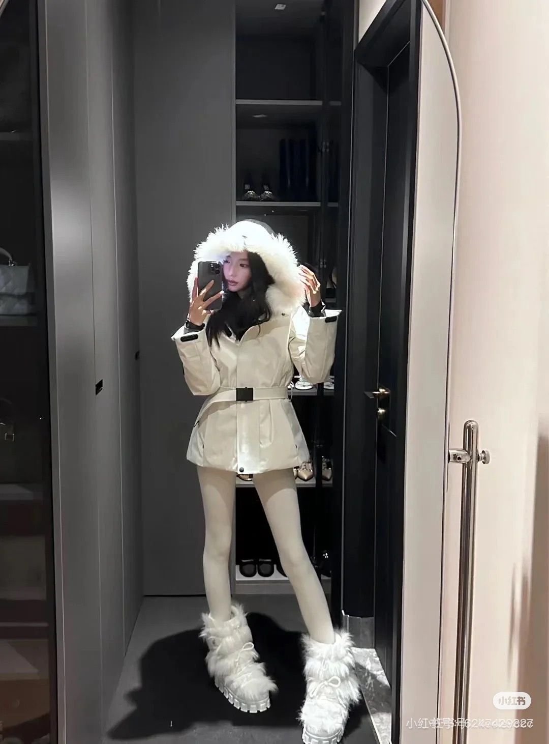 MC 25132 여성 폭스 벨티드 다운 자켓