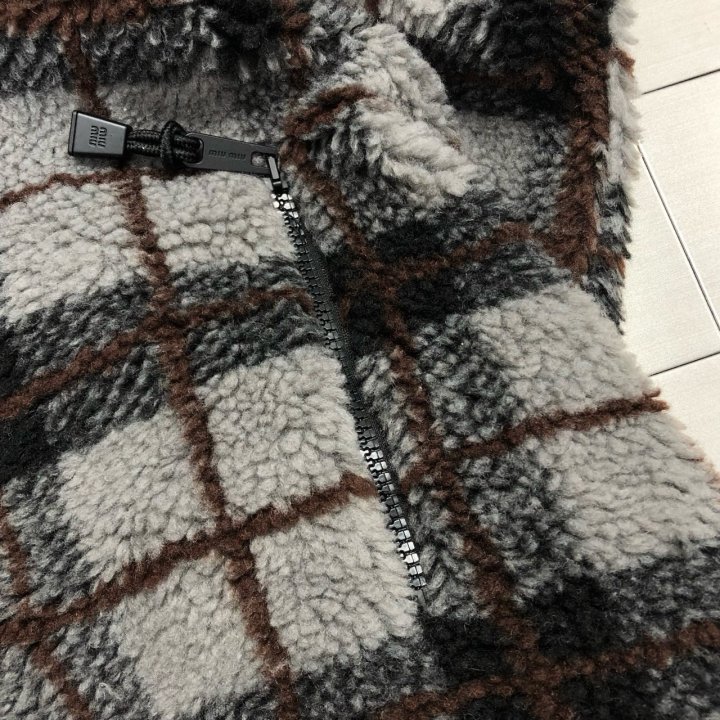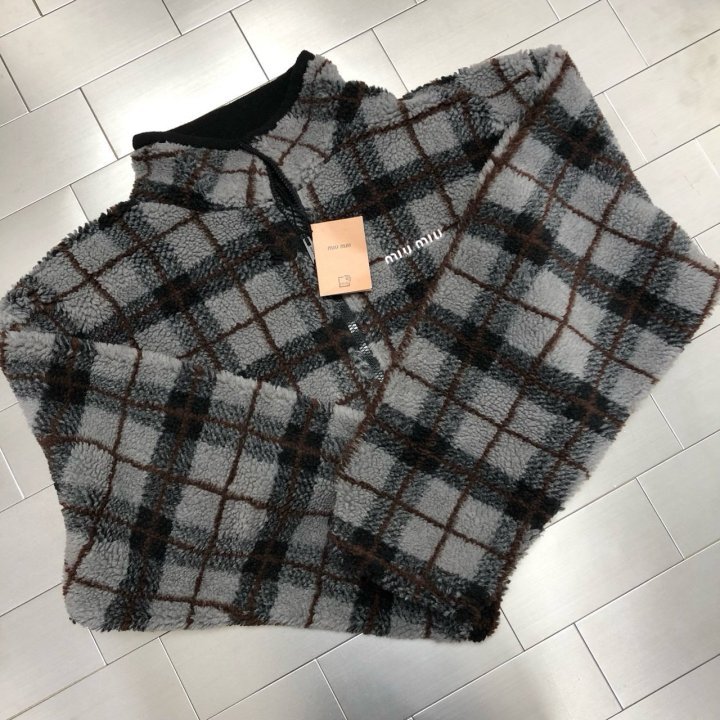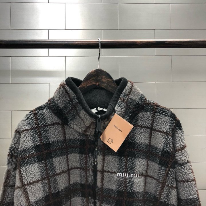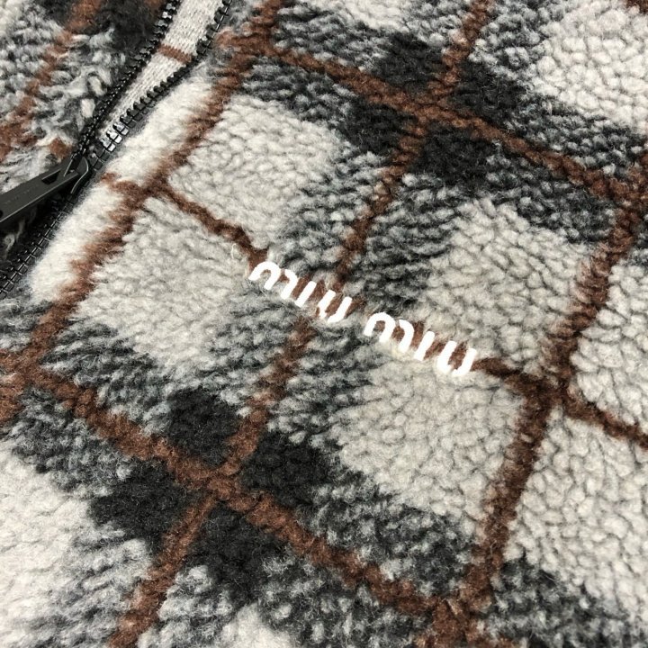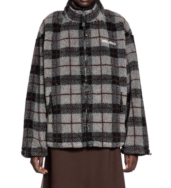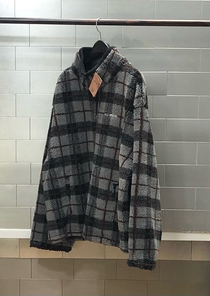 미우** 체크 플리스 집업 자켓입니다.