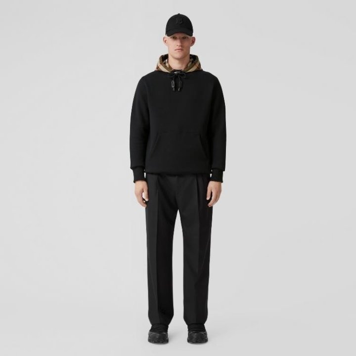면 저지 소재의 지퍼 후디. 버버리 체크가 연출된 면 플란넬 소재의 후드가 대비를 이루는 디자인 입니다. 릴랙스핏 실루엣 및 송아지 가죽 트리밍 디테일이 특징 입니다.
