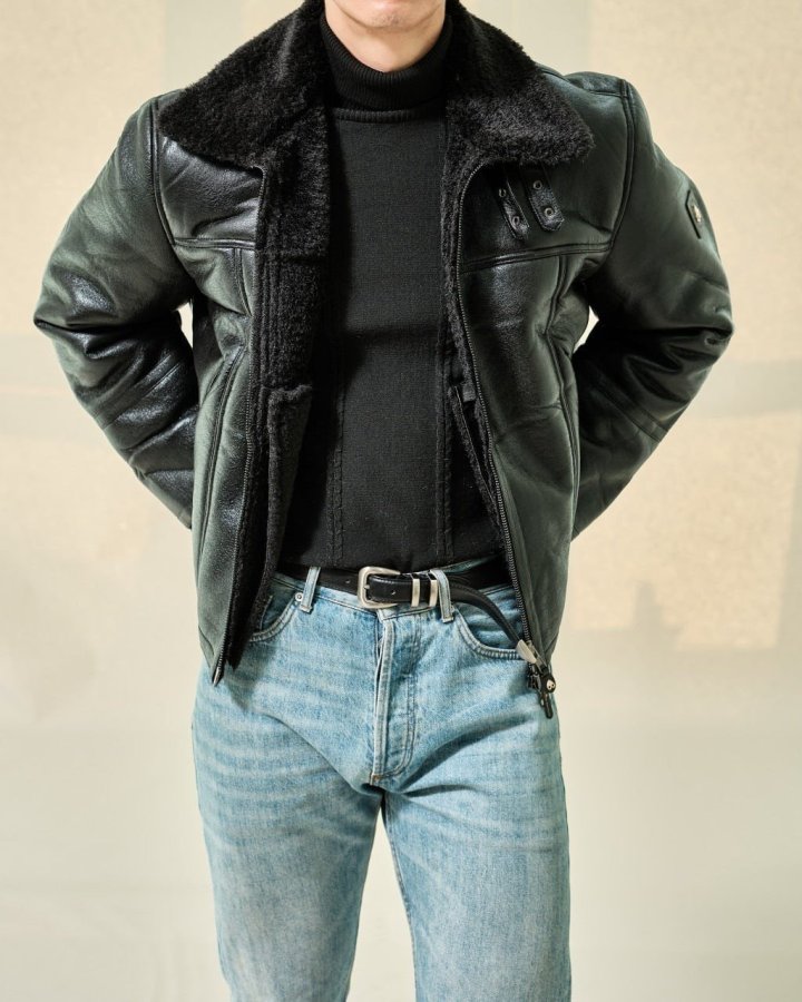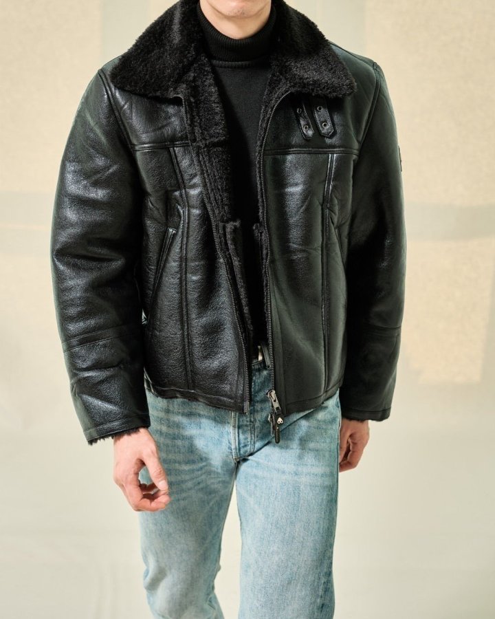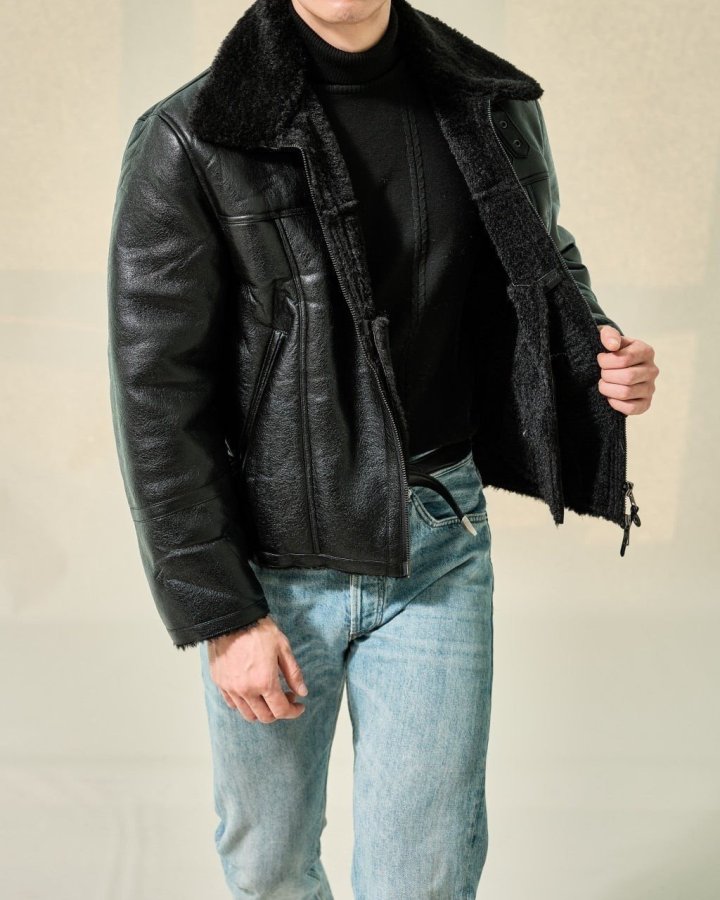 겉면의 고급스러운 최고급 가죽자켓 패딩 무스탕 입니다.