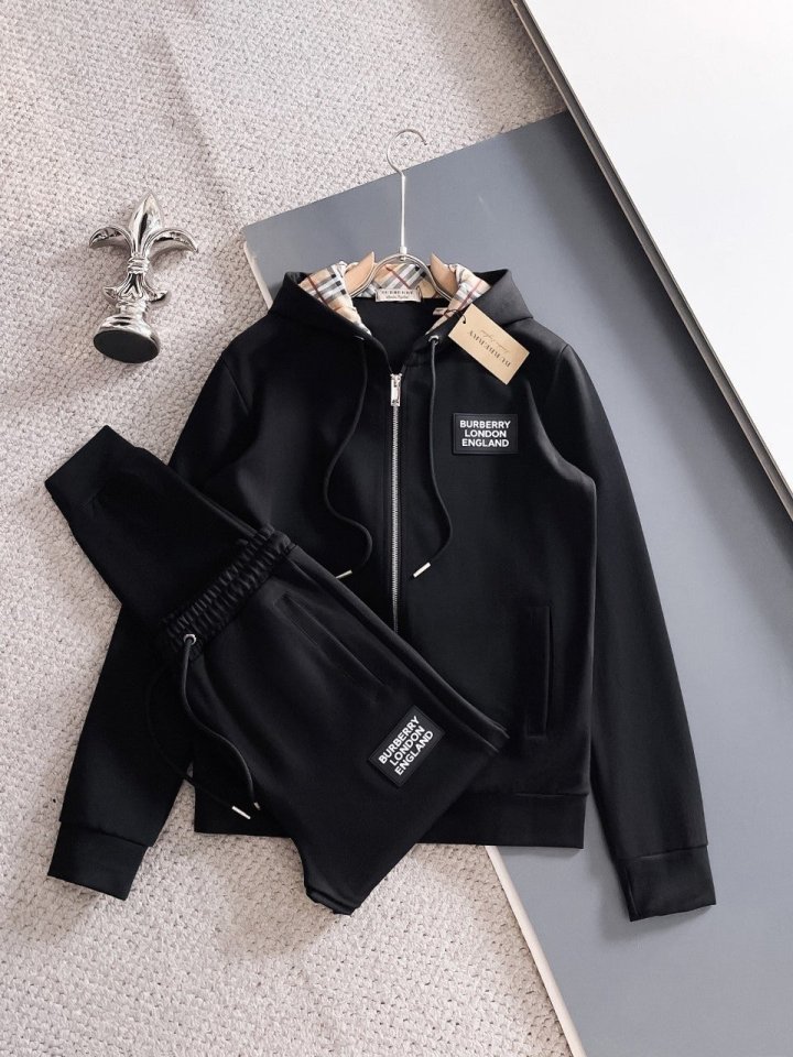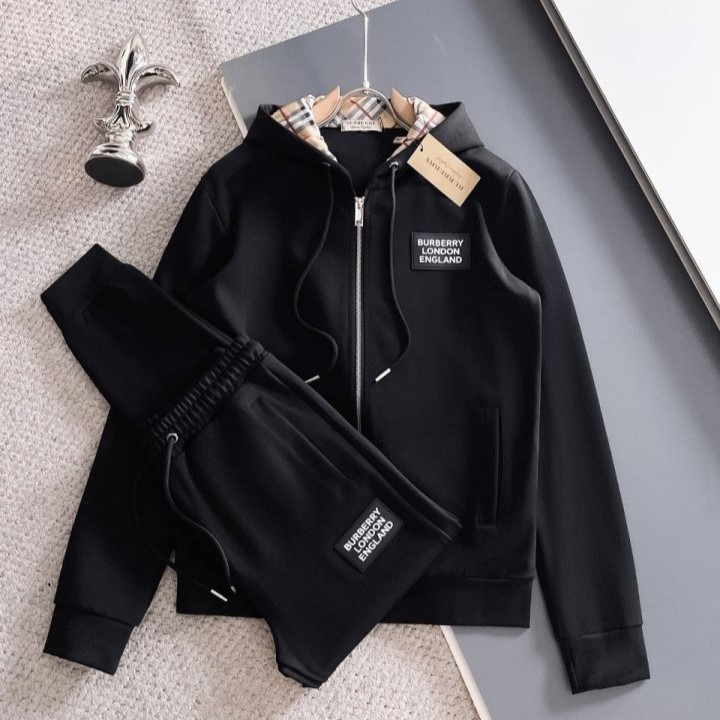 버버리 후드체크 트리밍 코튼 팬츠 세트